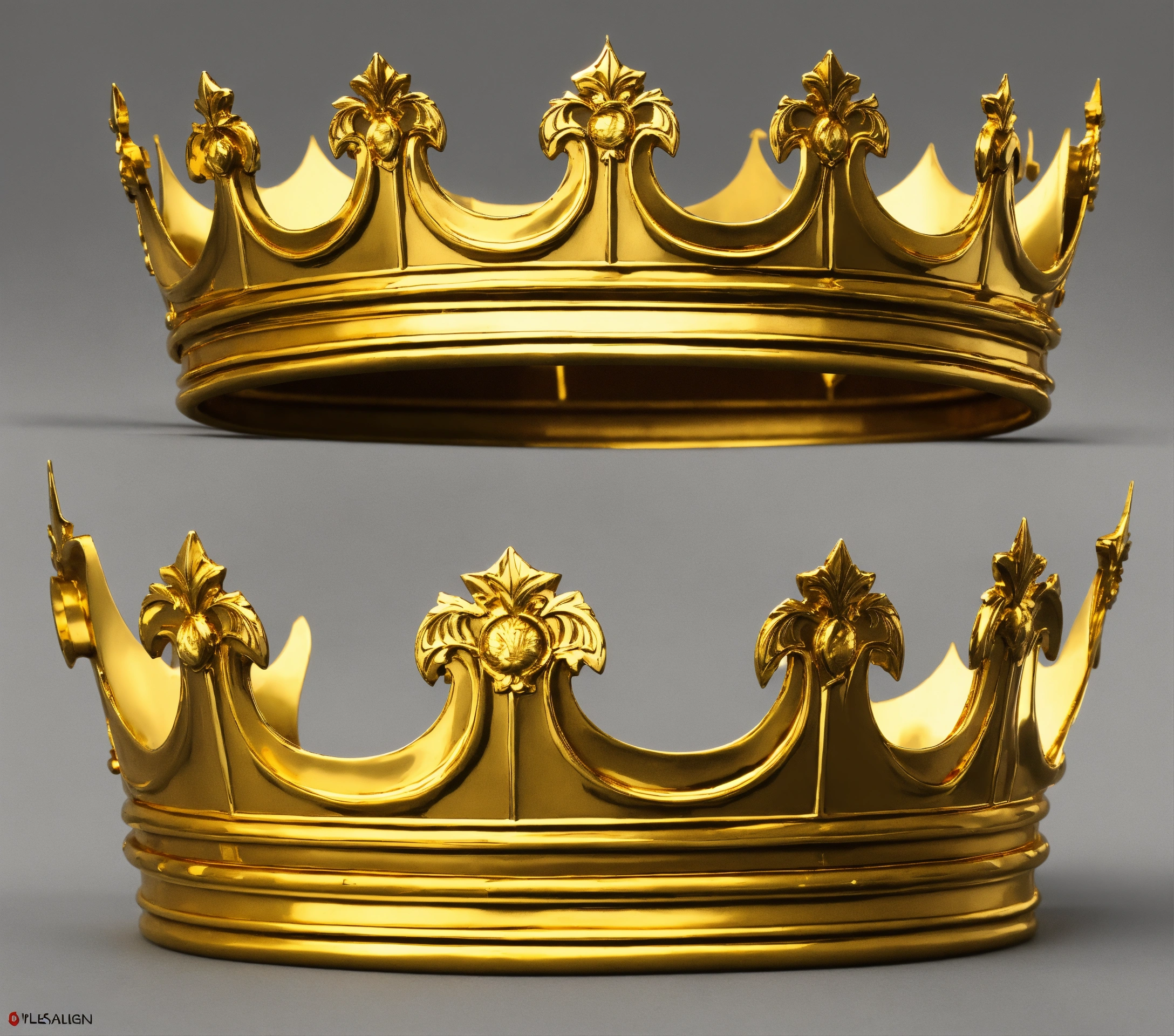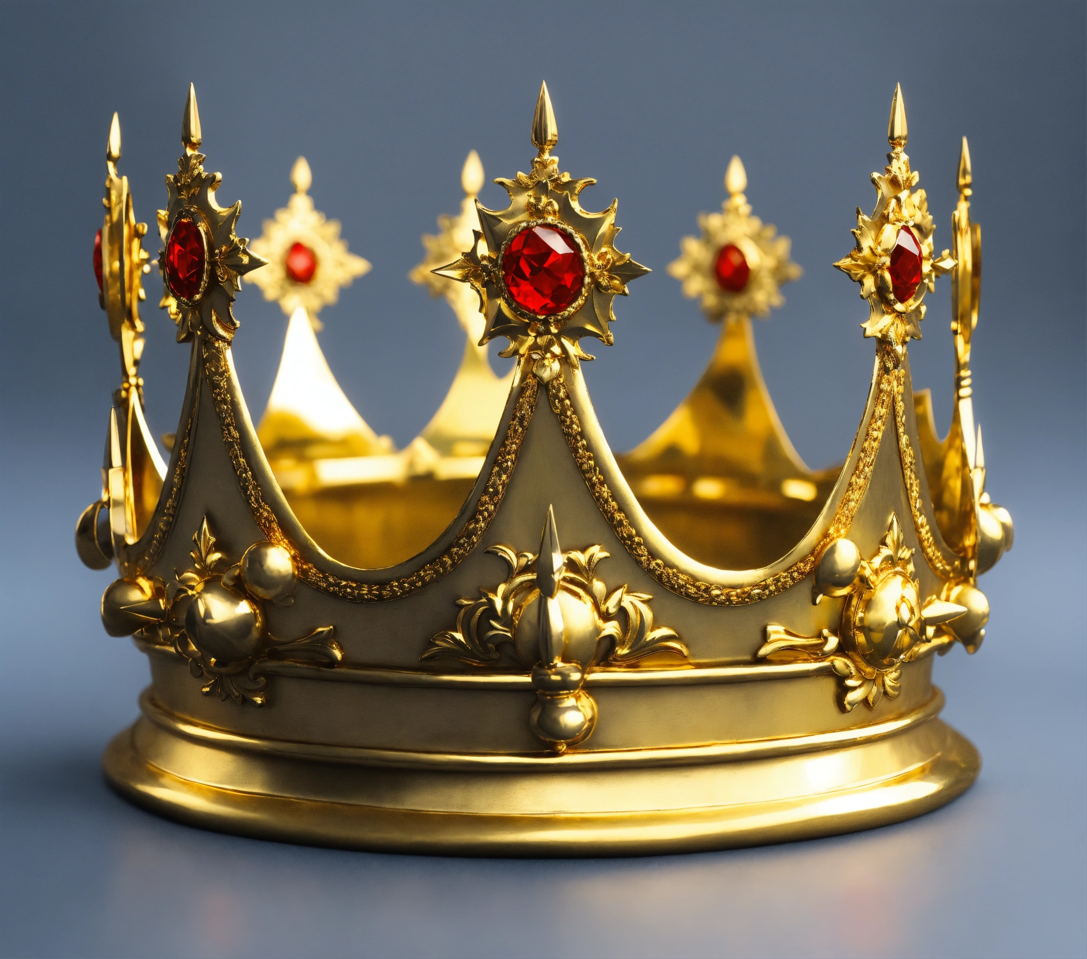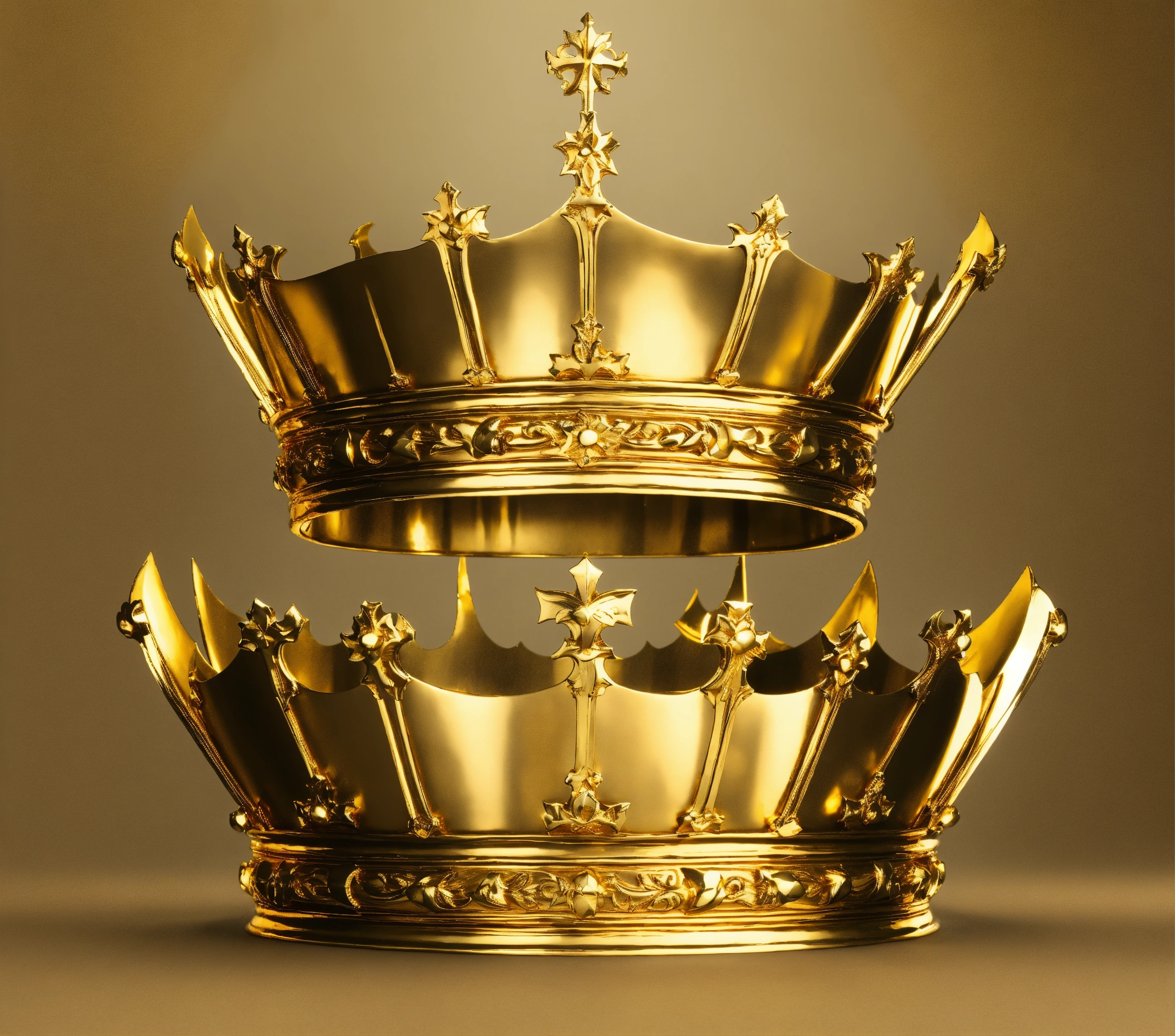 Create a medieval king crown plain gold, white background, plain gold crown, with 5 sword tips, shape like sword the tips of it