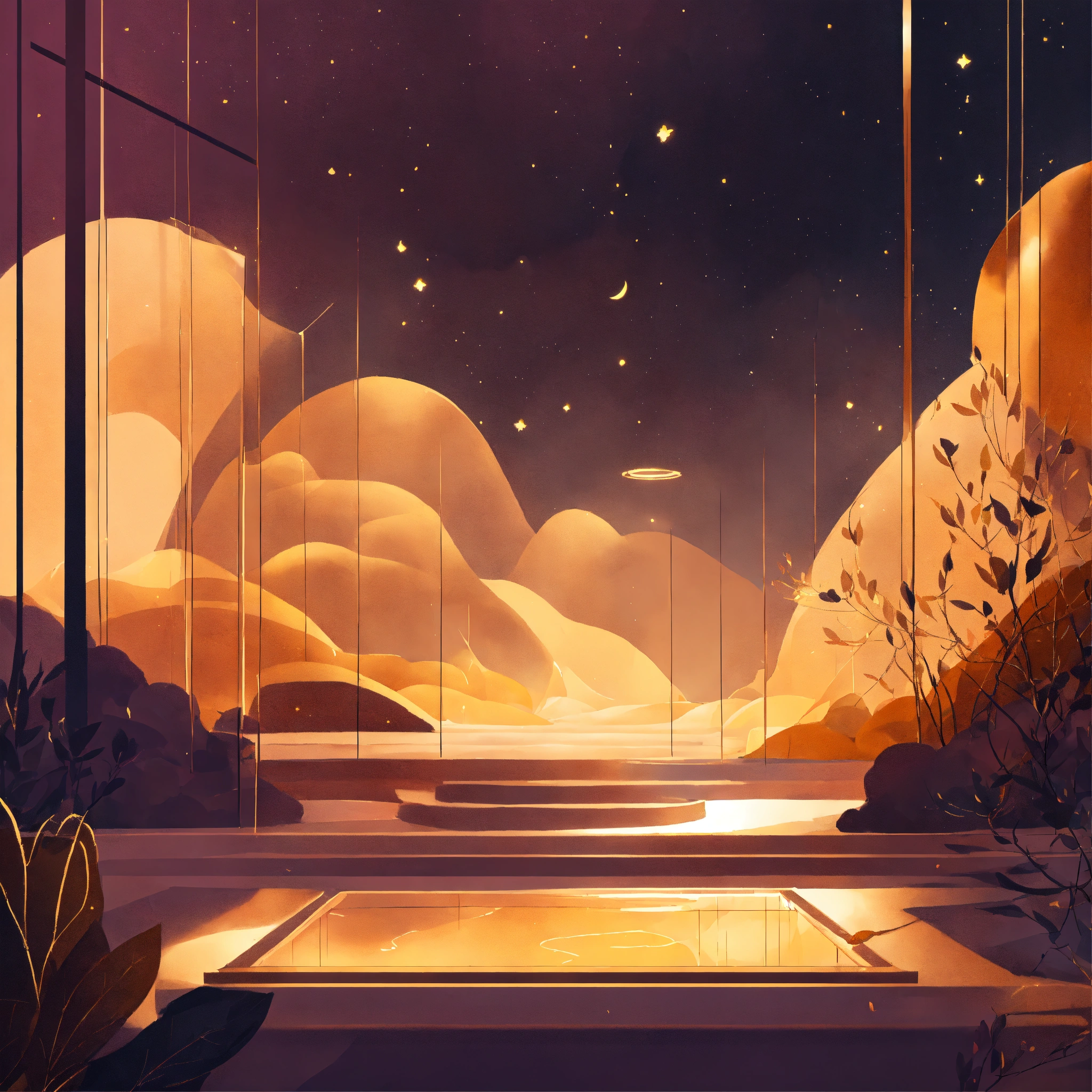 Light, illumination, golden light, divine, sci fi, abstract, nature cozy webpage background hero image for adorable platform modern minimalist illustration