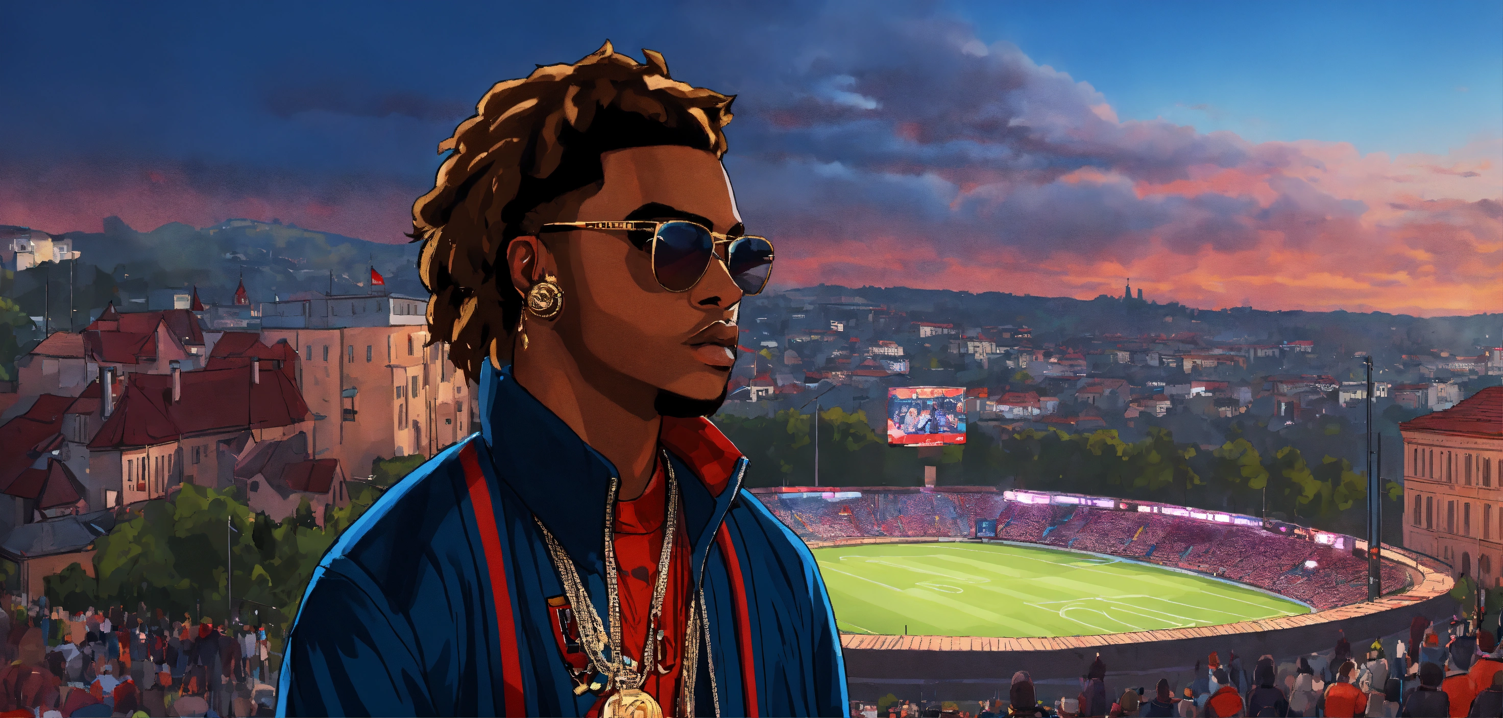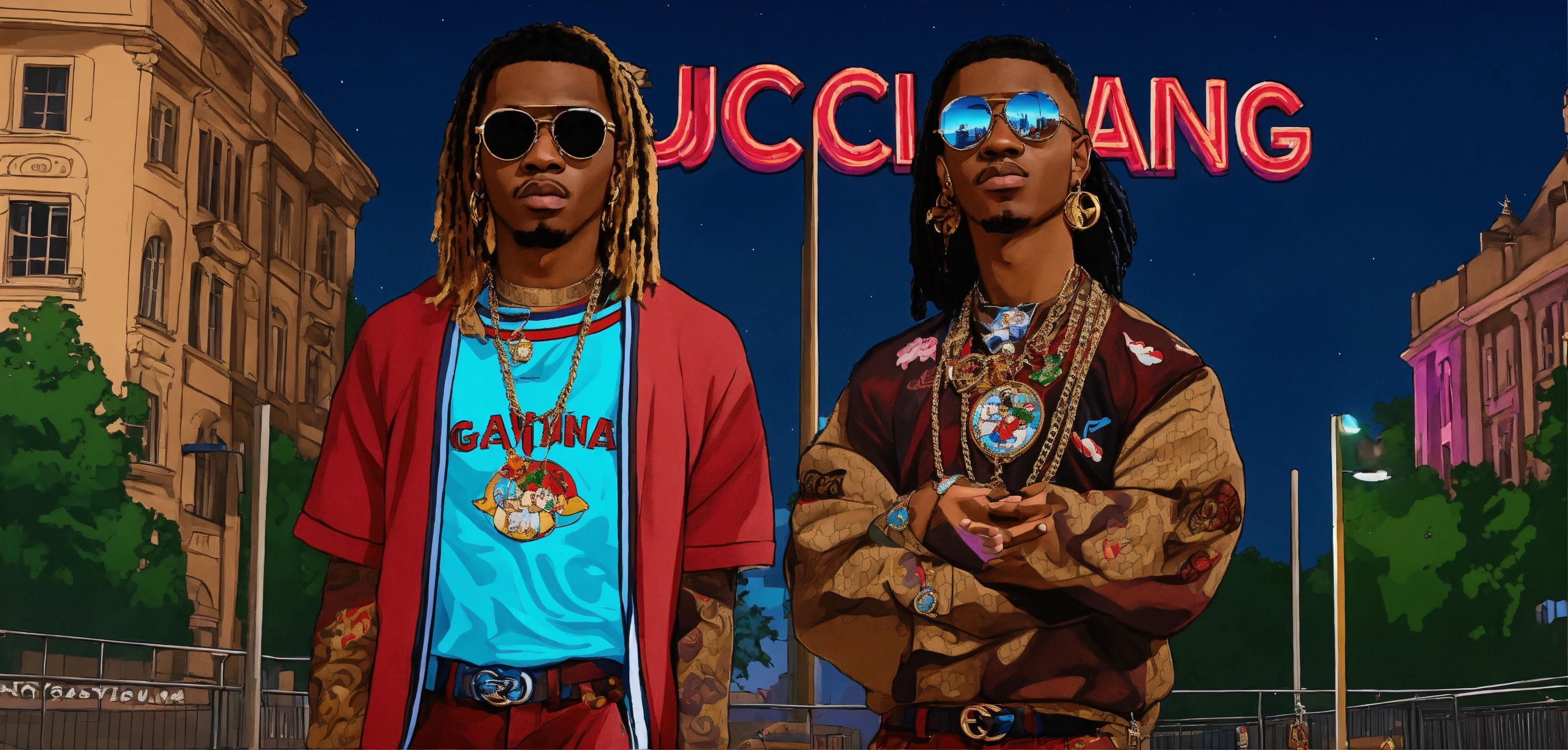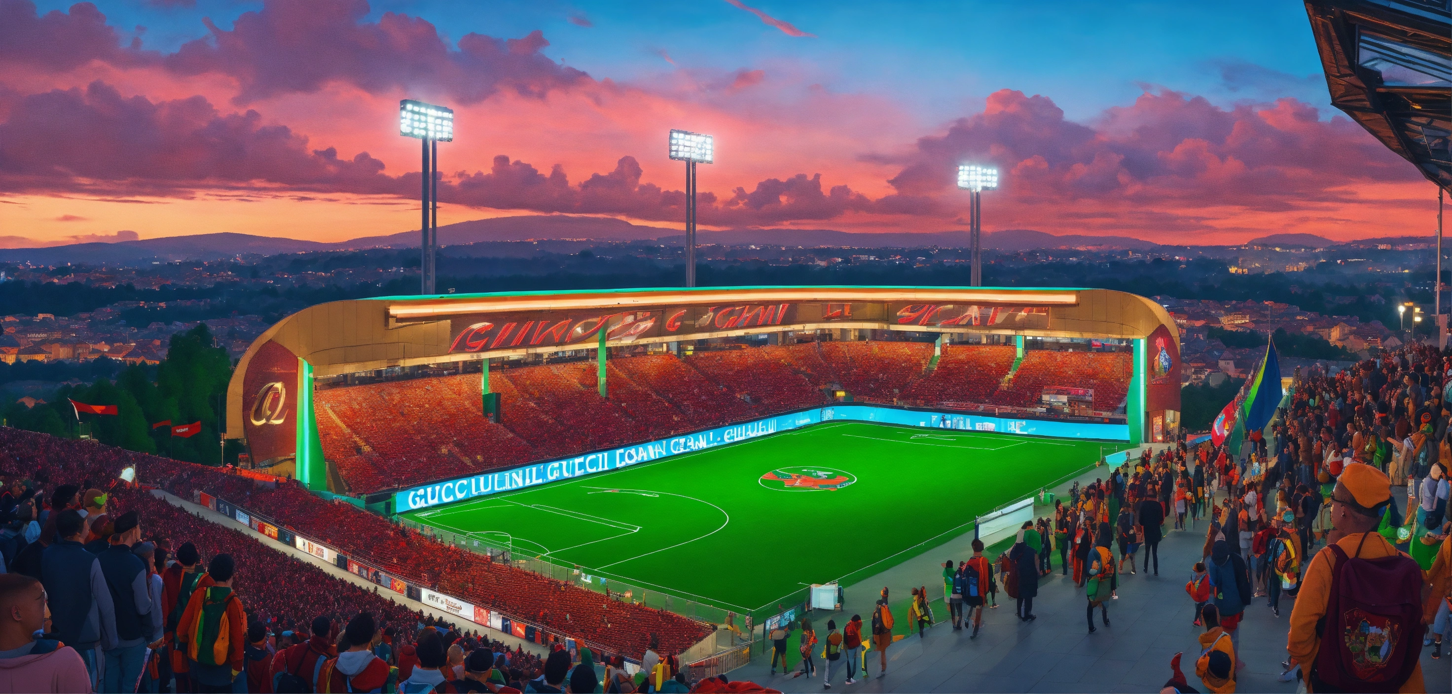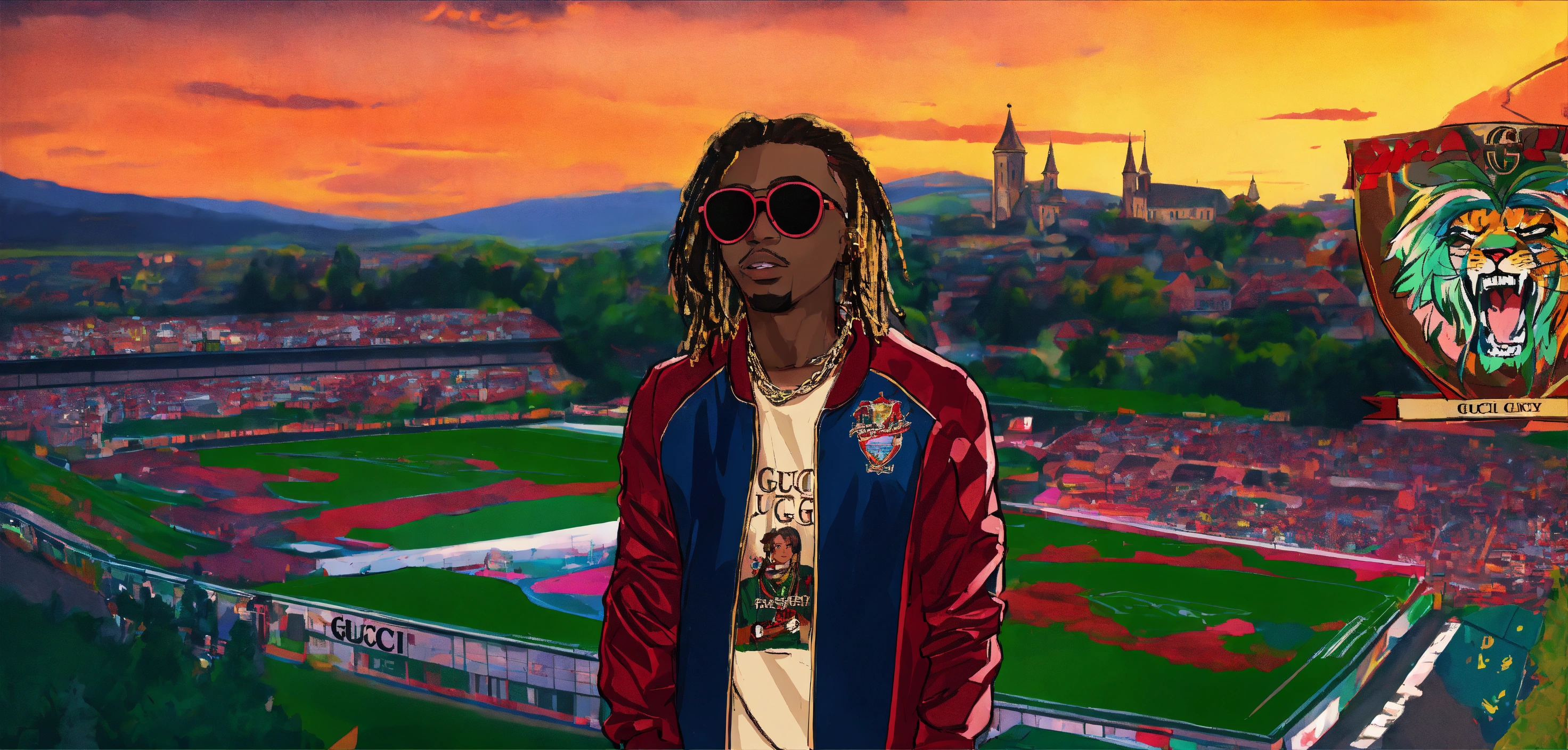 Gucci gang wallpaper in cartoon cluj city outside stadium view in the background add gunna on it