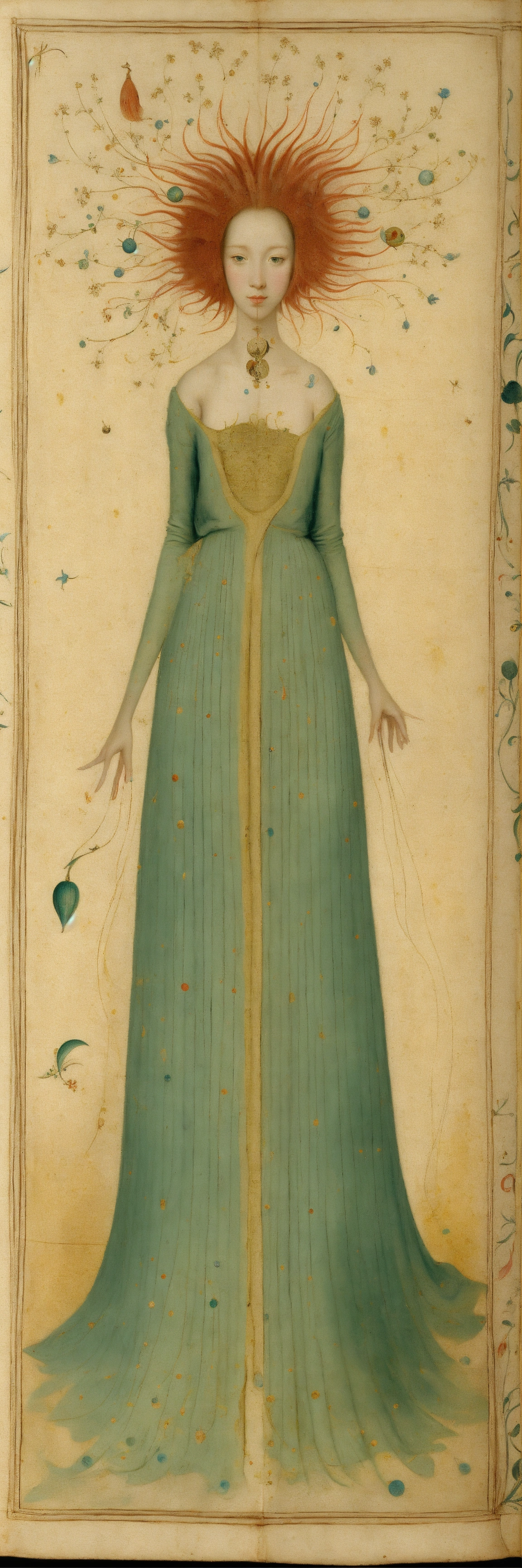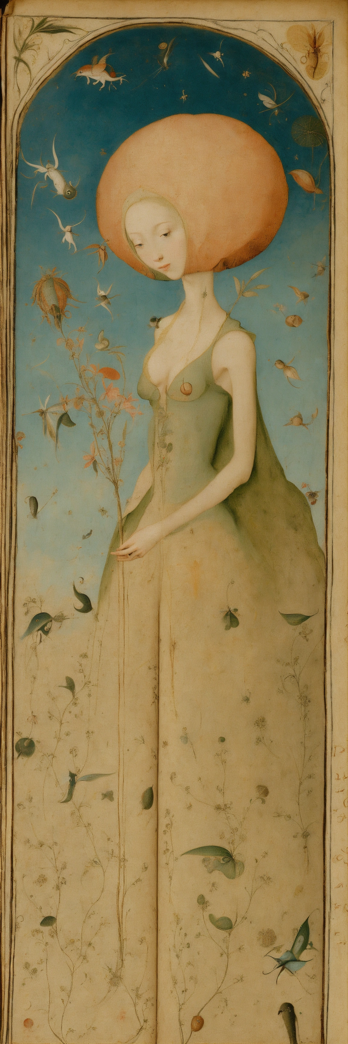 "a desirable alien-woman with butter-like feel from a lucid dream" in voynich manuscript by hieronymus bosch