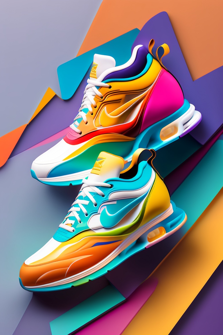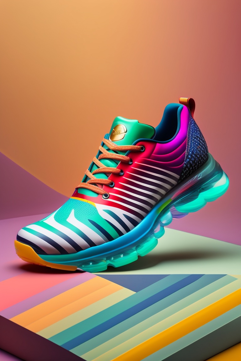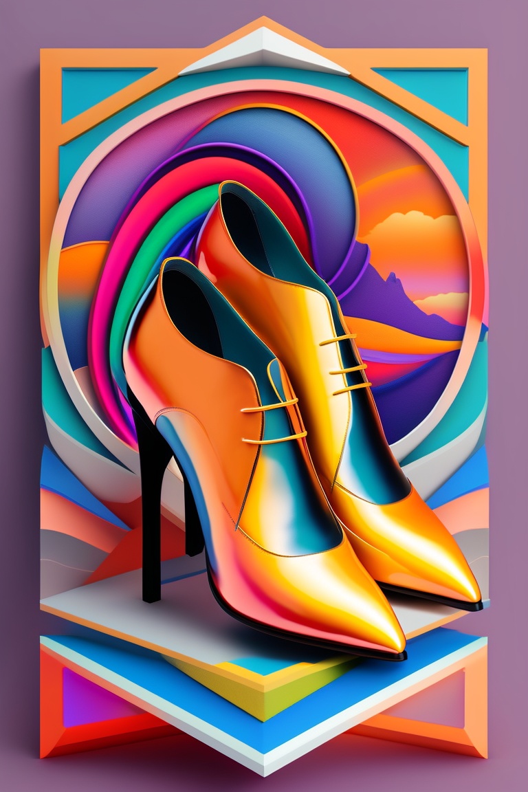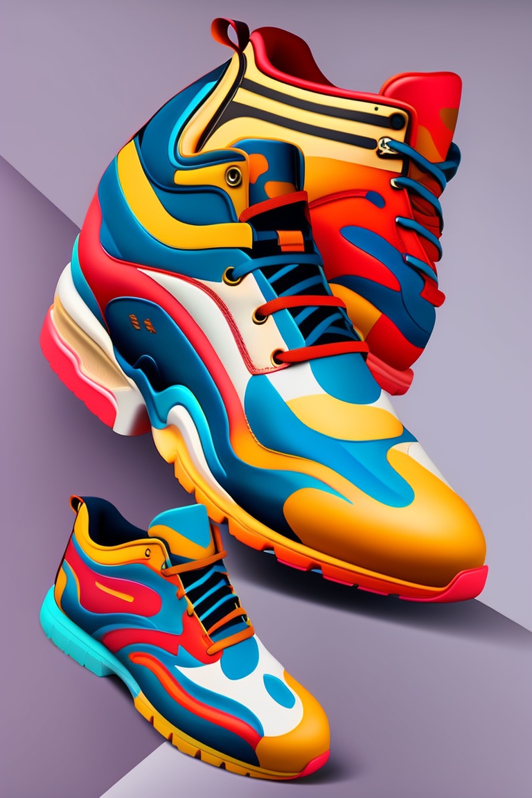 Fine line art shoes with a shape of tiger, multi color, isometric and mythological background with high depth