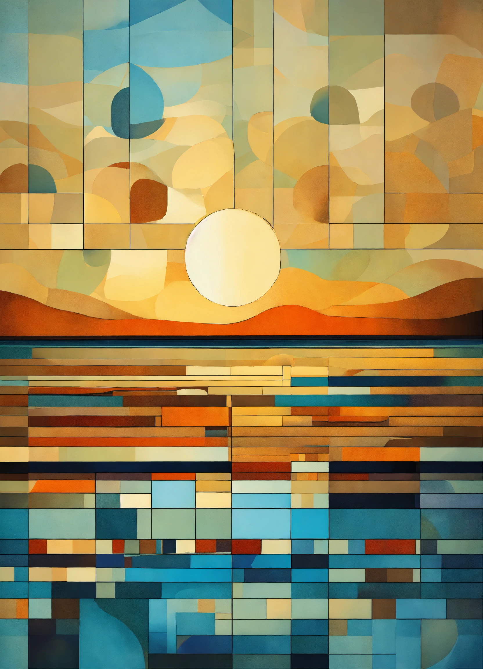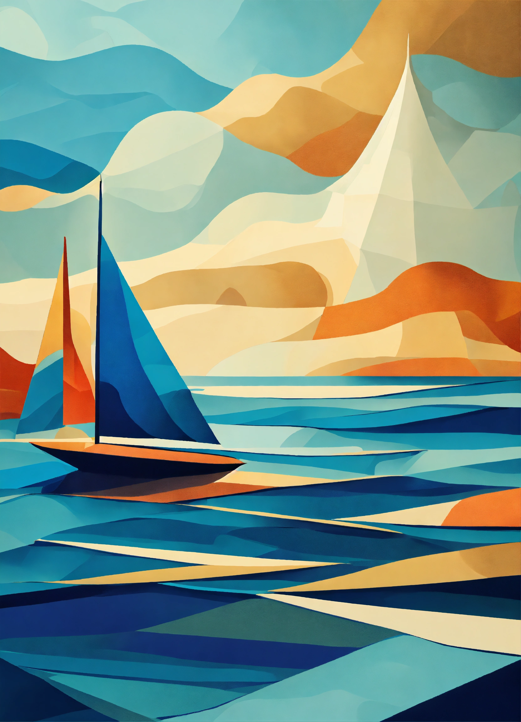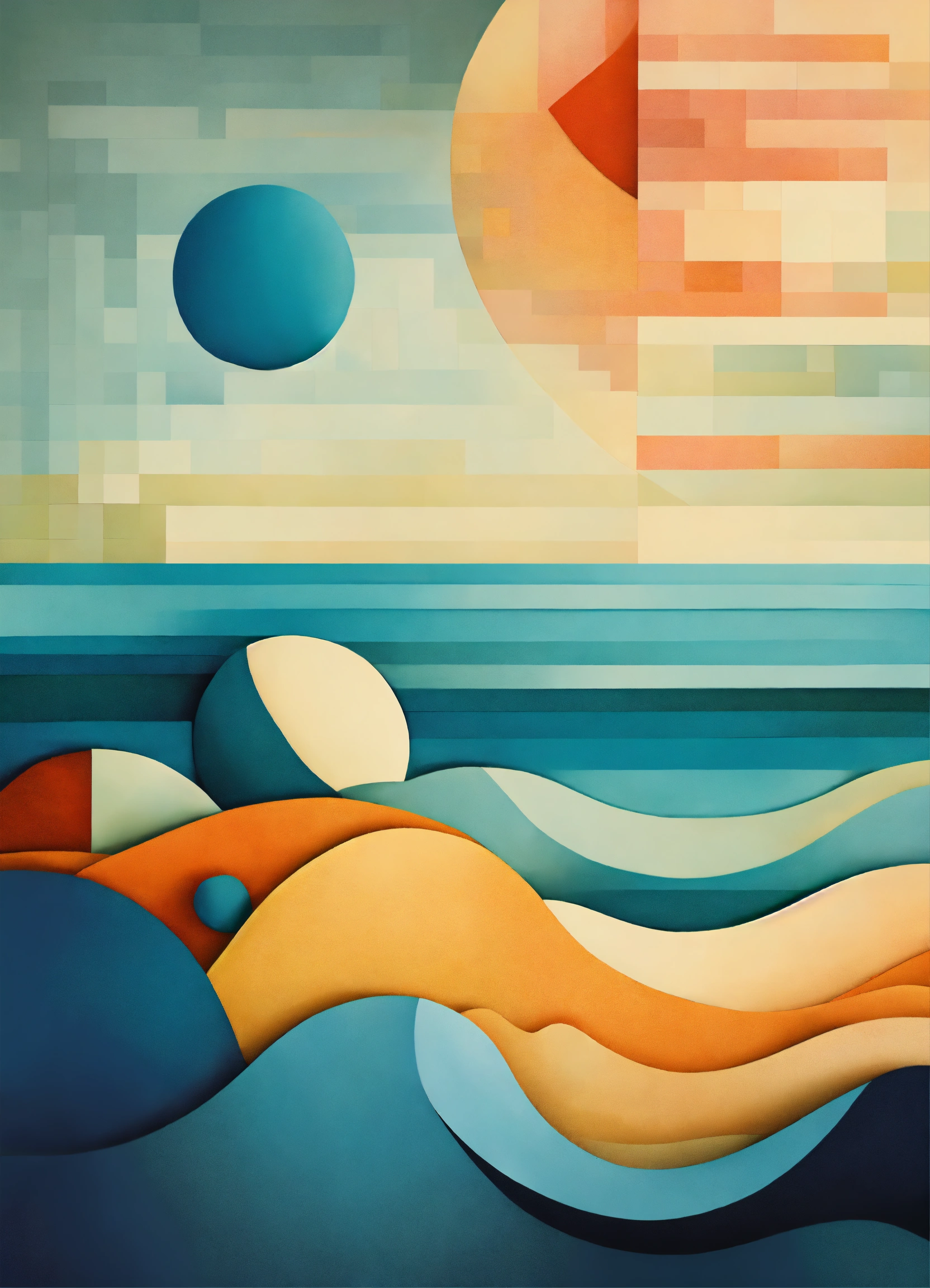 Abstract design and minimalist of ocean serenity cubist art in high resolution