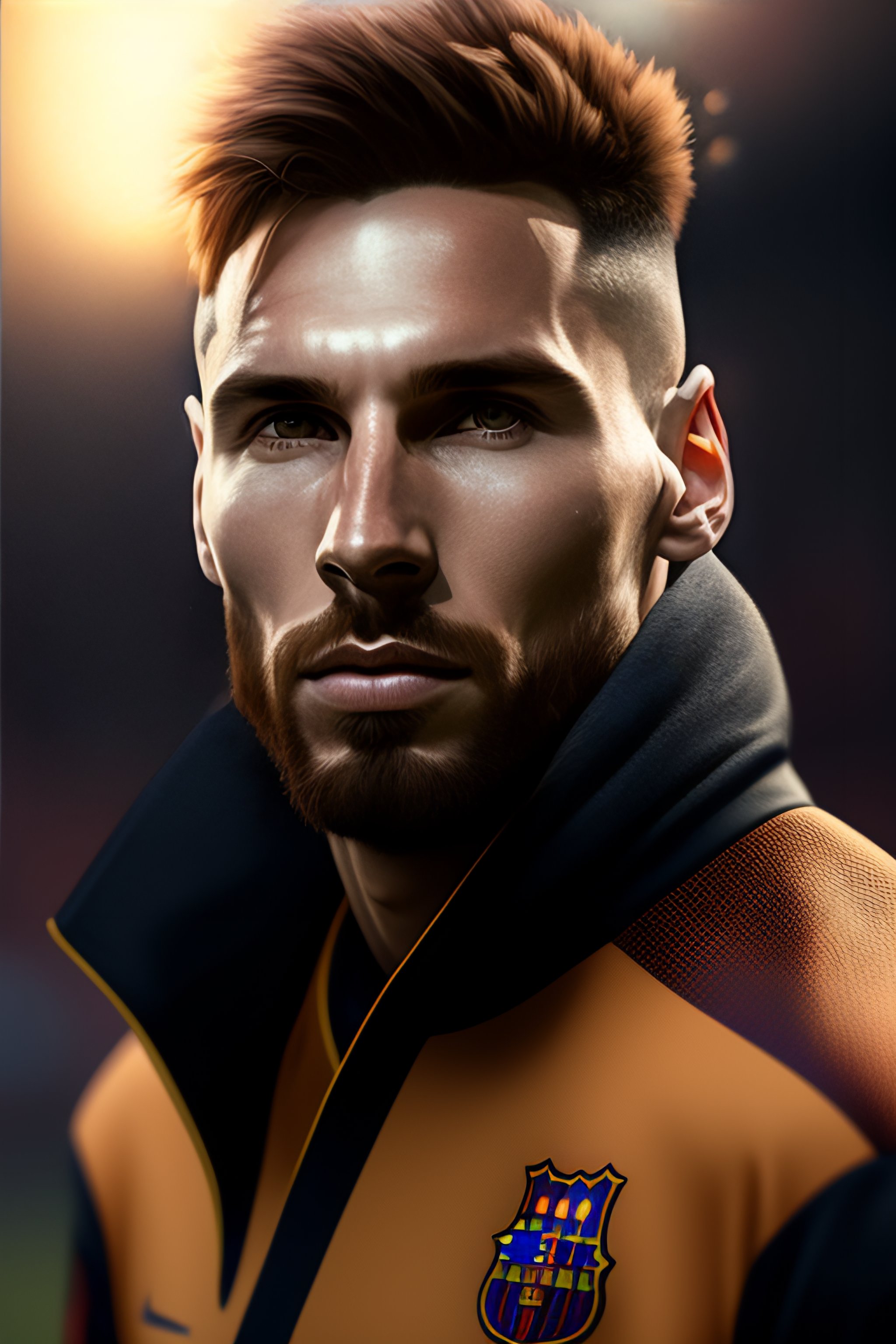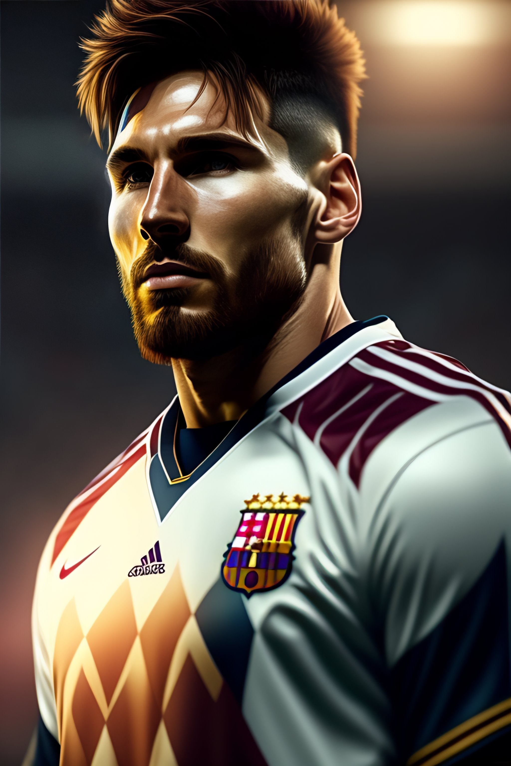 Leo messi, character art, wearing soccer jersey, cinematic lighting symmetrical facial features, from arknights, hyper realistic, 4 k, rule of thirds, extreme detail, detailed drawing, trending artstation, realistic lighting, by alphonse mucha, greg rutkowski, short neck