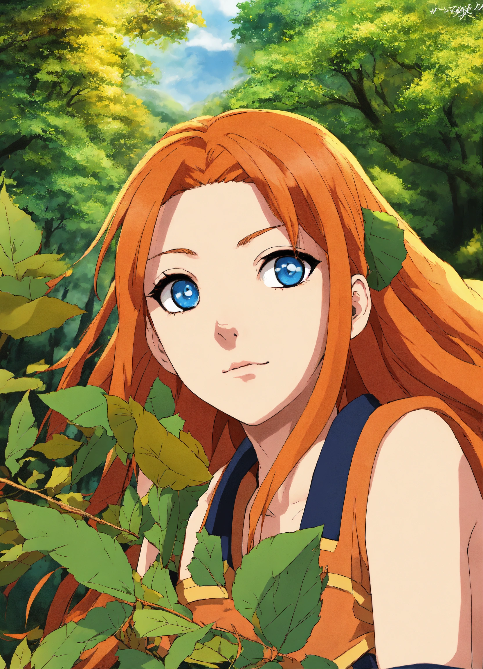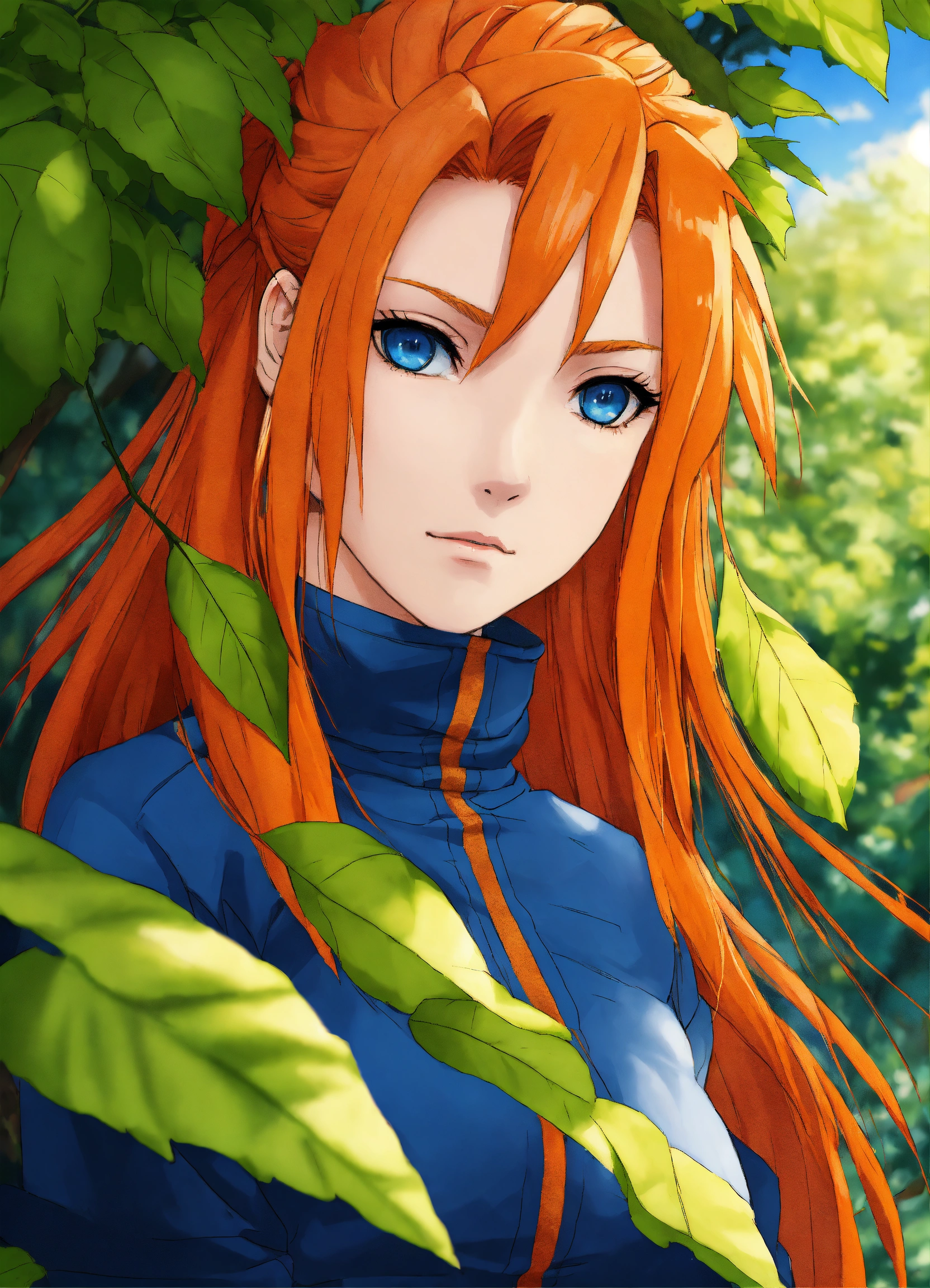 Naruto-style art, masashi kishimoto art, anime, naruto manga, naruto anime, original character, ginger hair, blue eyes, pretty woman, kunoichi, shinobi, konoha, ginger long hair, blue eyes, beautiful girl, beautiful young woman in naruto style art, feminine, fishnets, village hidden in the leaves