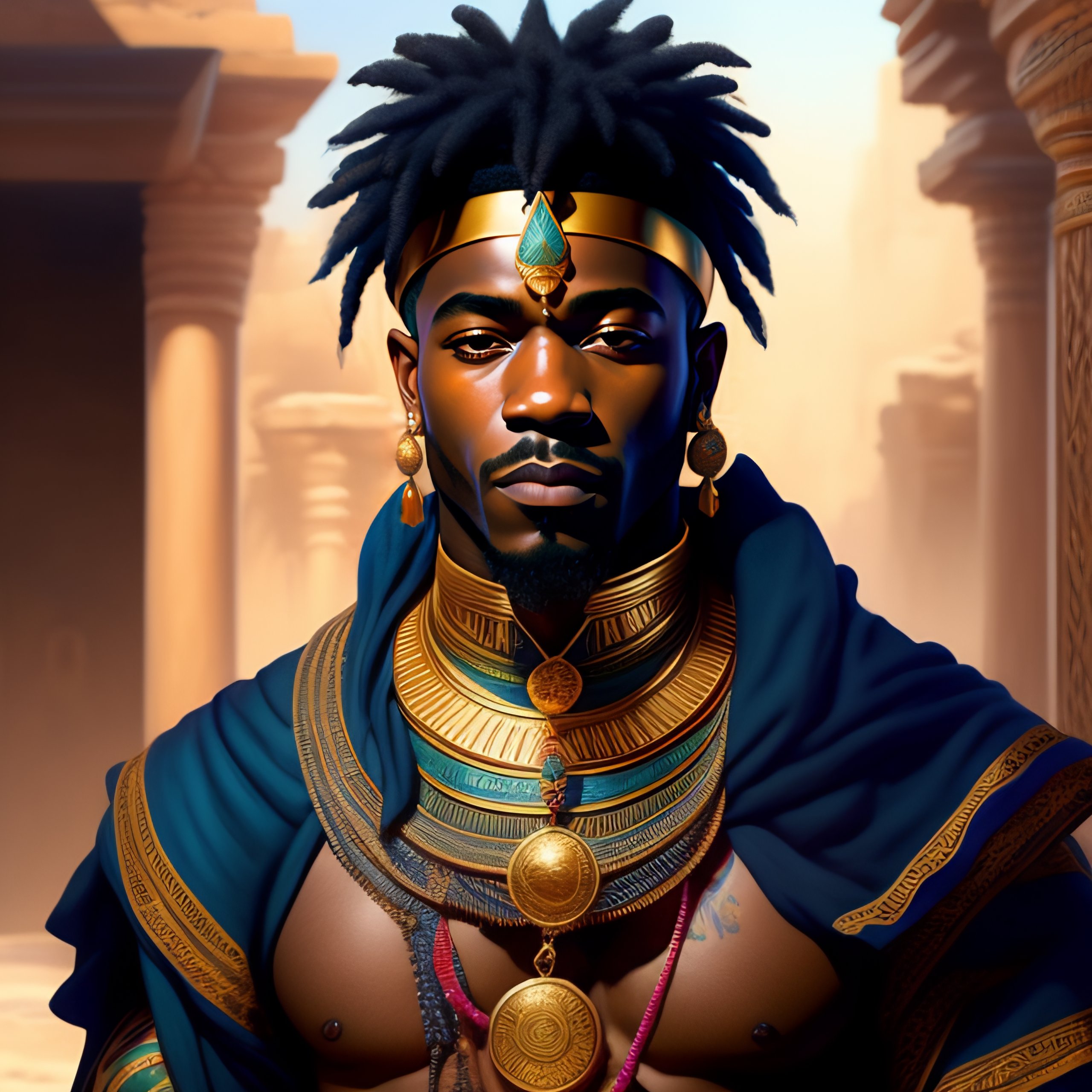 Lil uzi vert in egyptian clothing style, highly detailed, digital painting, arts station, concept art, soft, sharp focus, illustration, art by artgerm and greg rutkowski and alphonse mucha