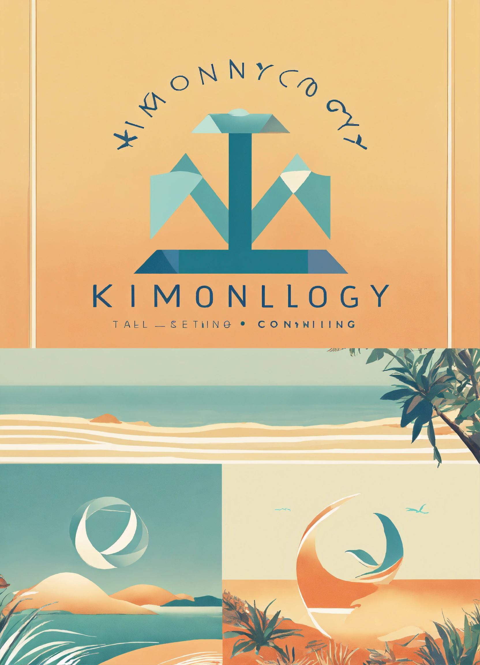High resolution icon of a extremely simple 2d, elegant, clean and modern geometric logo, business identity, business card, letterhead for beach inspired women's clothing company "kimonology" conveying "peace", "freedom", "ocean", "tropical"