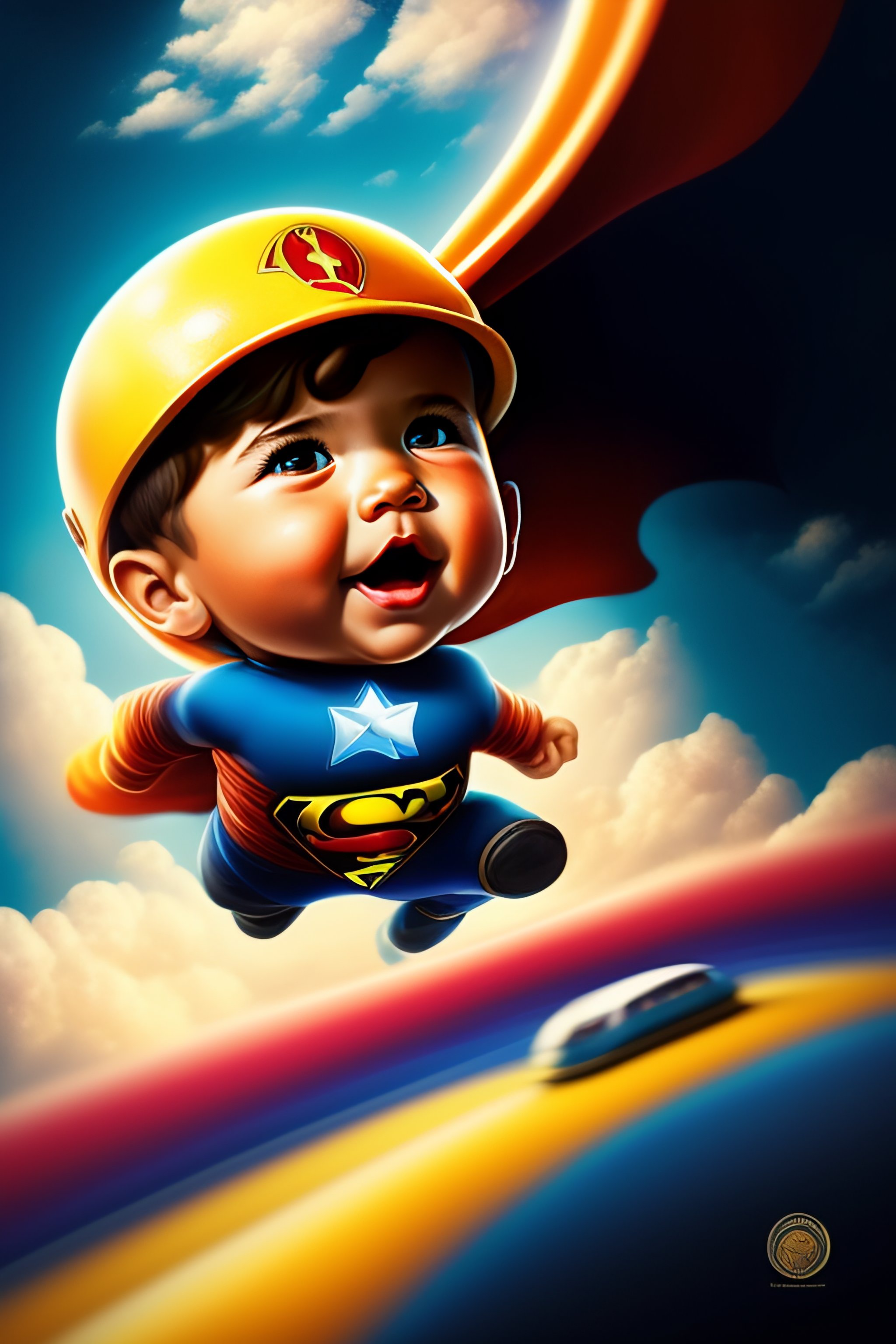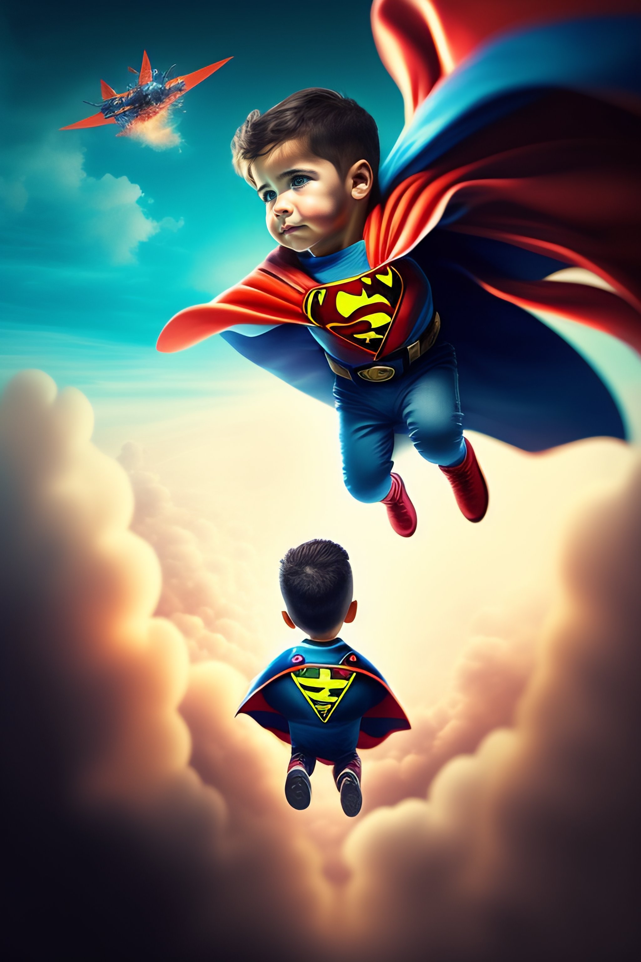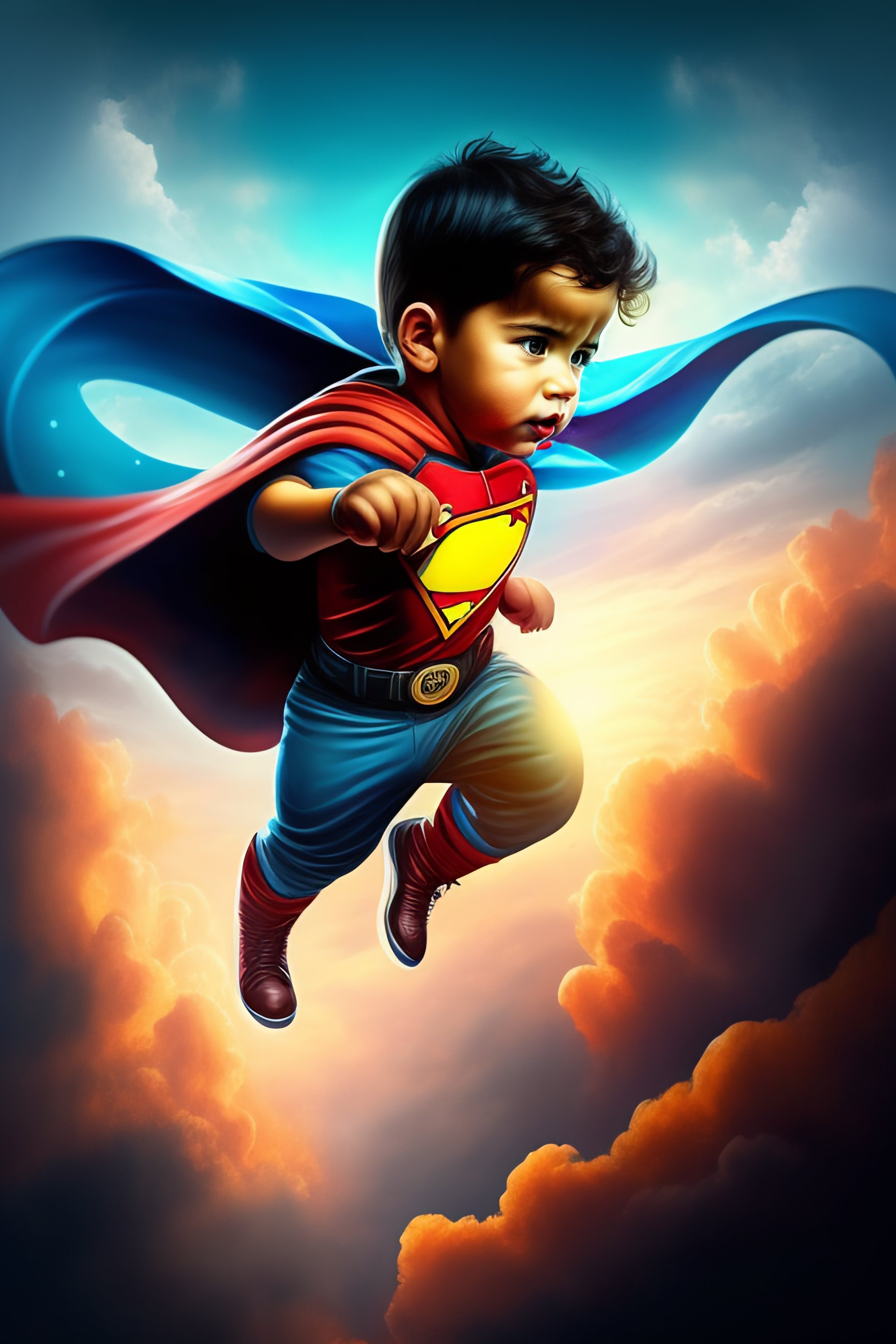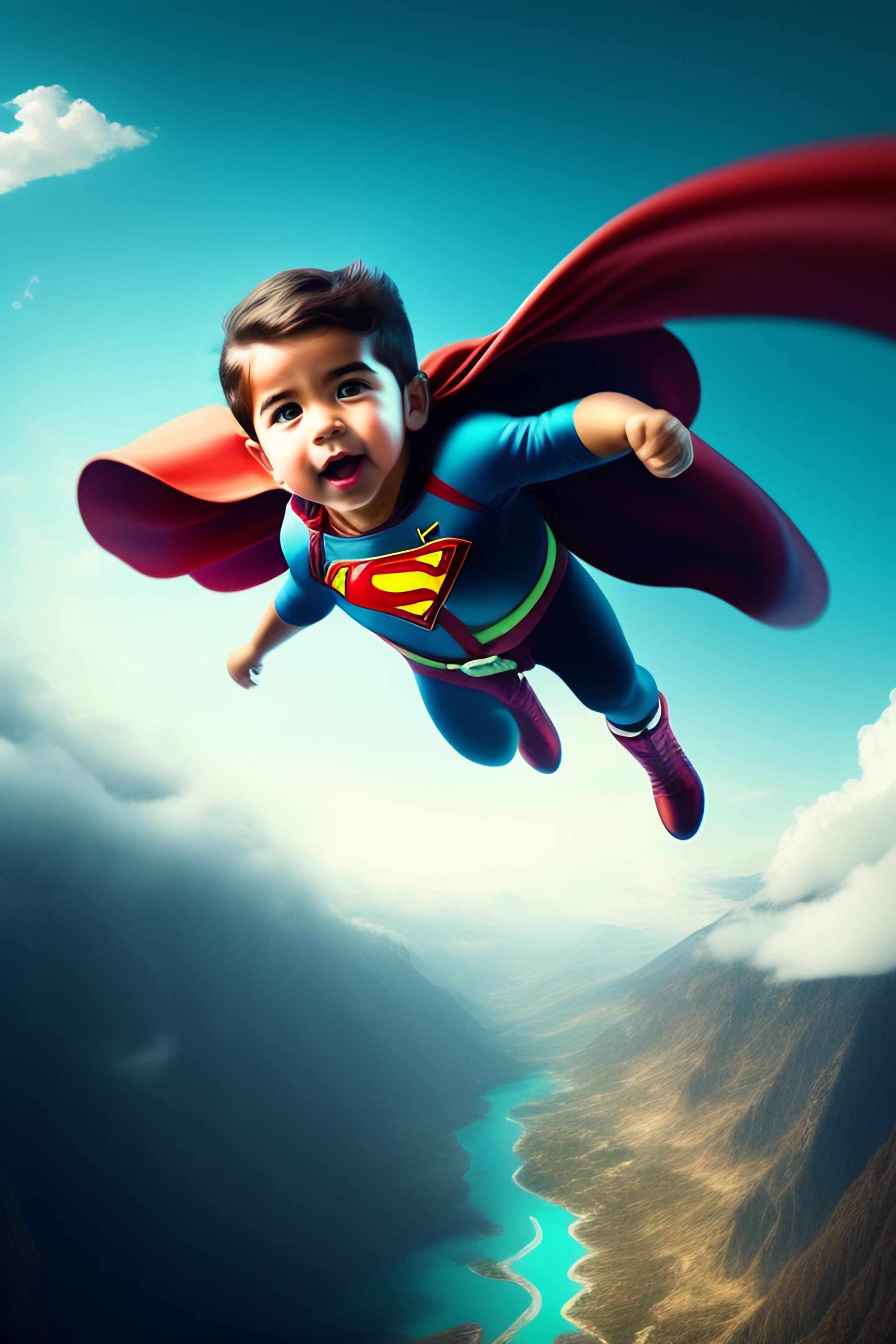 Un niño volando por los cielos como un super heroe