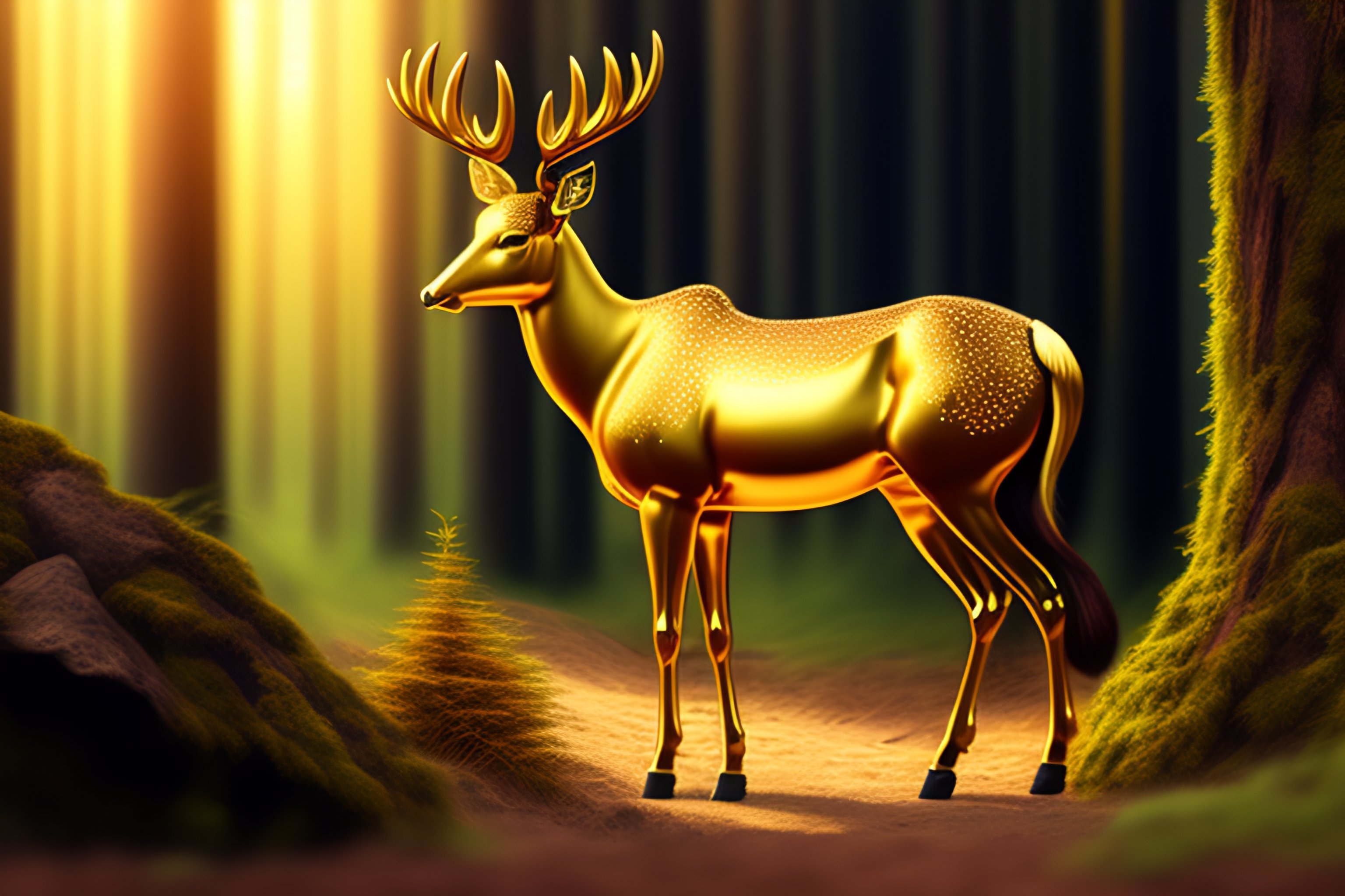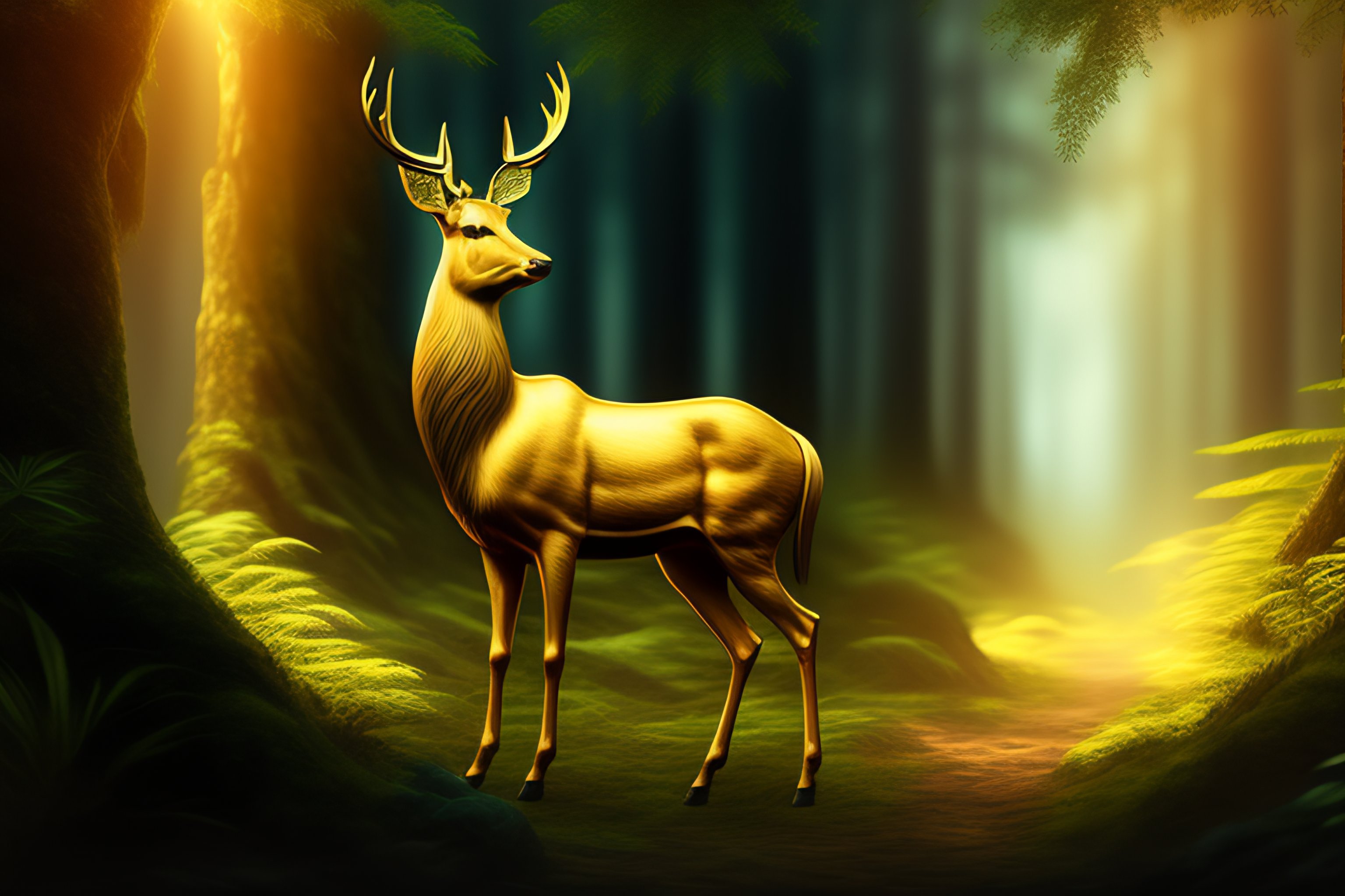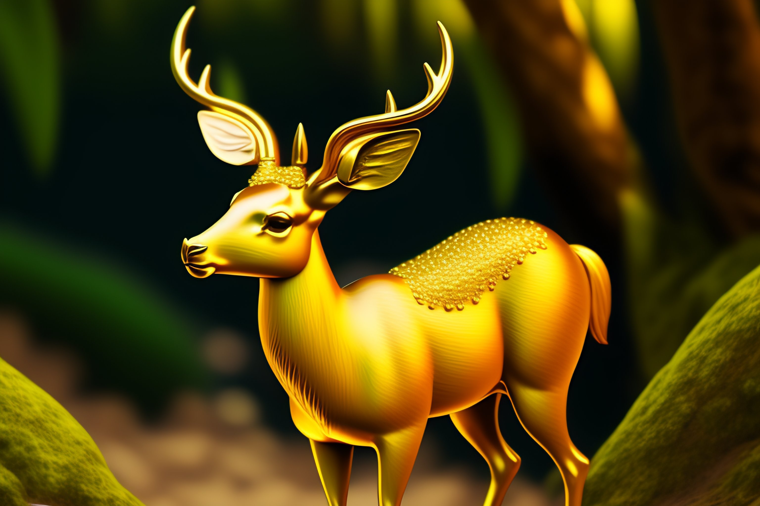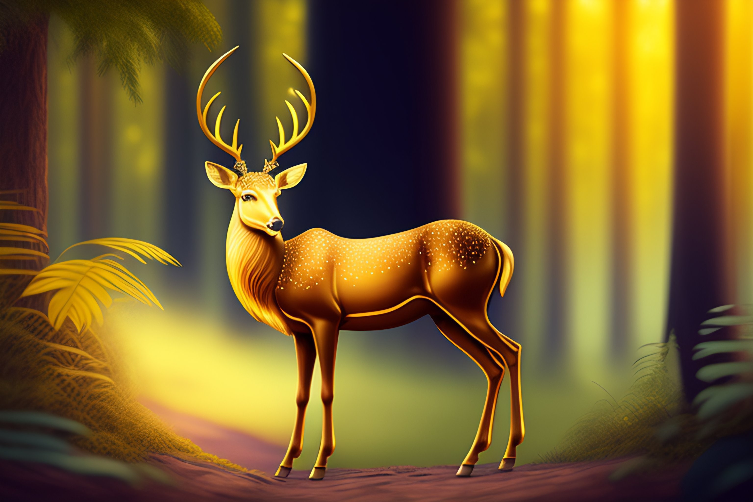 Cartoon golden deer in jungle