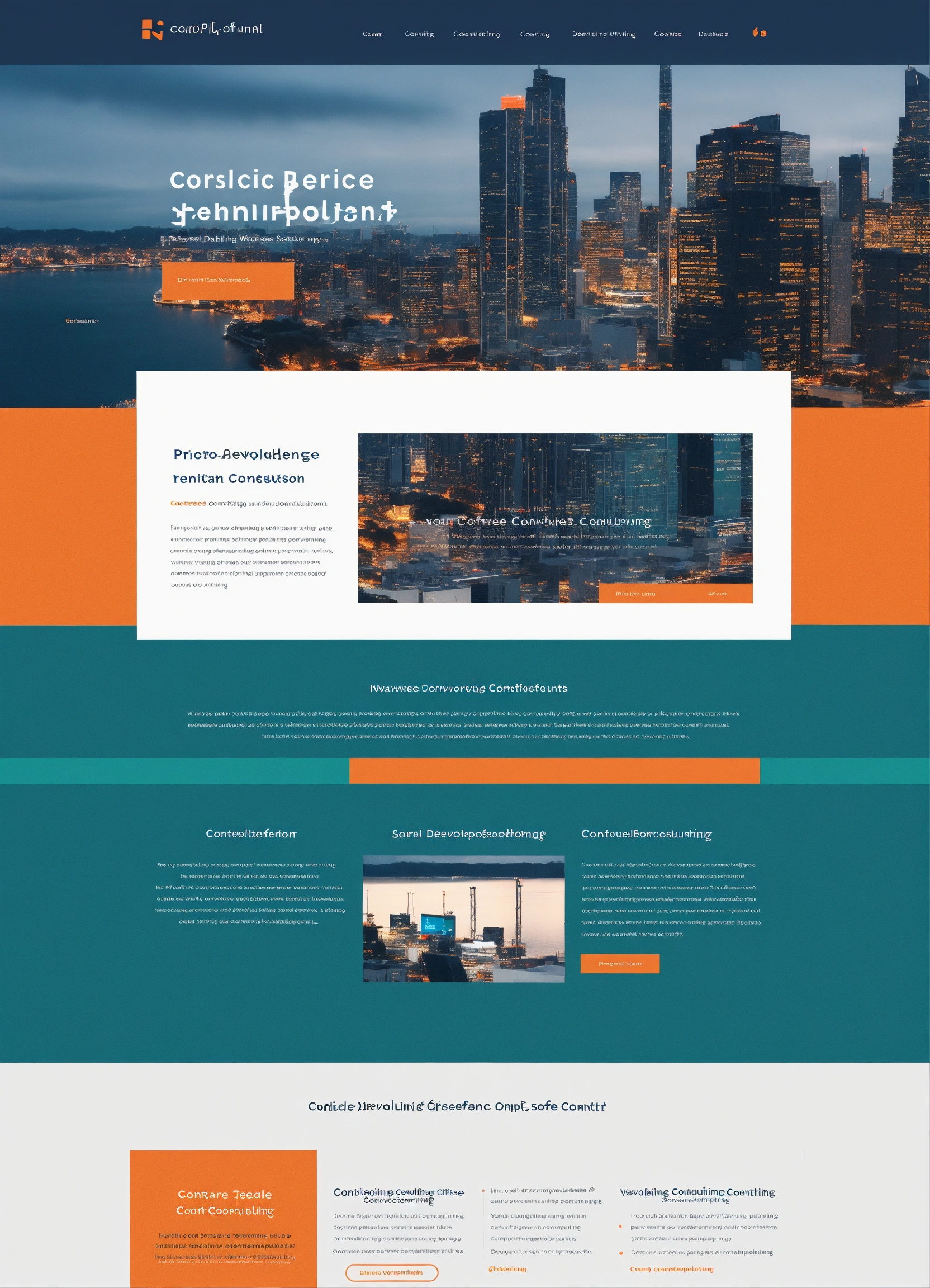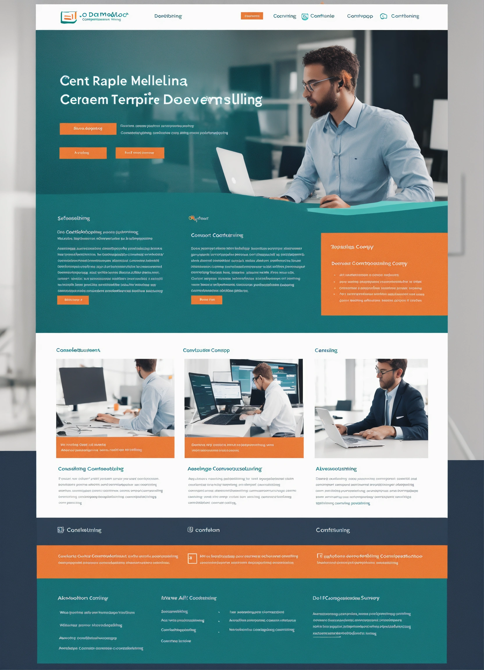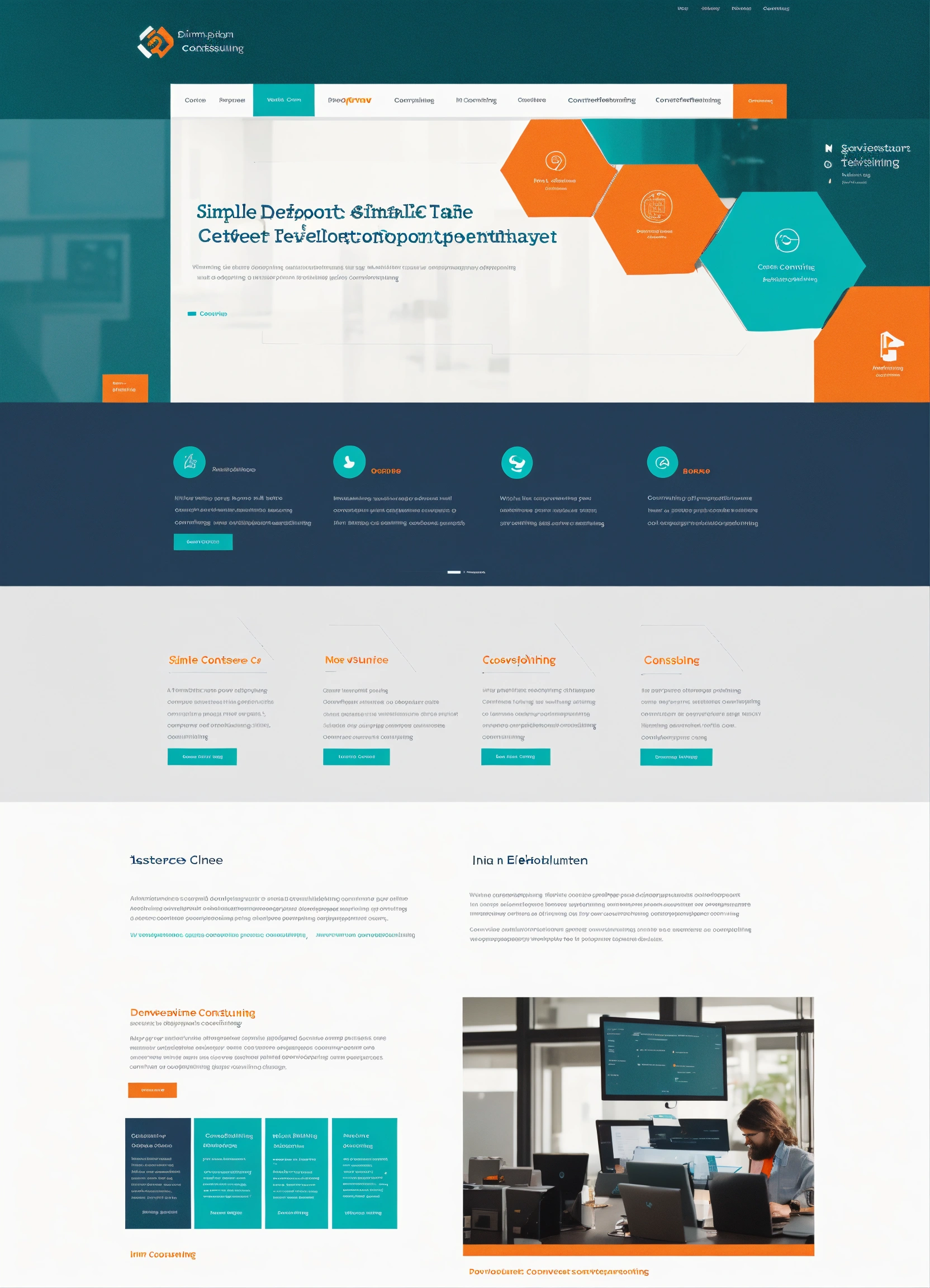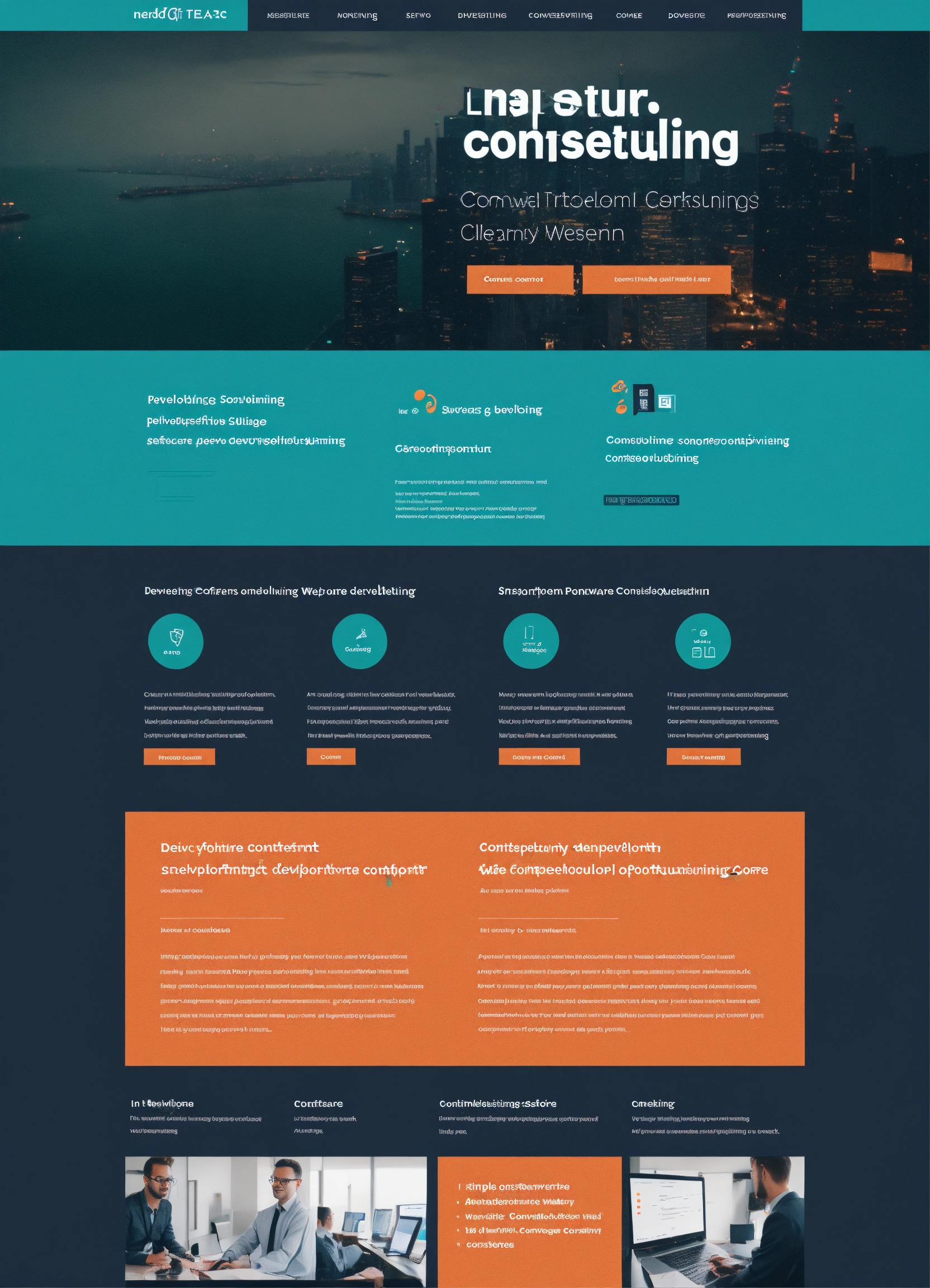 Simple, clean, modern software development consulting company website - in dark teal with orange accent