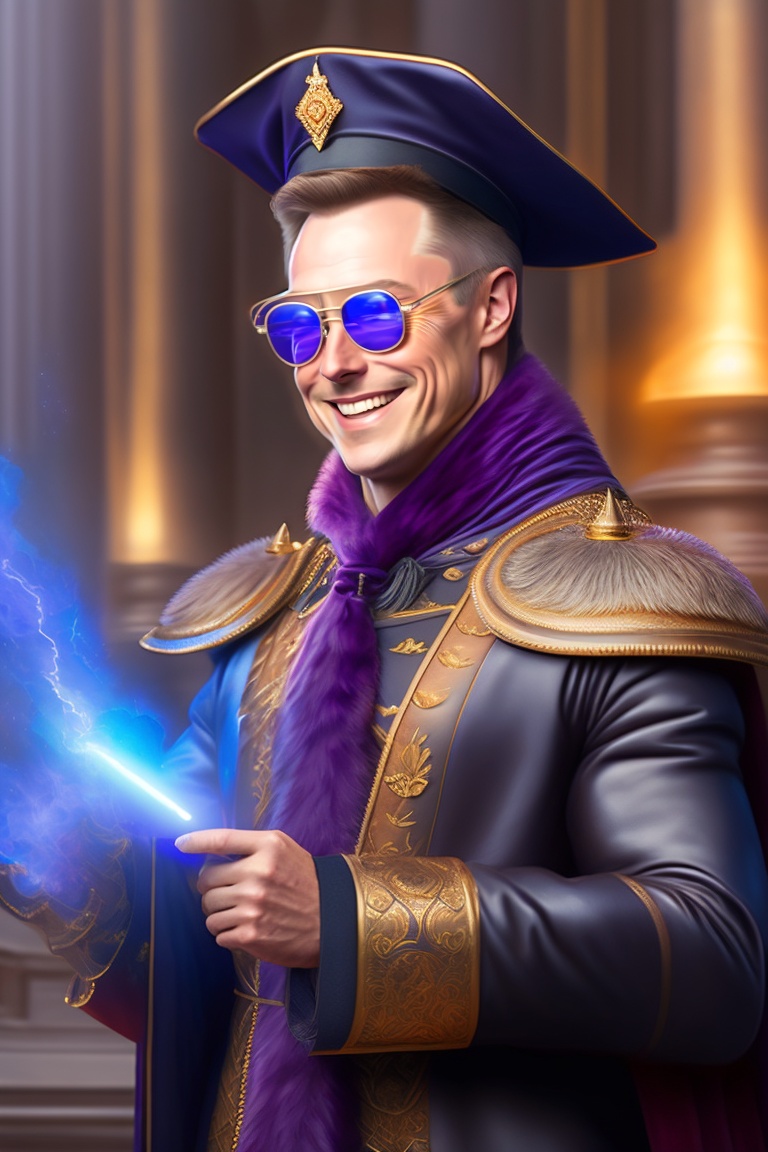 Ultra jacked elon musk in a wizard outfit casting a spell