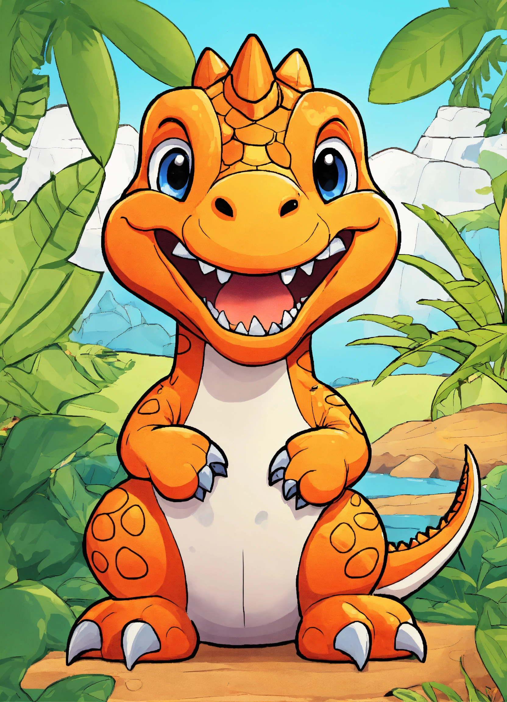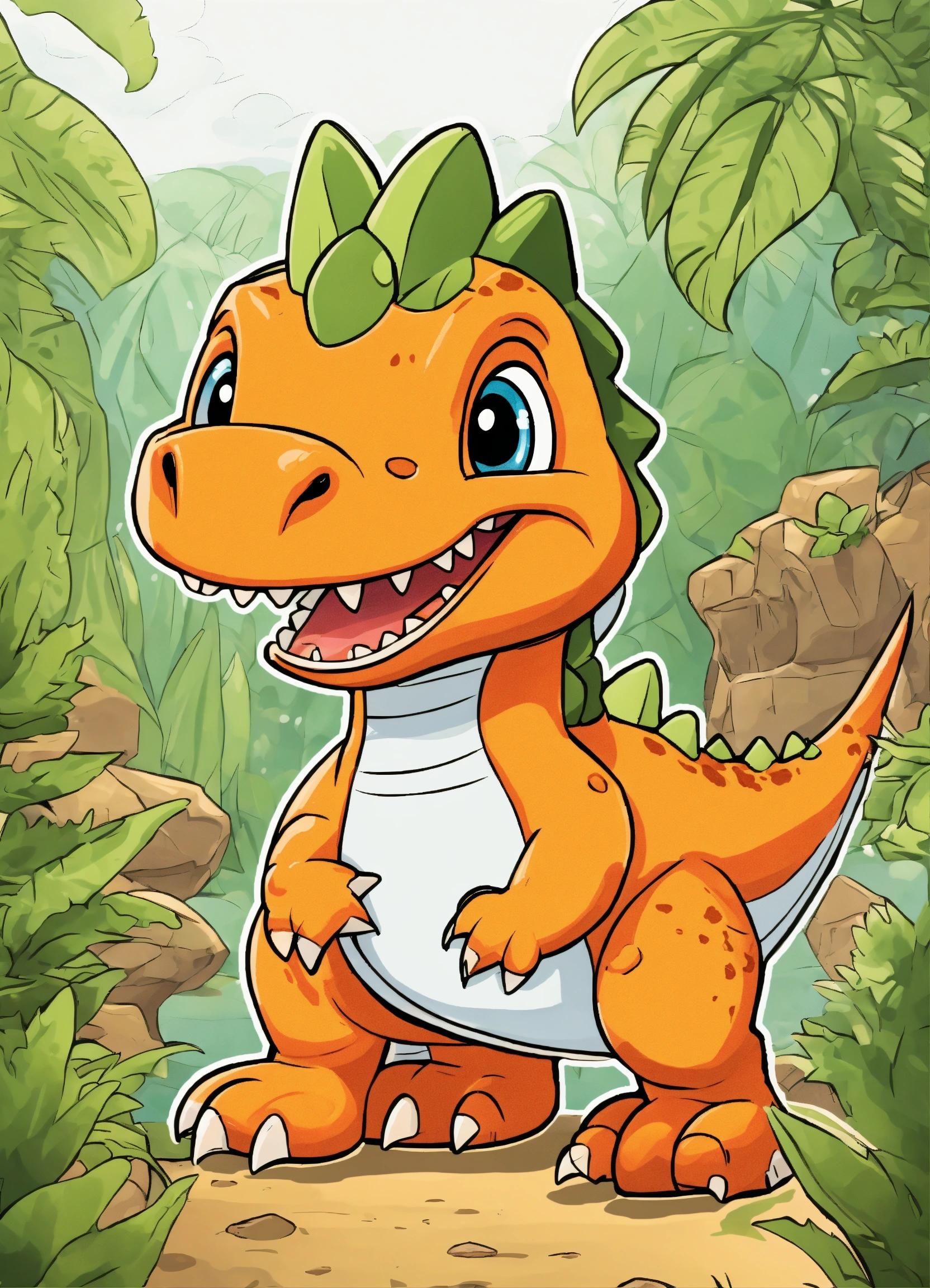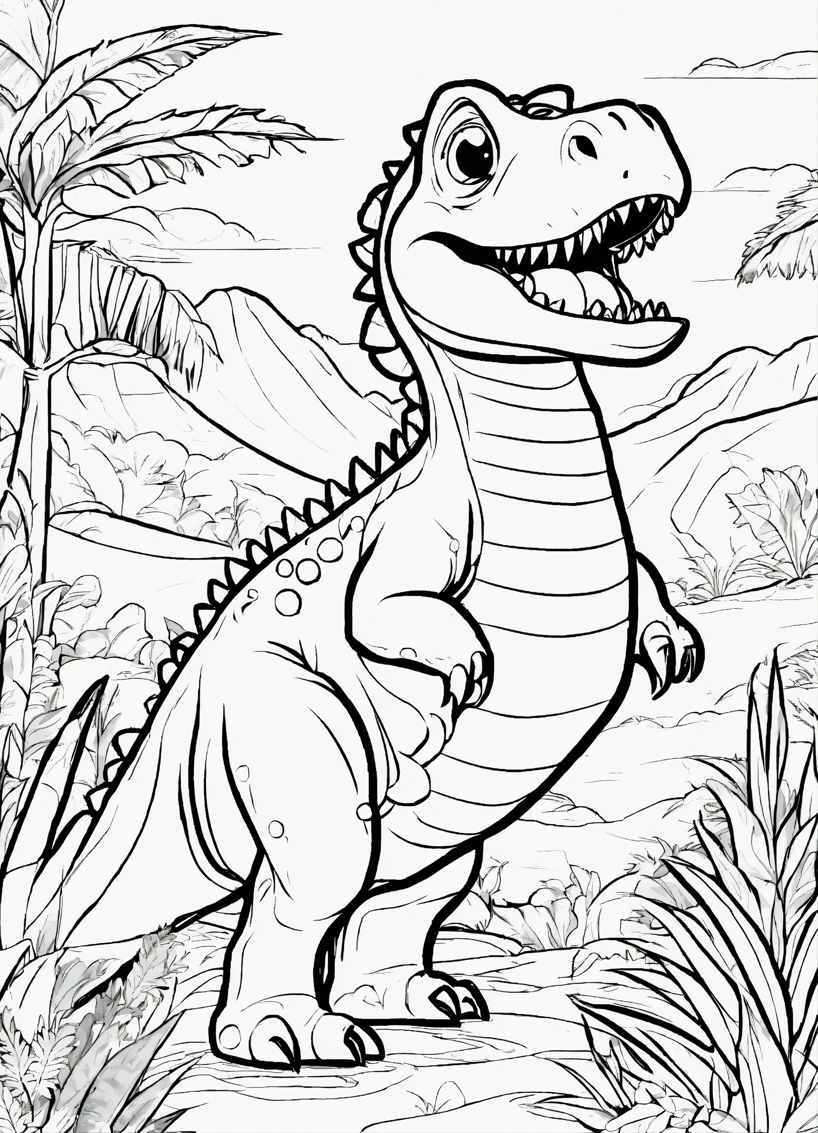 Generate a cute dinosaur illustration, resolution, cartoon-sticker style with clear lines on a pure white background suitable for a children's coloring book.