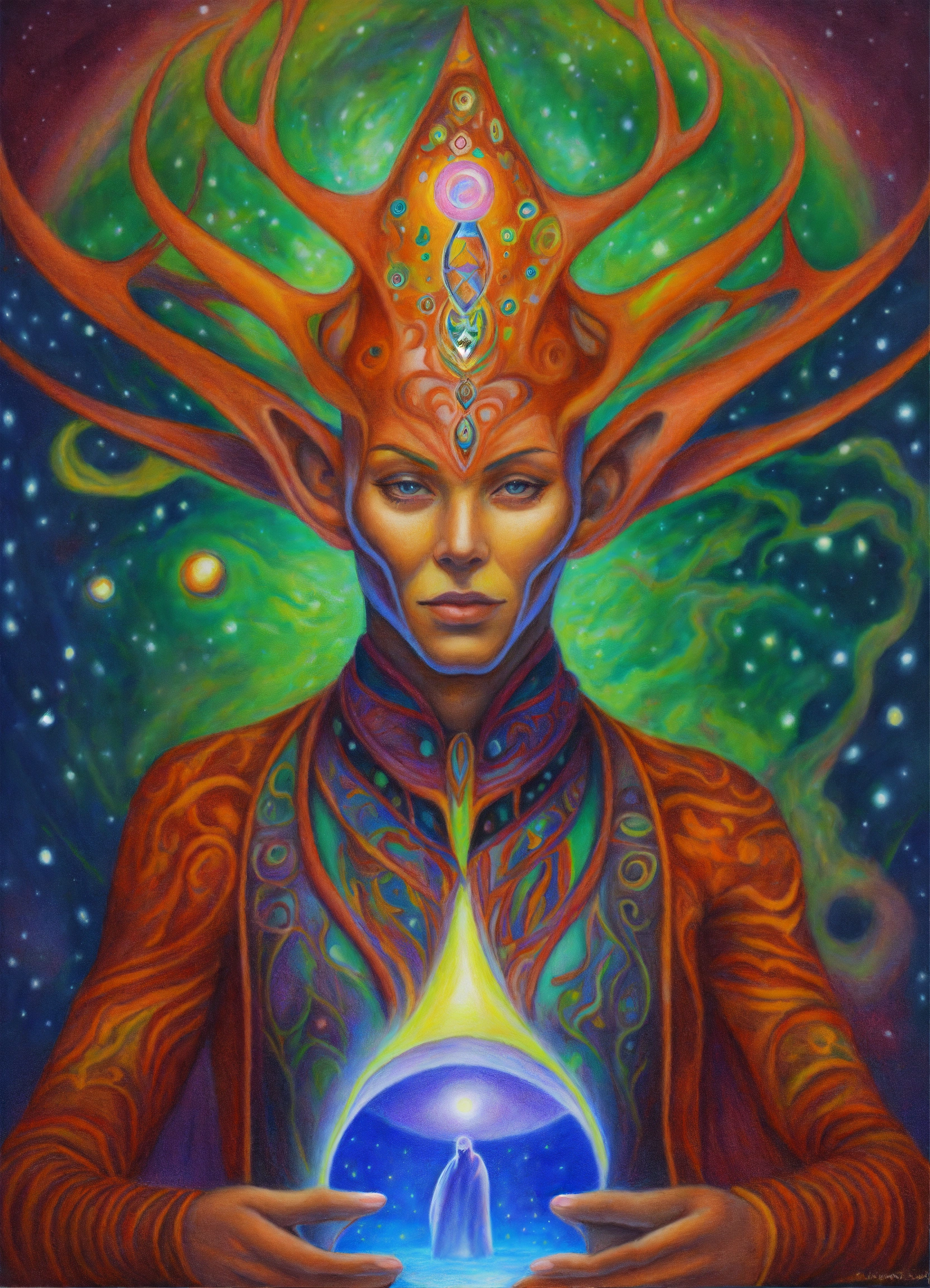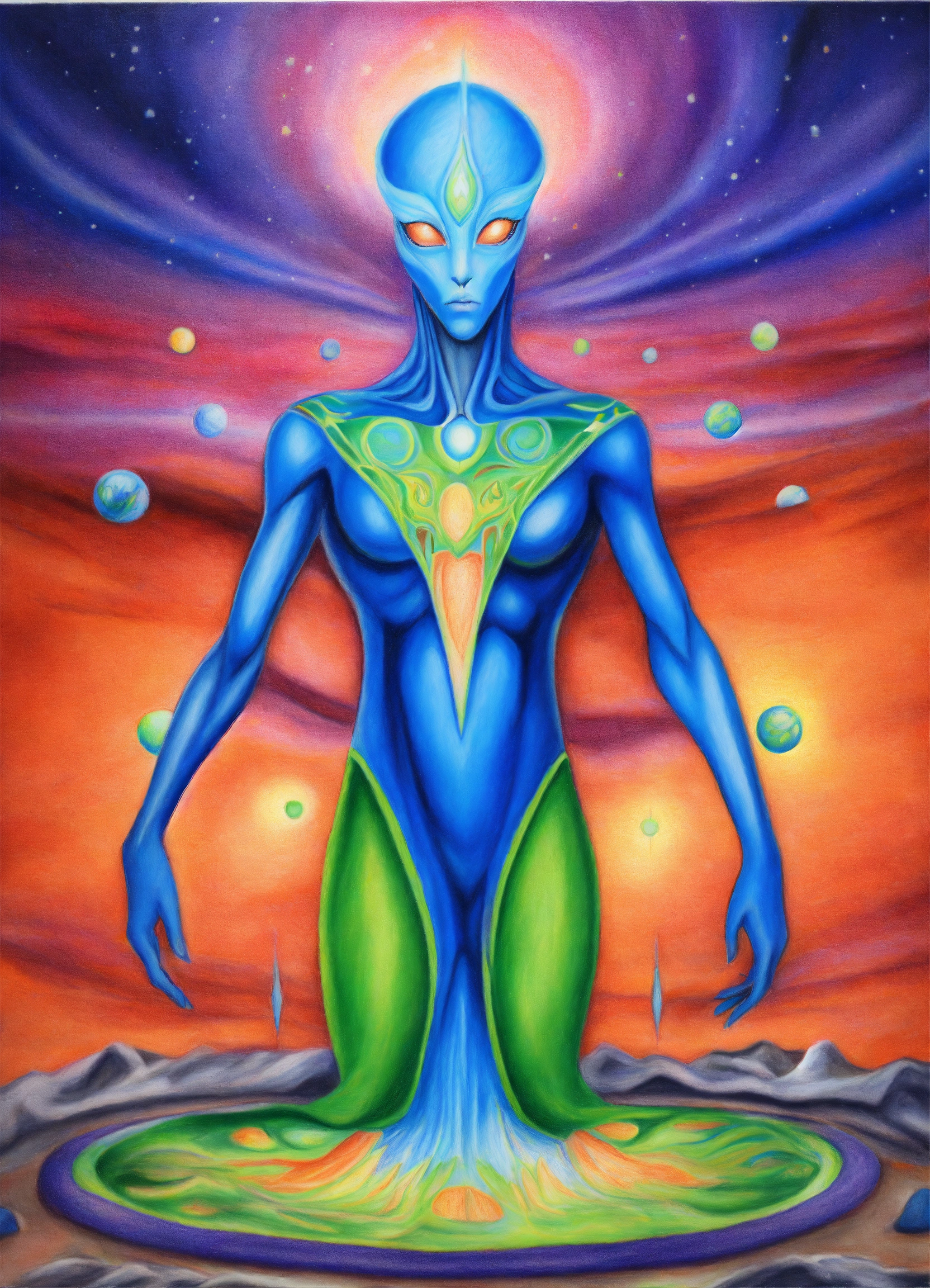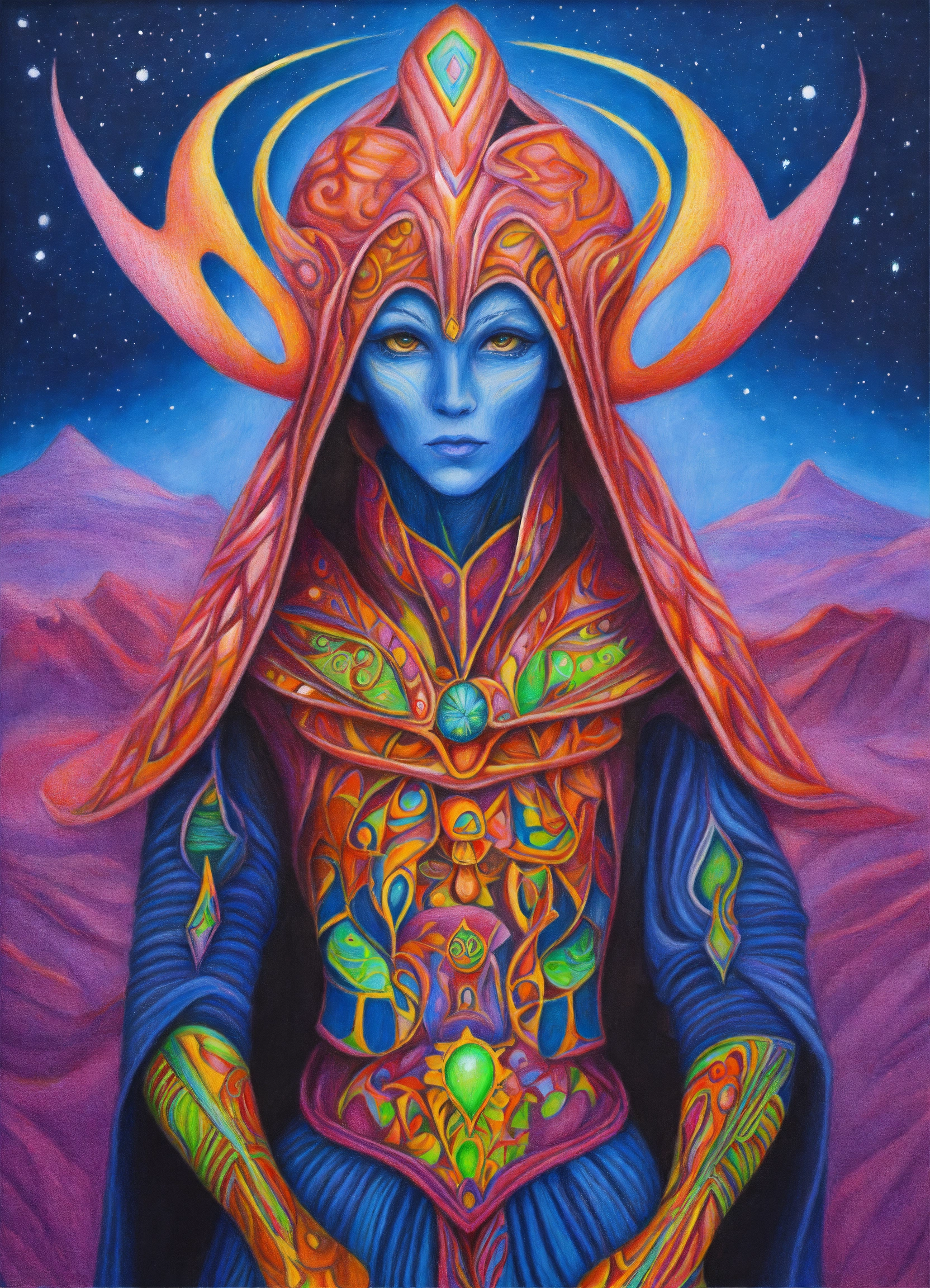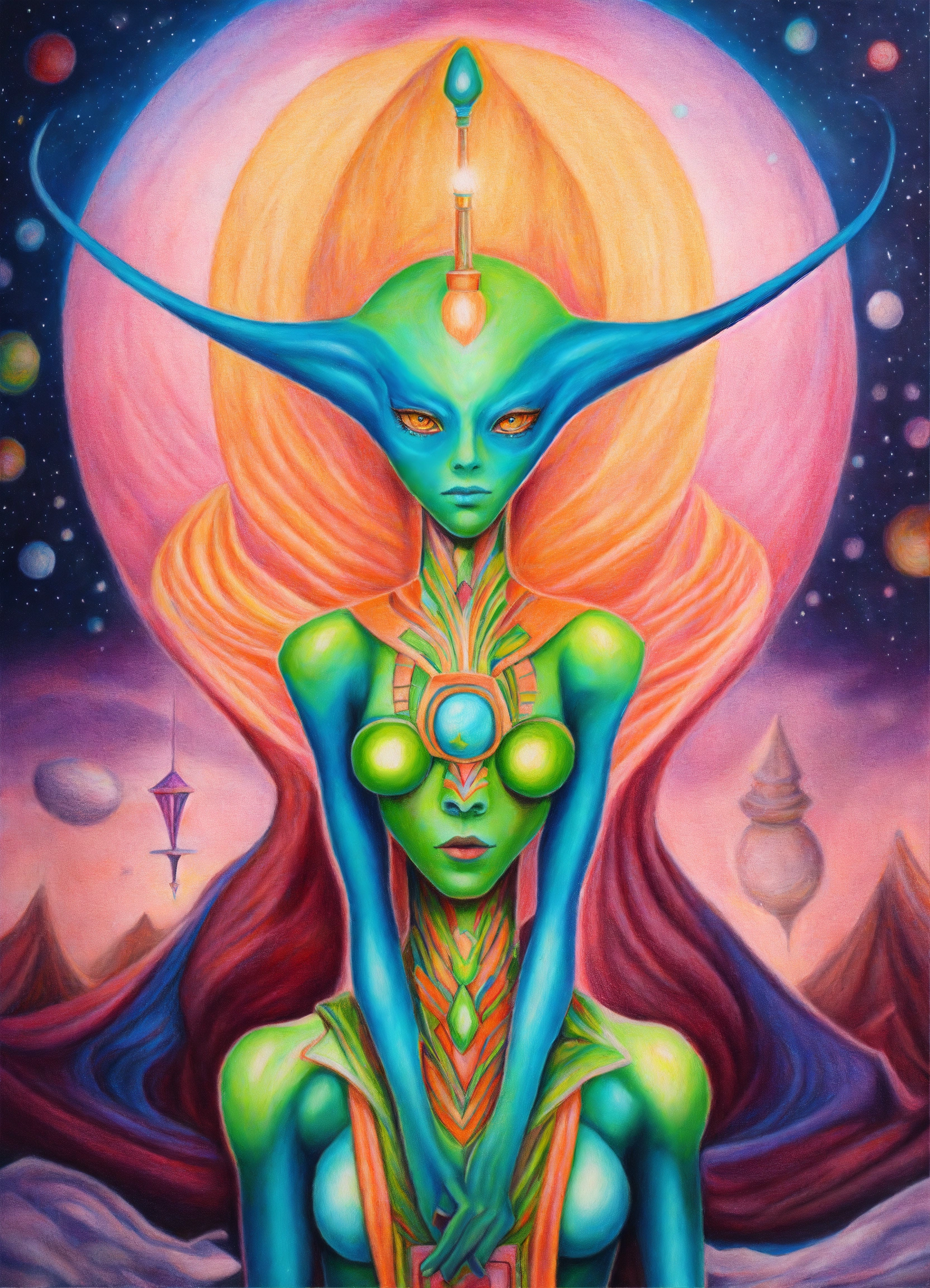 Colored pencil drawing painting arcturian alien magician