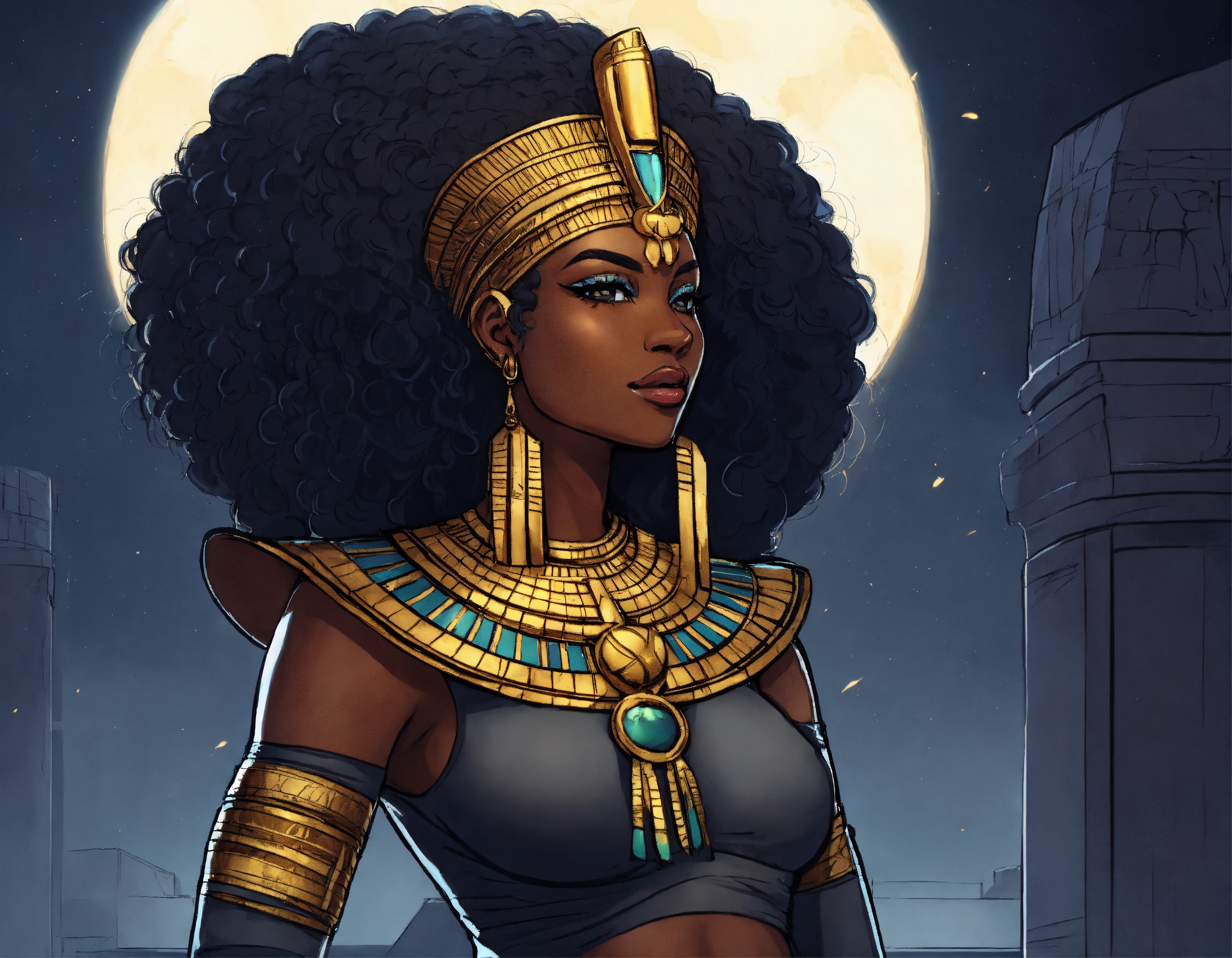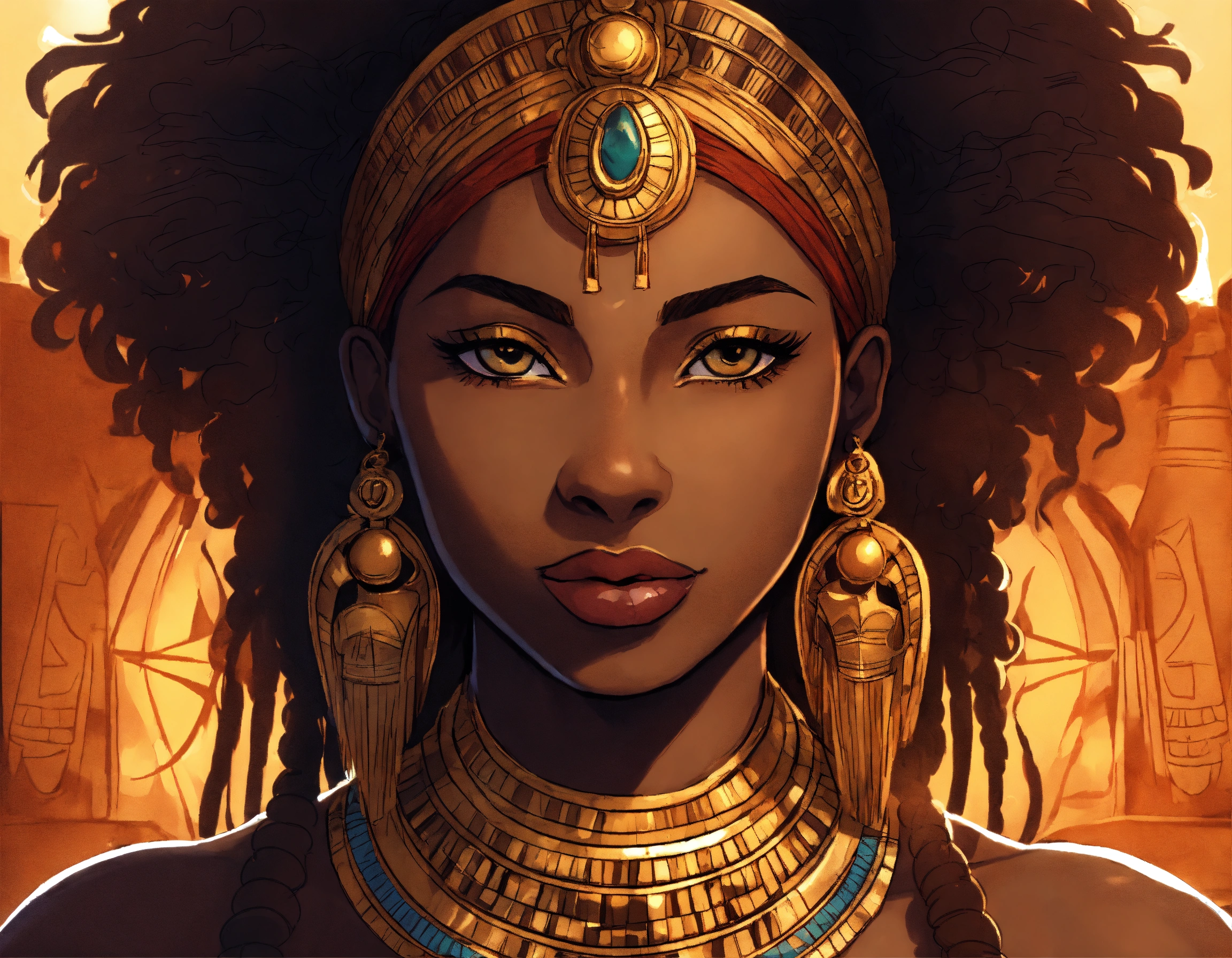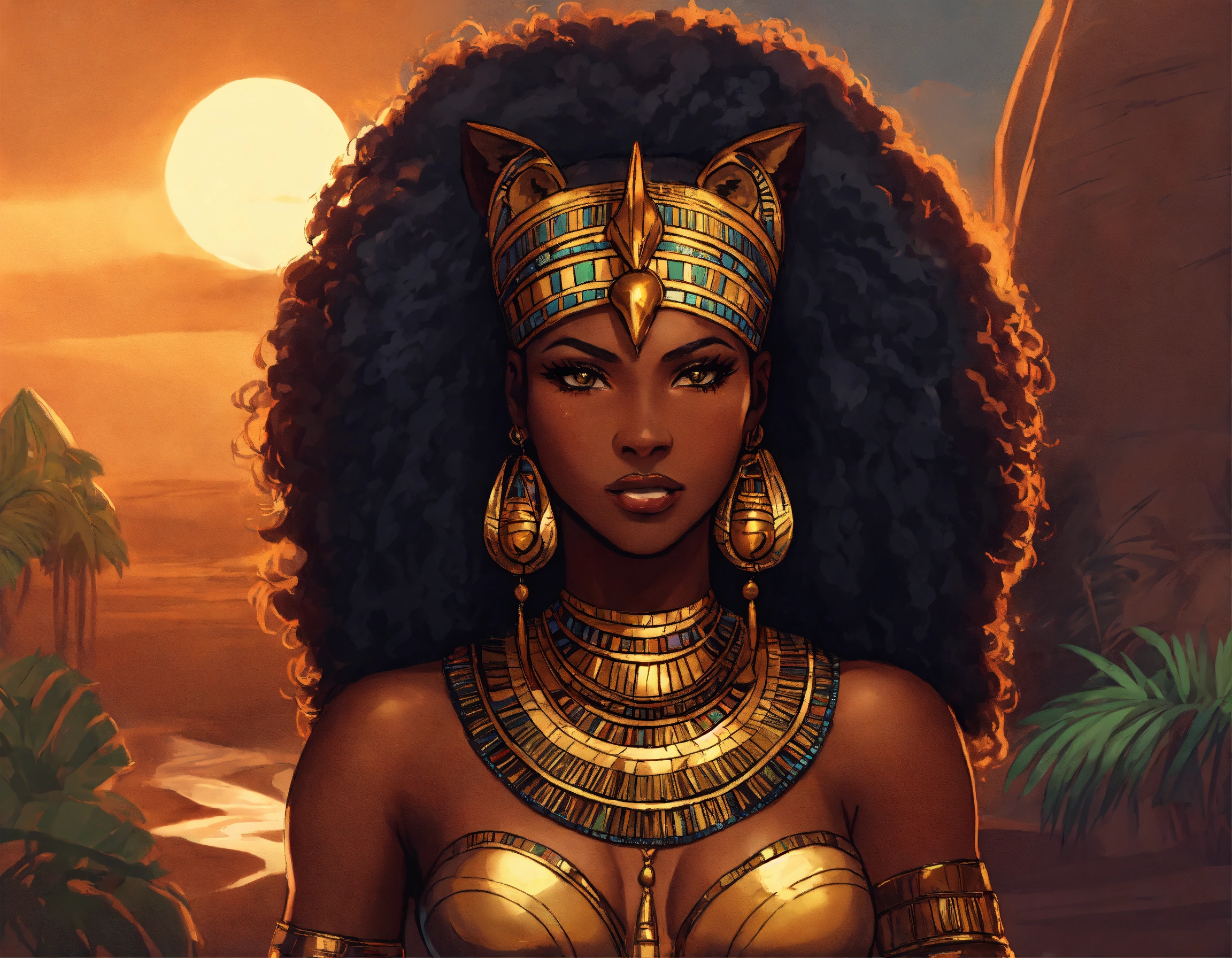 Draw a comic style black african egyptian goddess sekhmet lioness