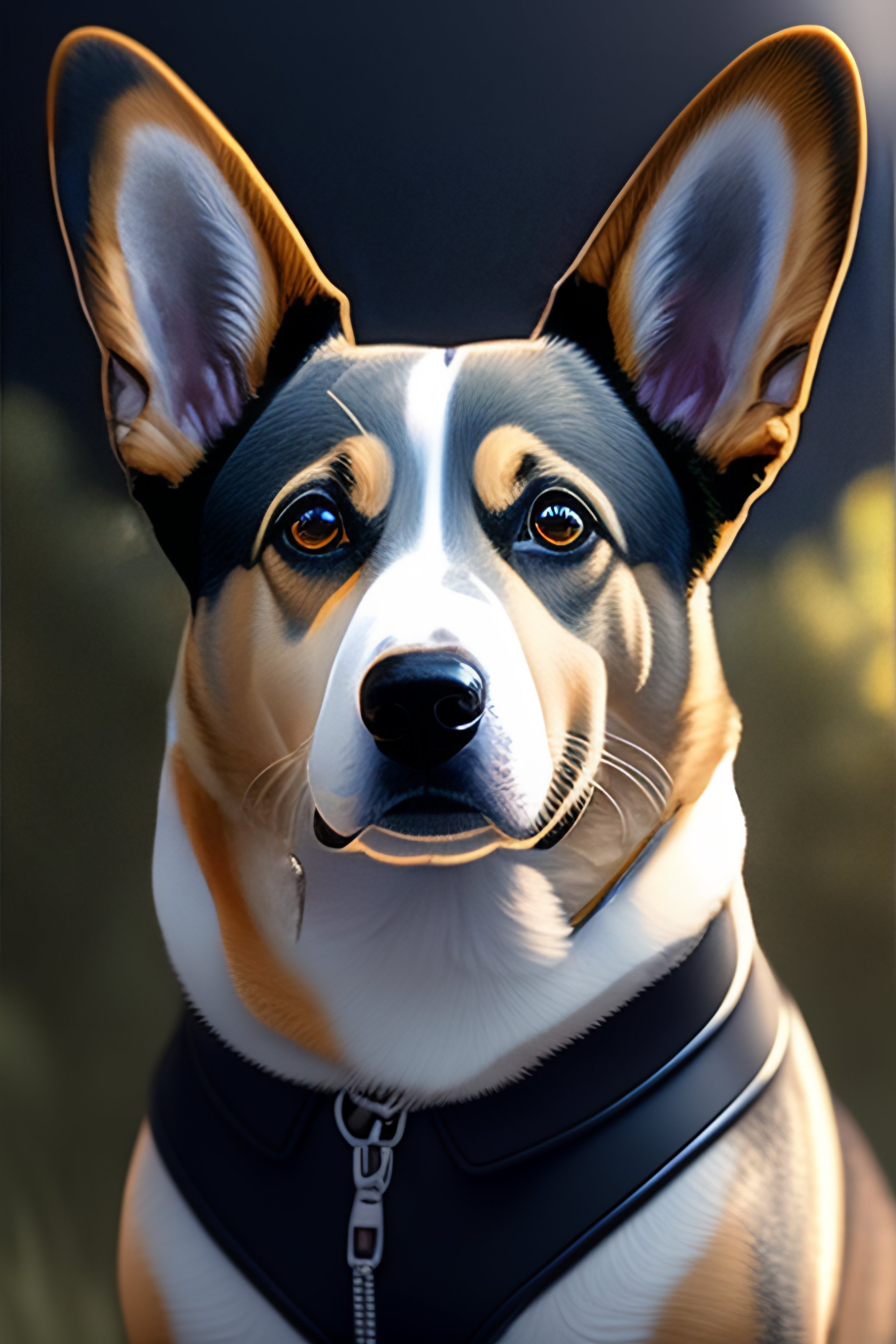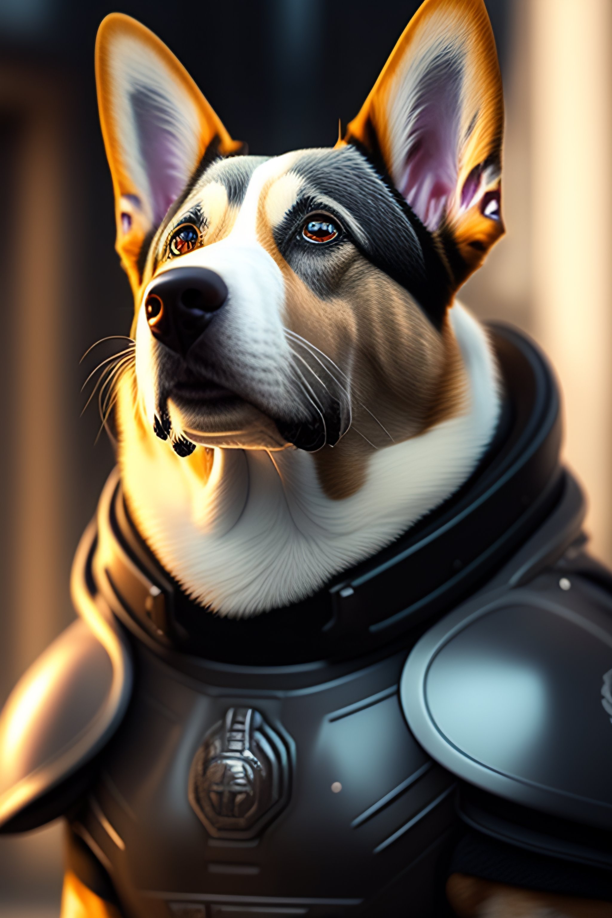 Portrait painting of a cybernetic grey dog corgi with power armor, ultra realistic, concept art, intricate details, eerie, highly detailed, photorealistic, octane render, 8 k, unreal engine. art by artgerm and greg rutkowski and alphonse mucha