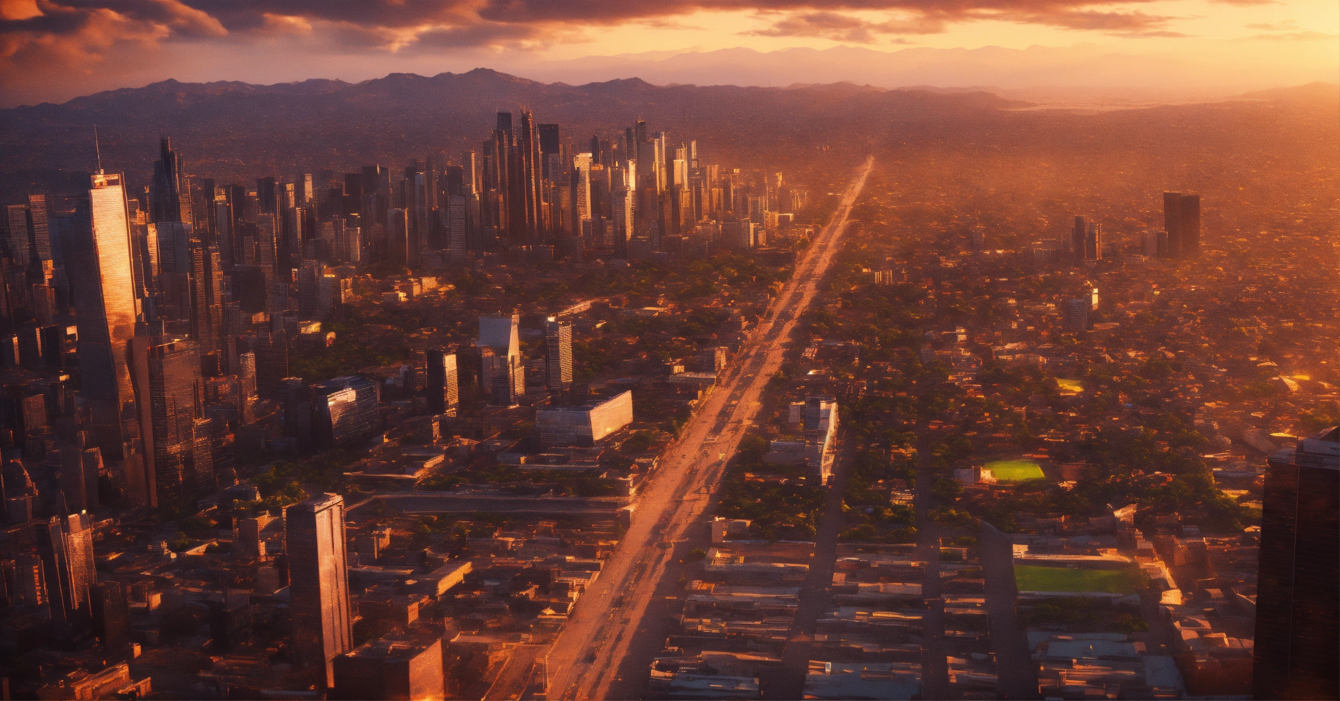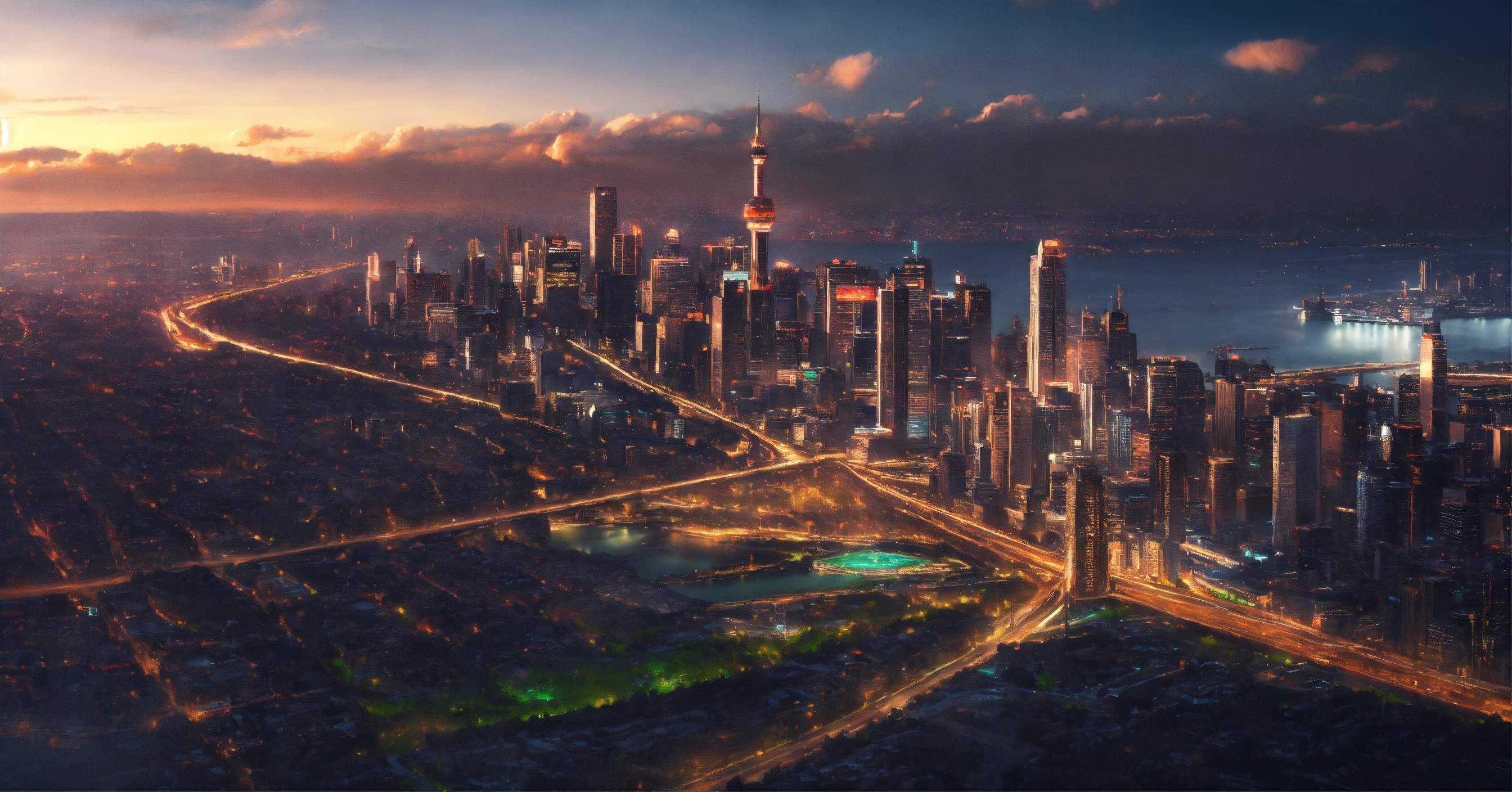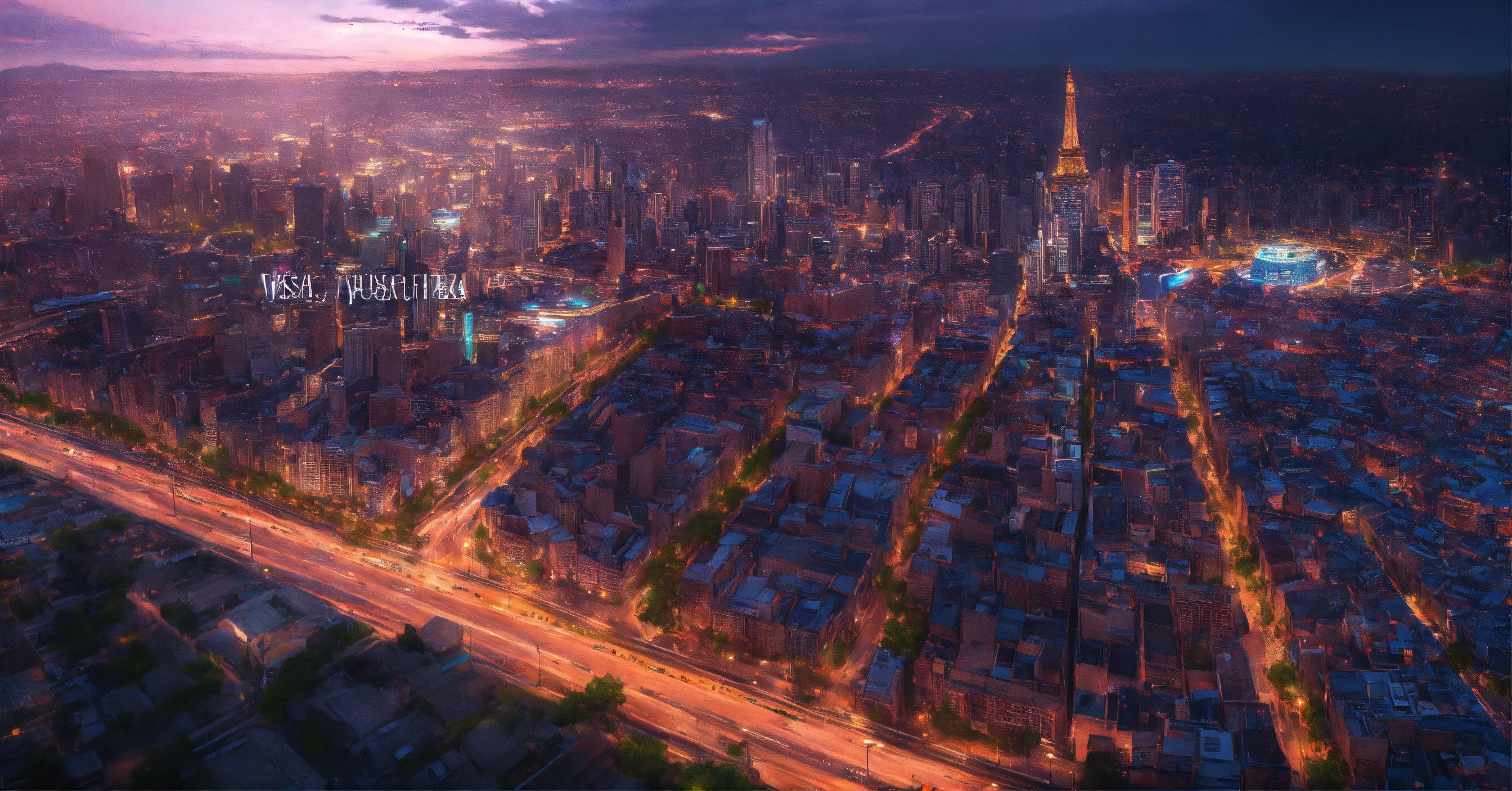 Prompt cinematográfico vista aerea ciudad furturista