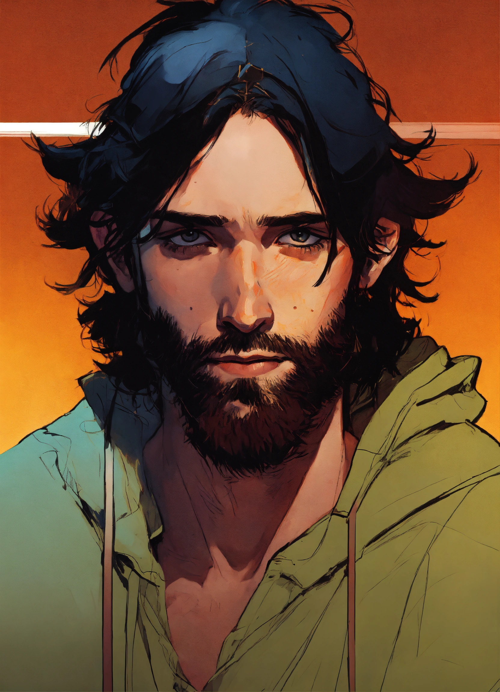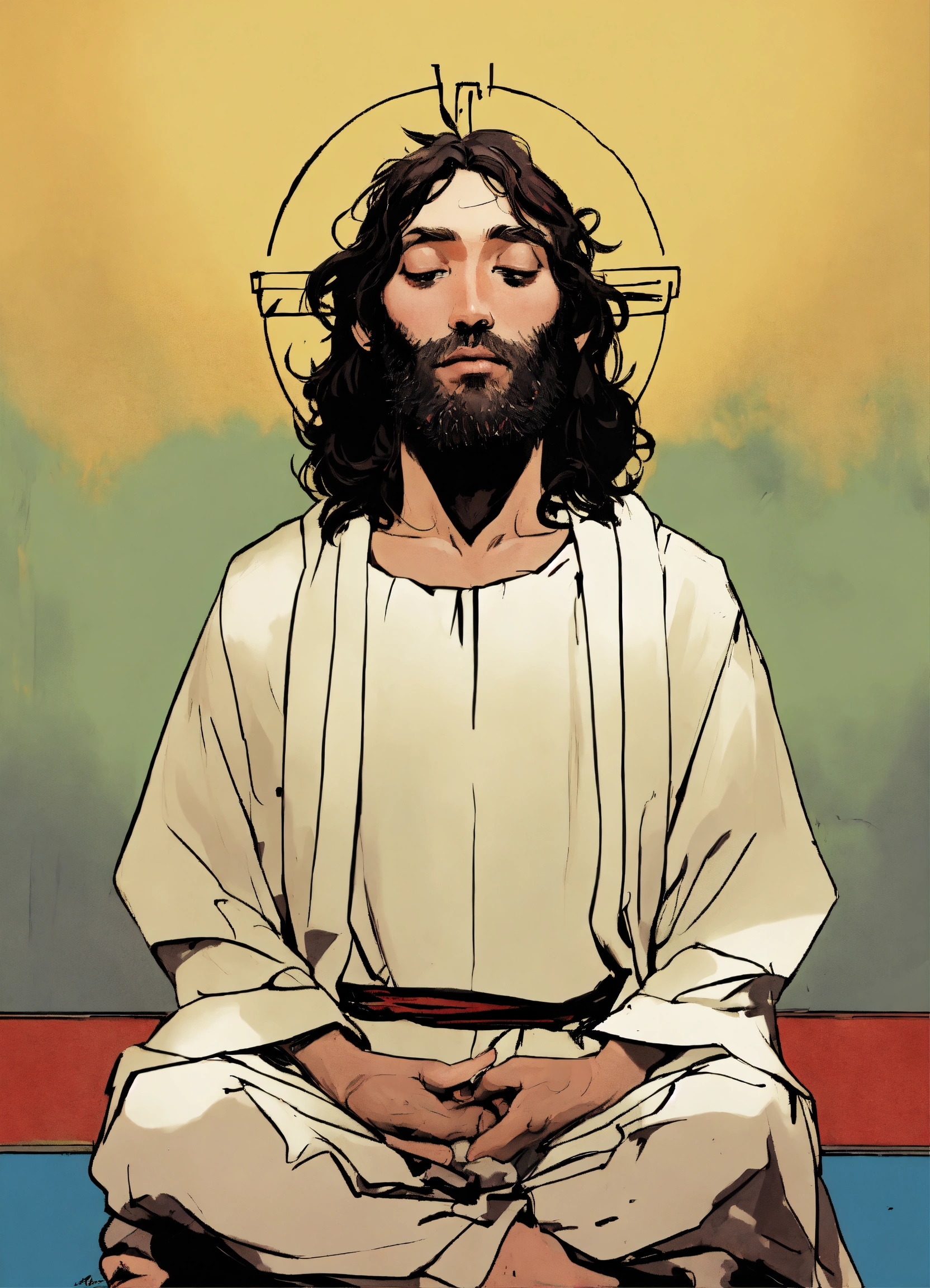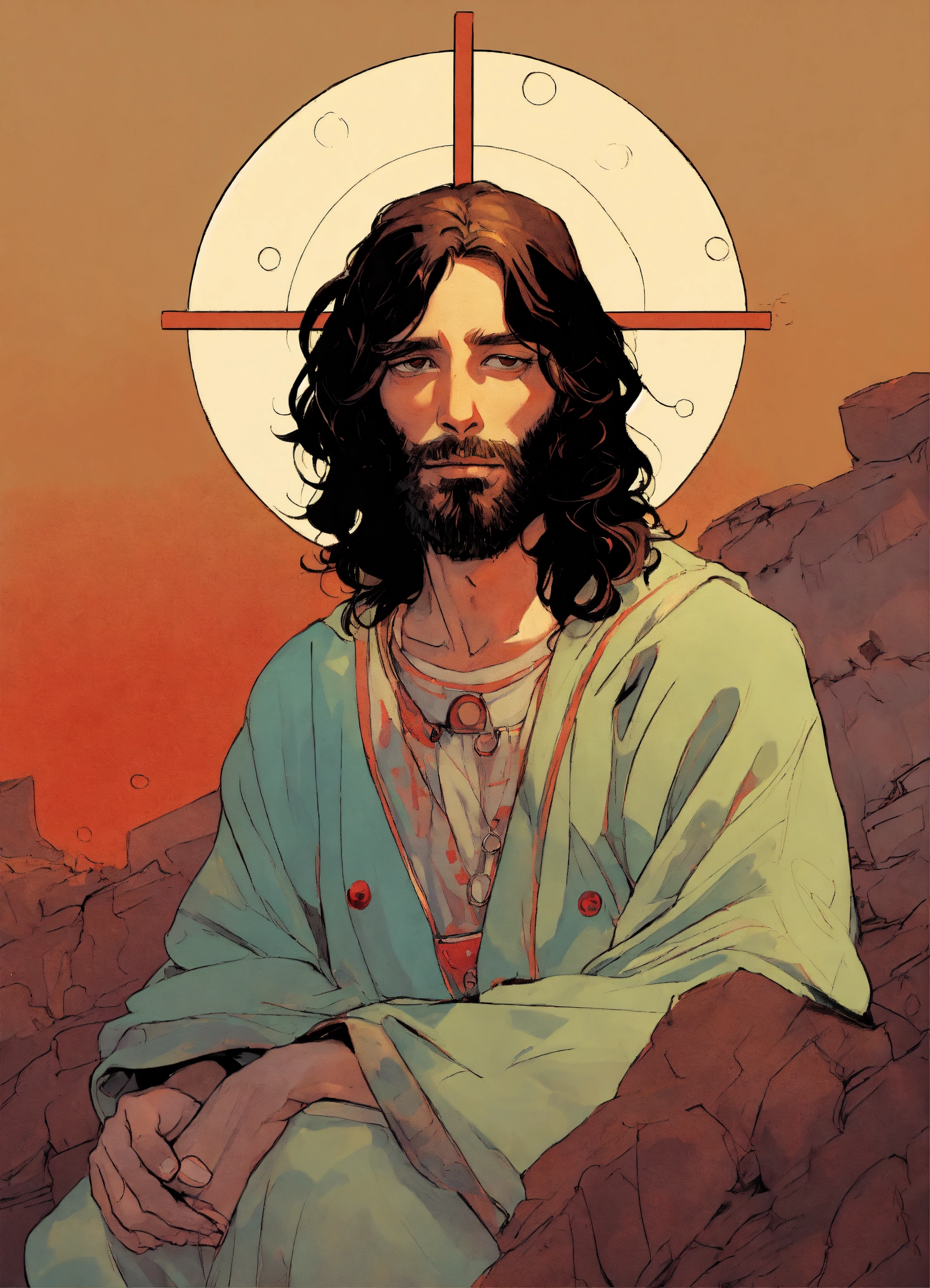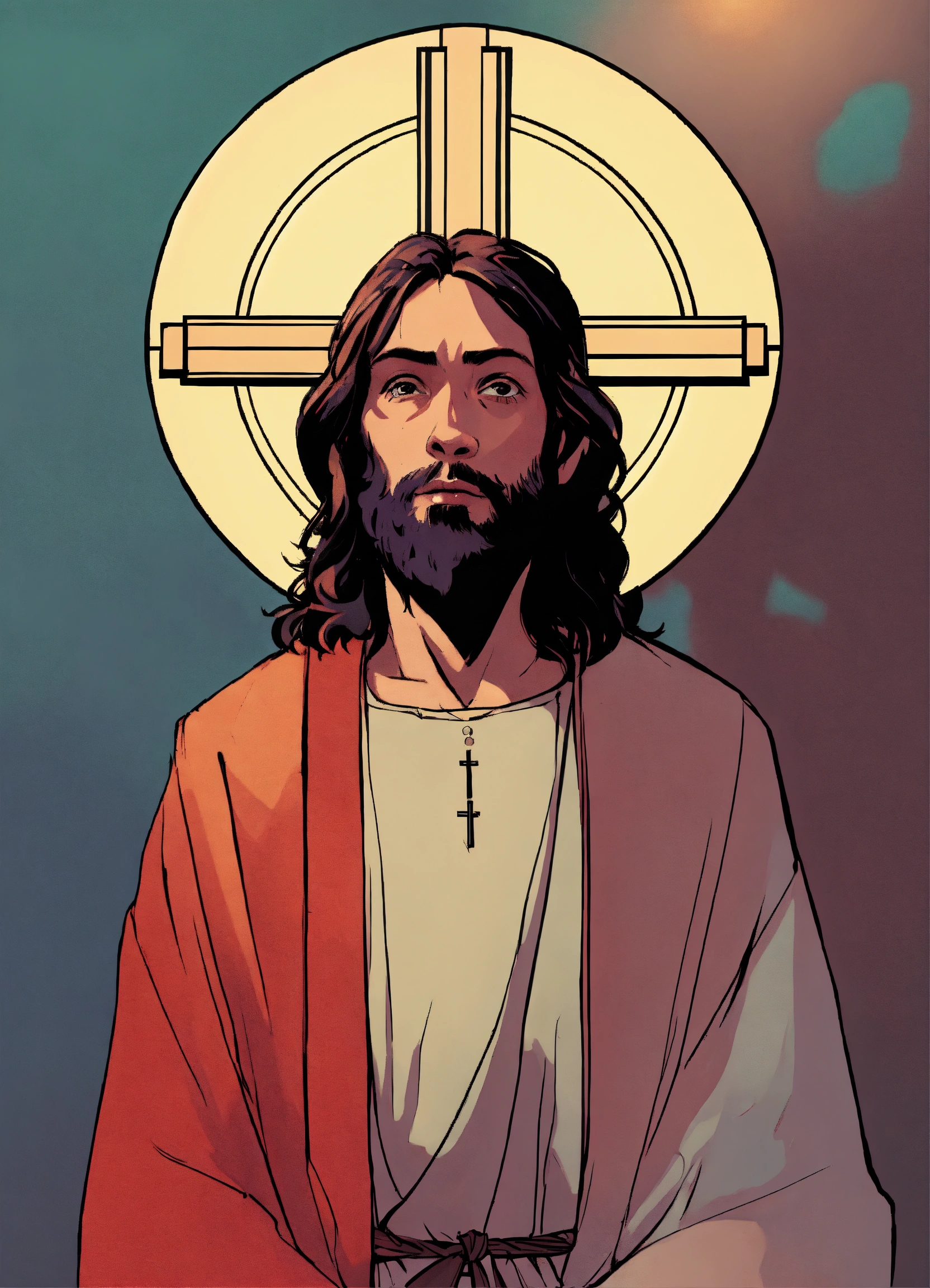 Jonathan roumie jesus by jamie hewlett, manga style, concept art by jamie hewlett, jamie hewl, ape nft style, simple, minimalistic