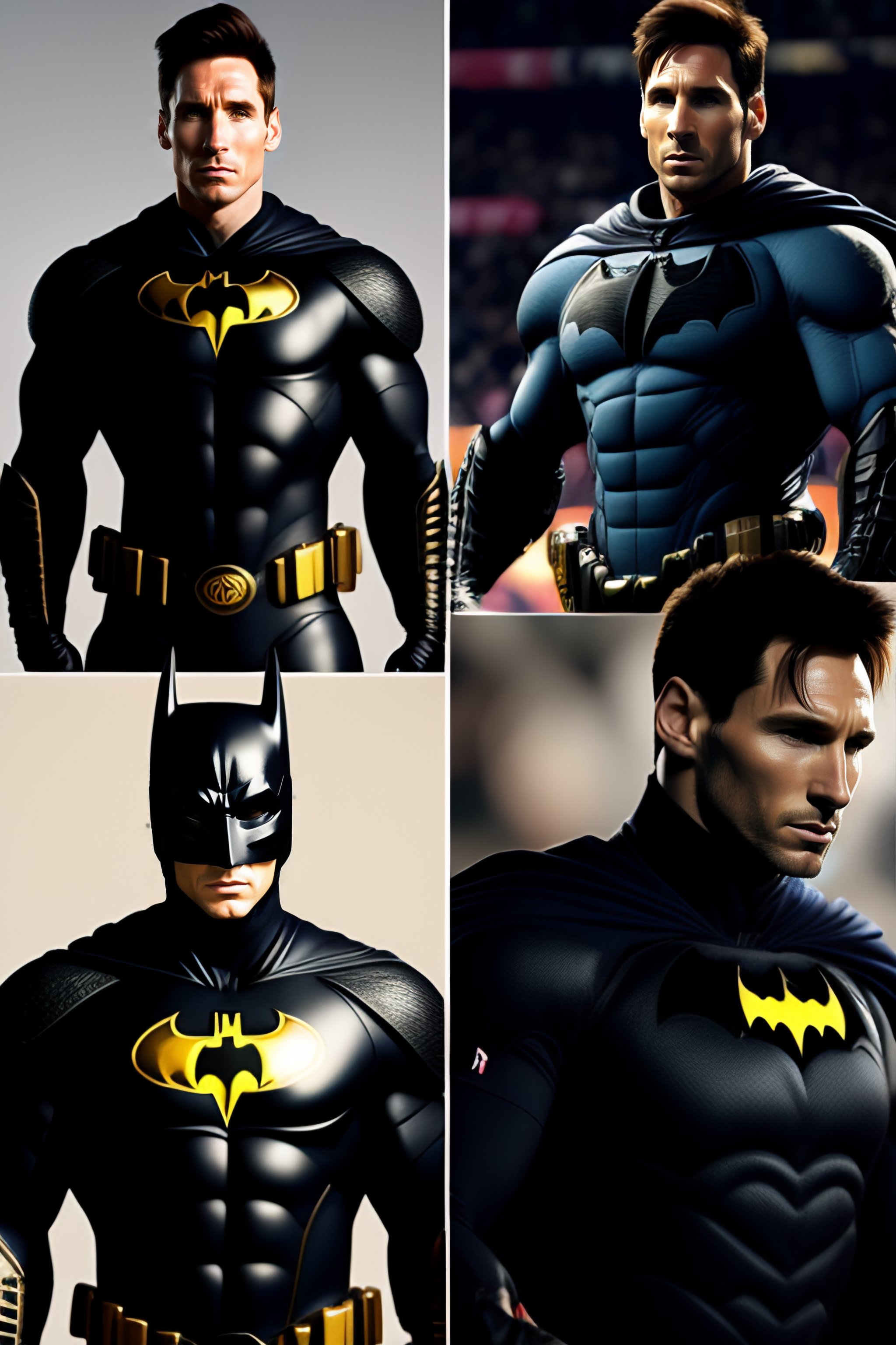 Lionel messi as bruce wayne with batsuit in batman movie