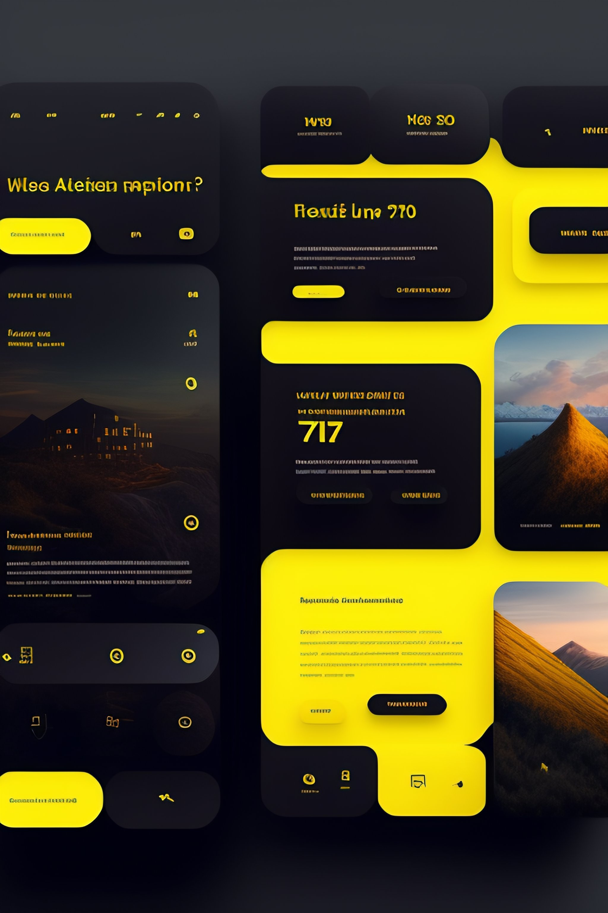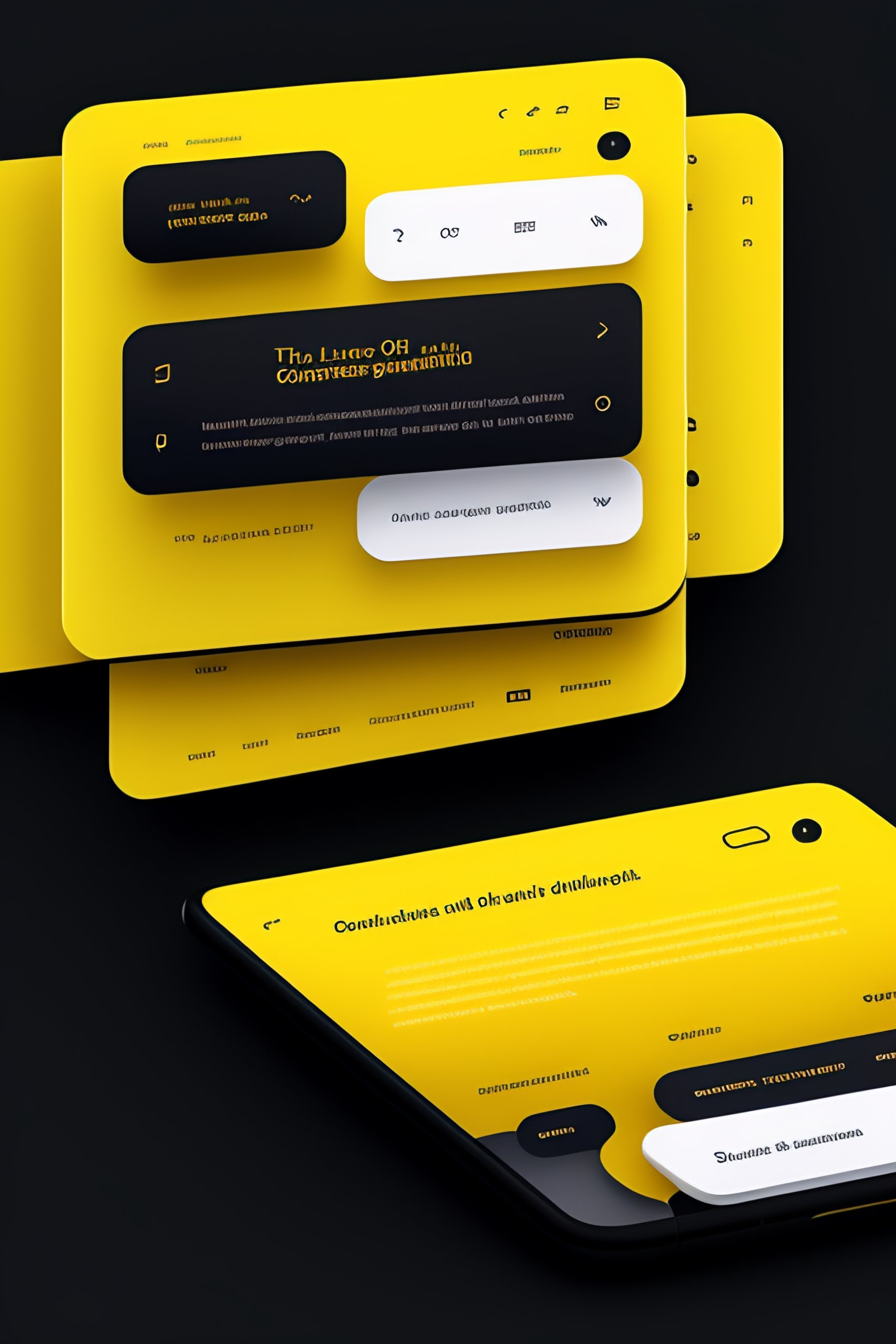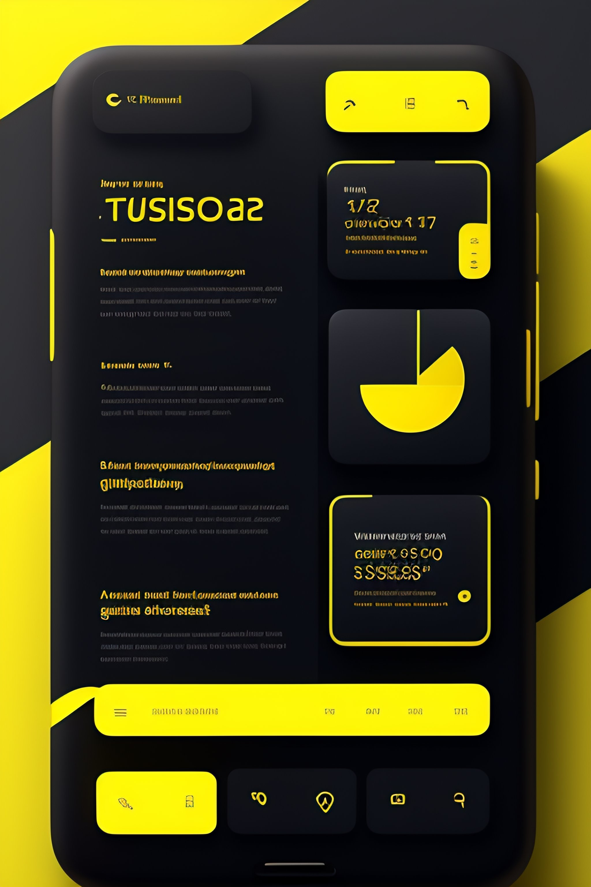 News ui design, ux research, mobile ui ux, wireframe background black, yellow accent, sfpro bold --stylish 700