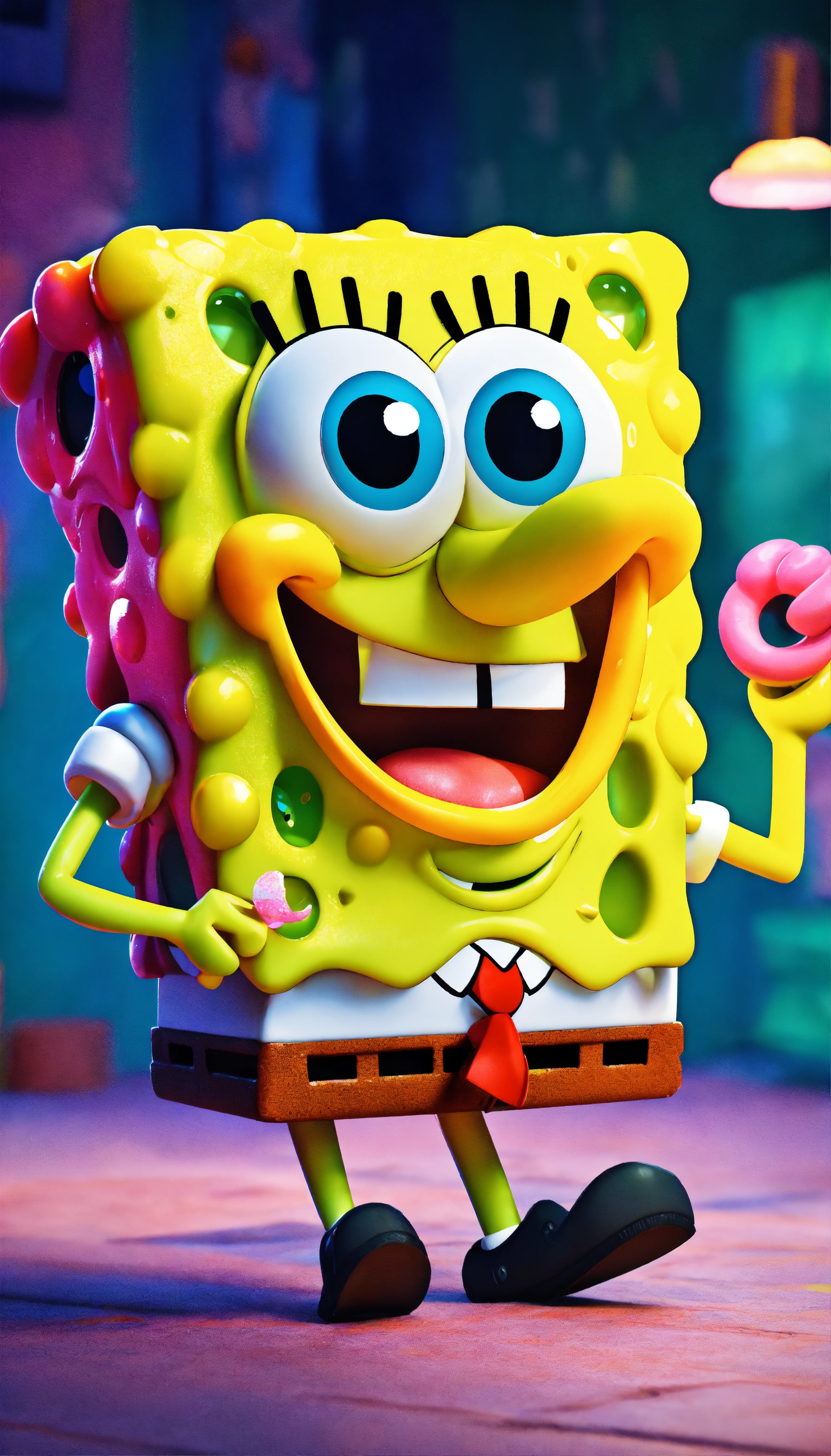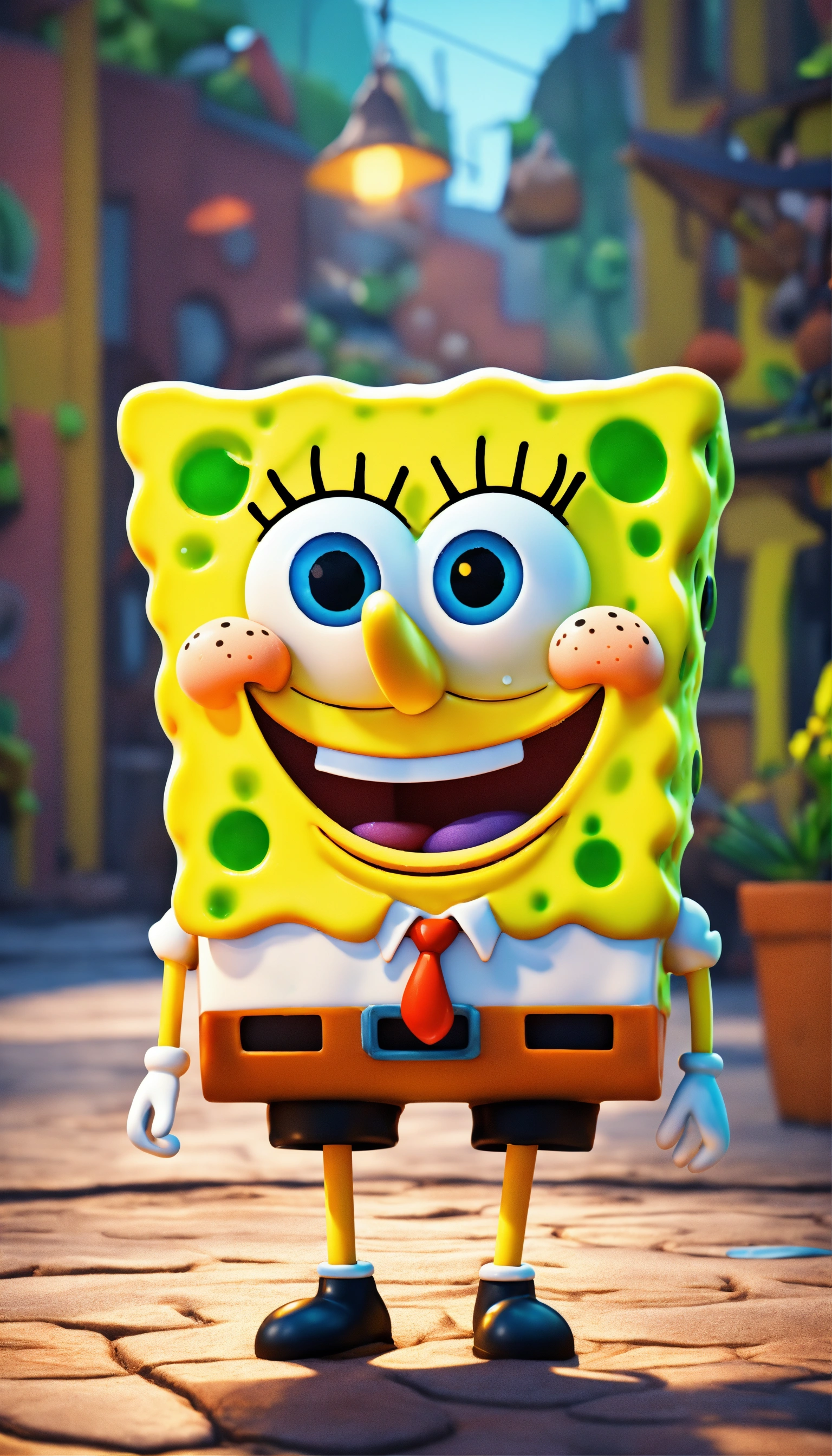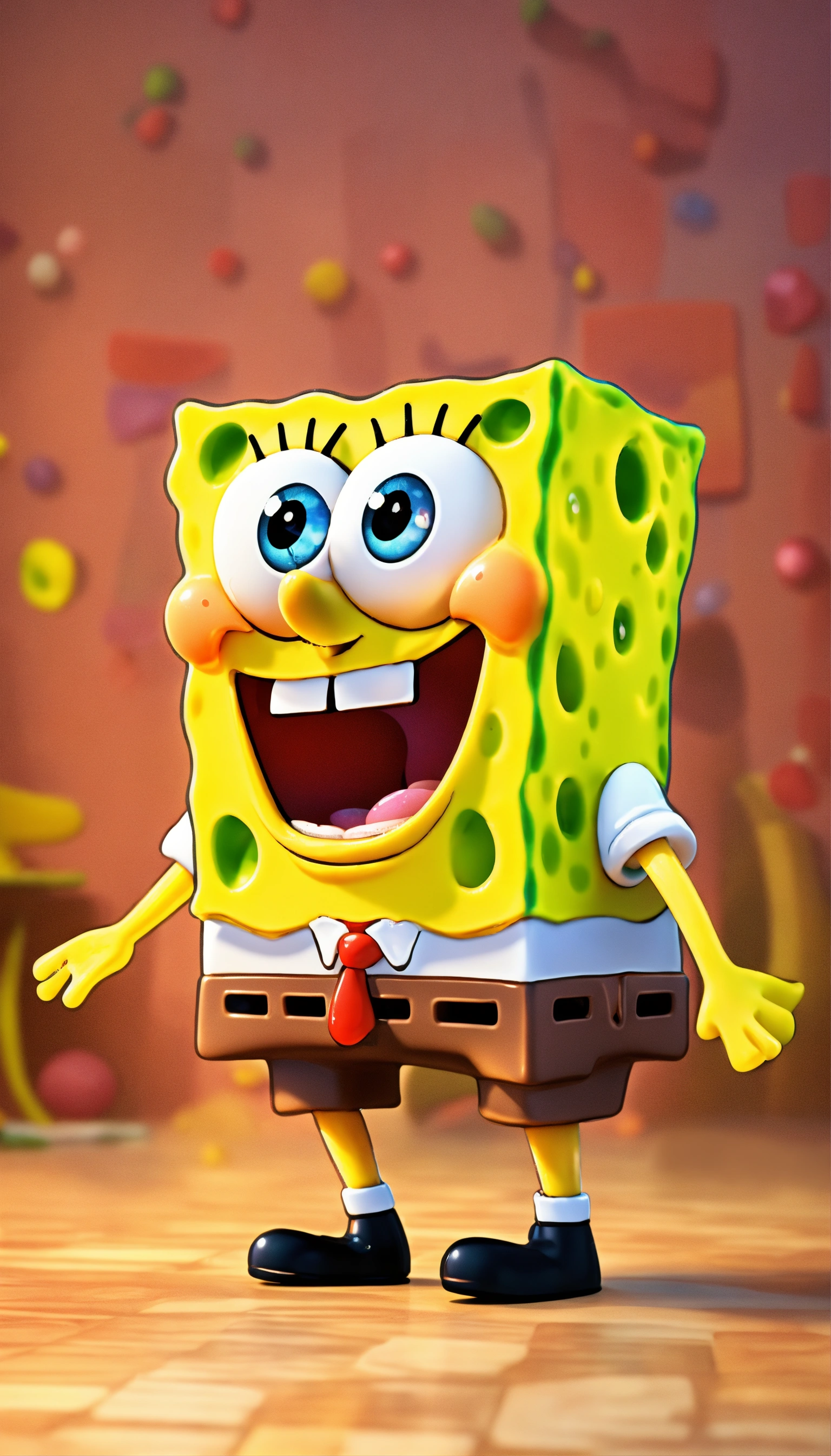 Spongebob, full body image of cute, realistic, vivid colors octane render trending on artstation, united colour background wall, beautiful, attractive, 3 d rendering, pixar cute, andrew dickson, detailed, realistic, 3d, cartoon style, well shaded, smooth, pixar, 8k, high quality