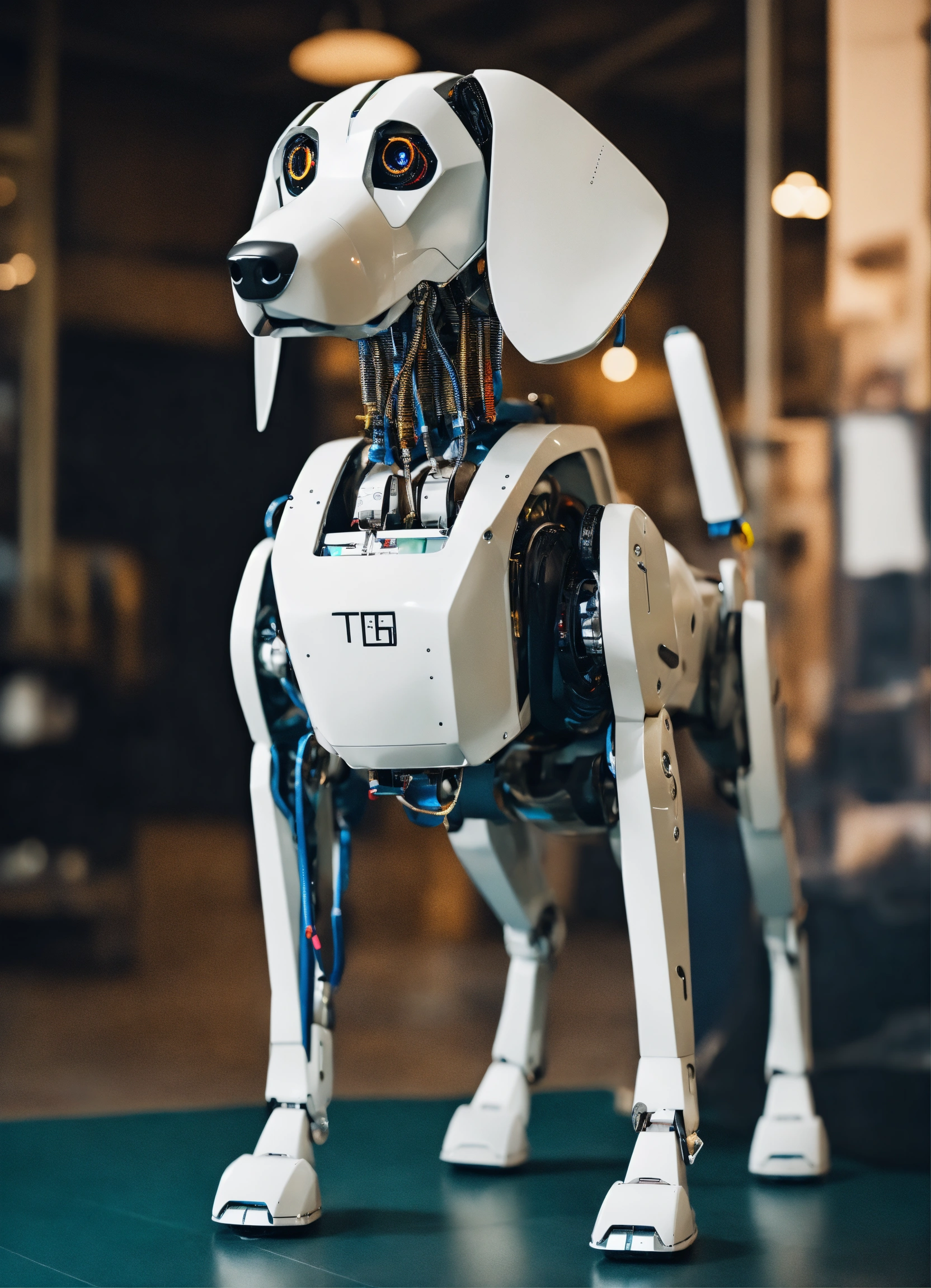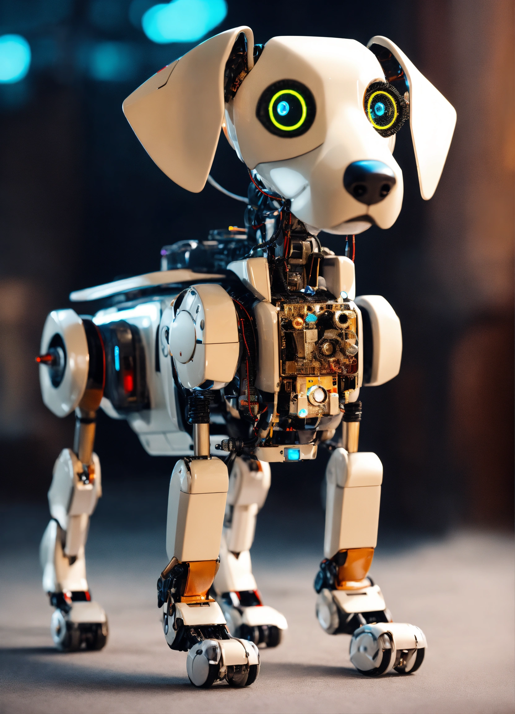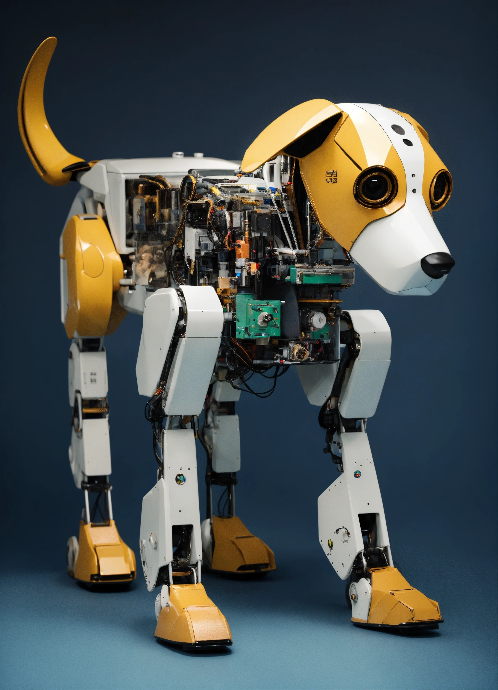 A collage realistic robot dog with long floppy ears