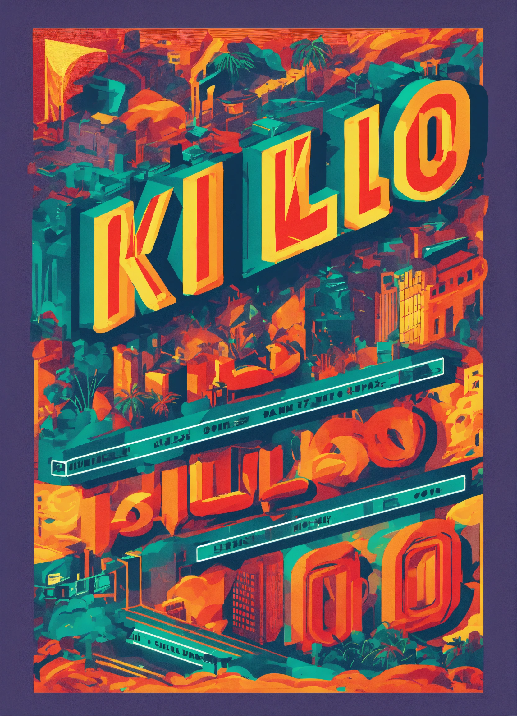 The word kilo in a bold and angular typography style