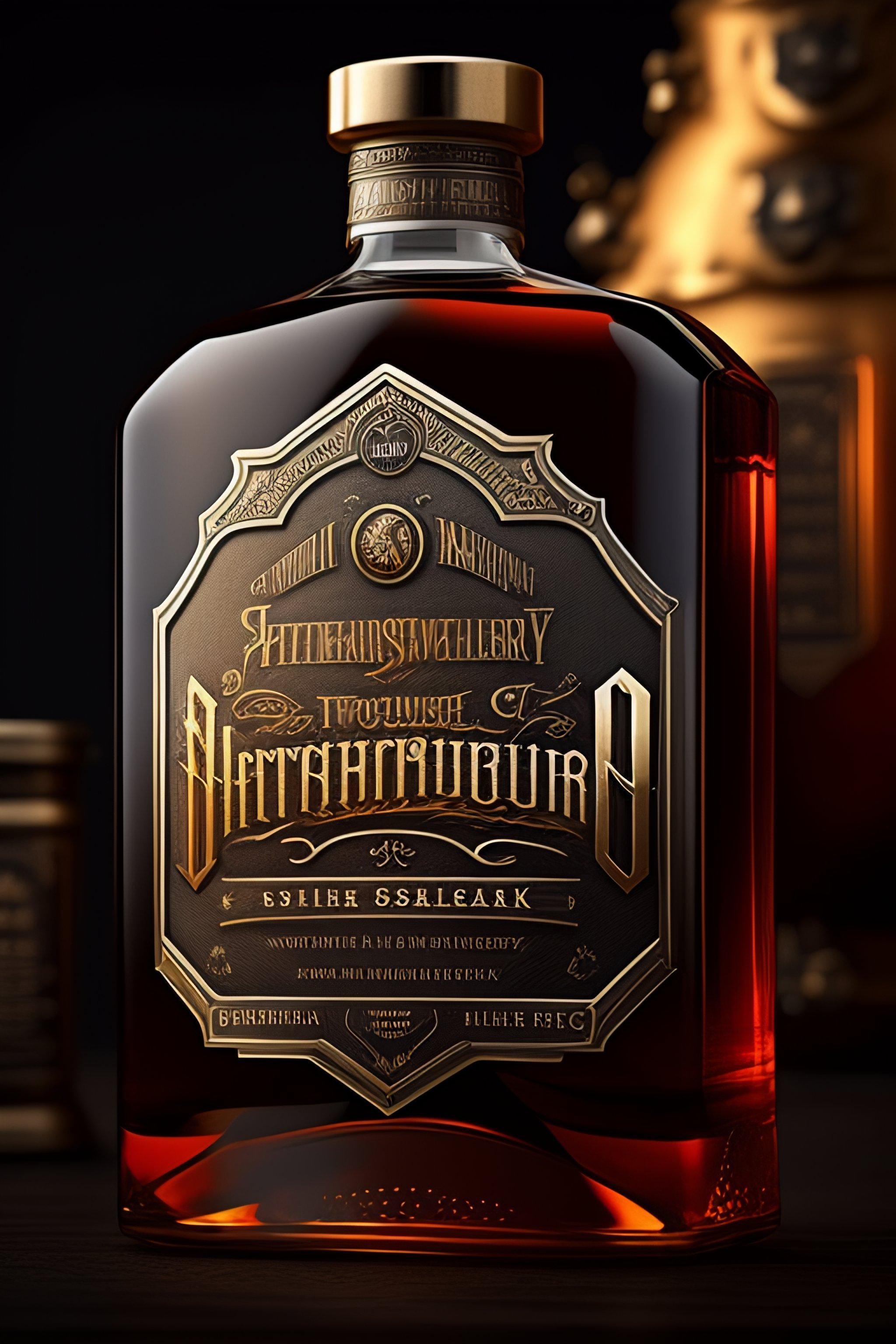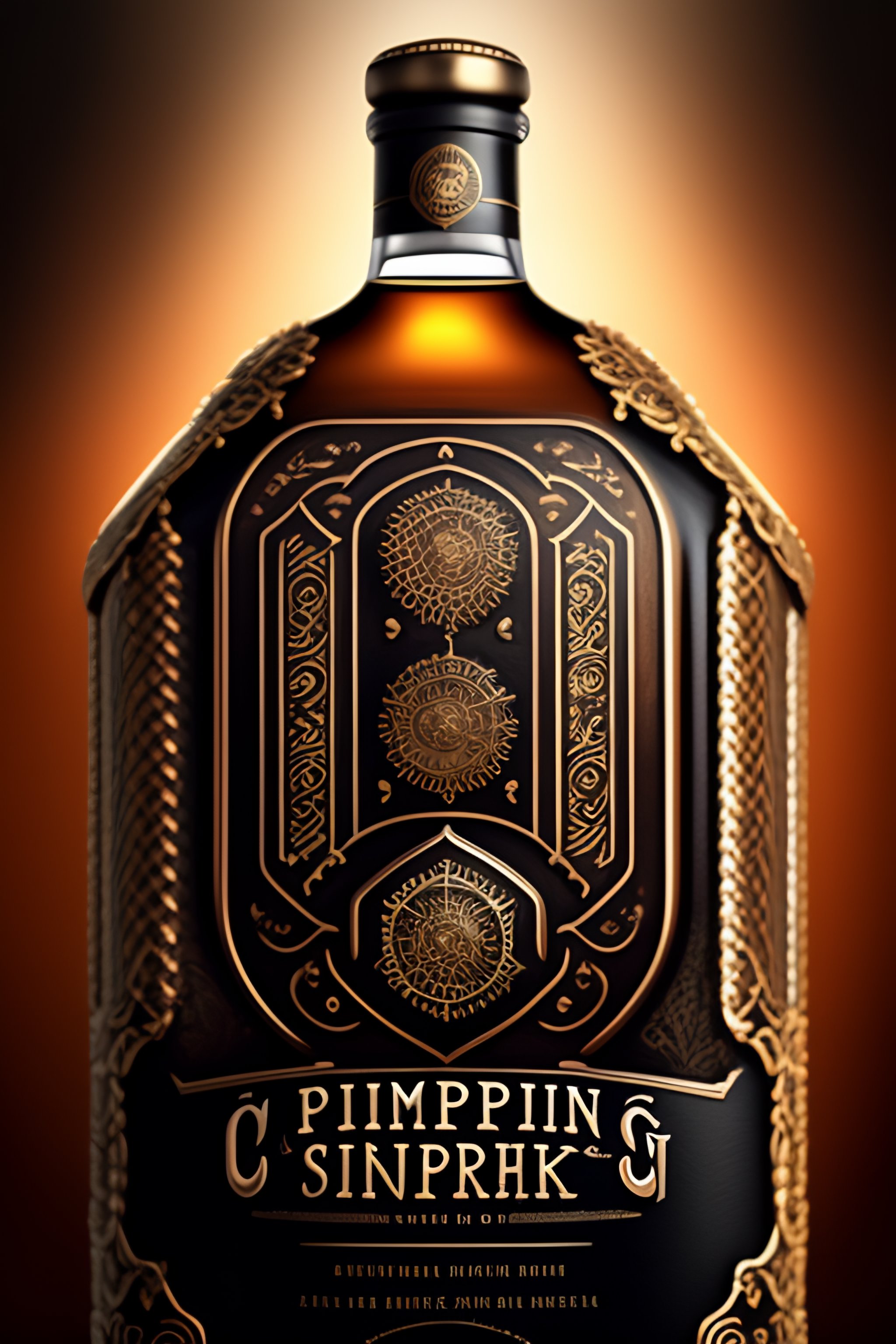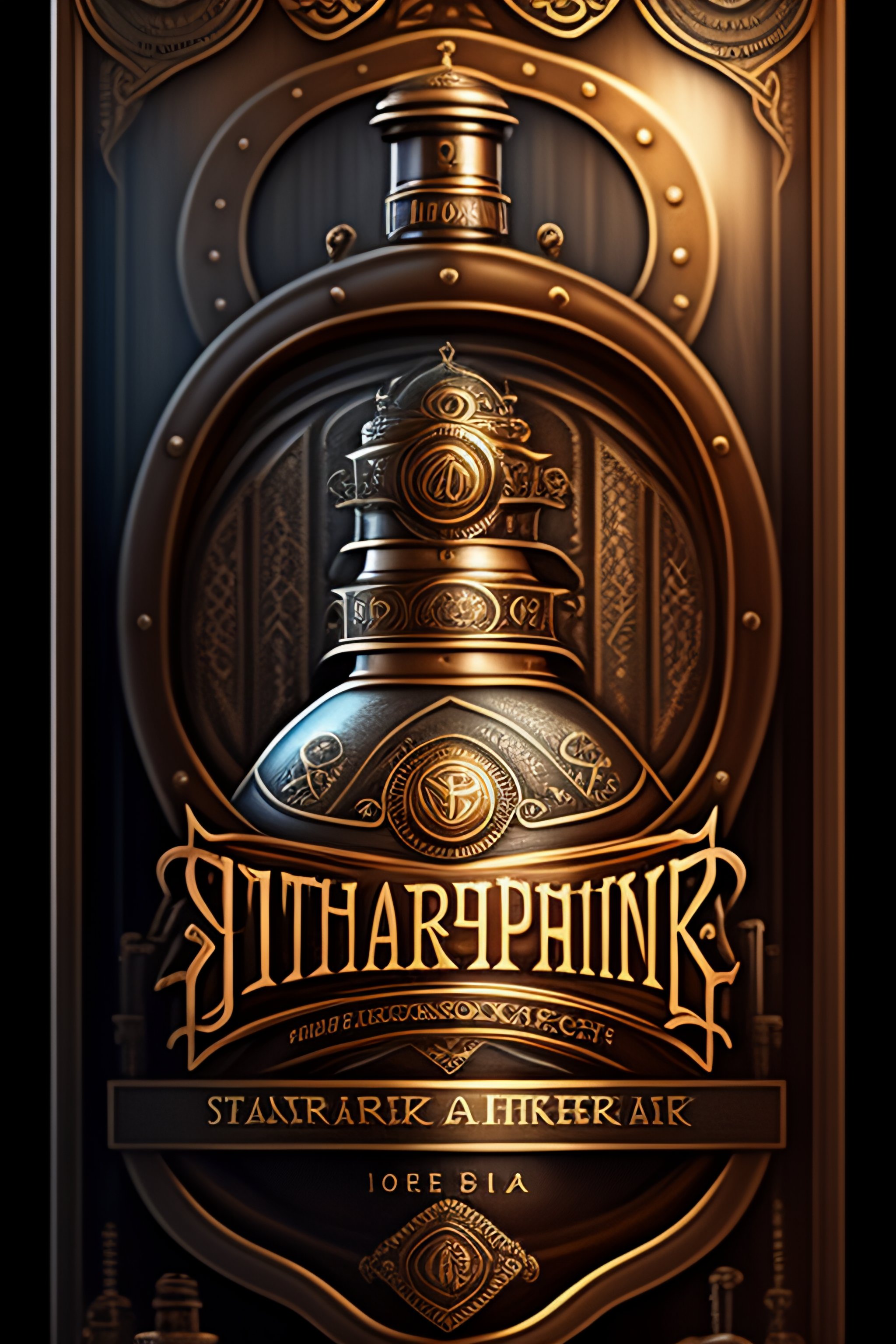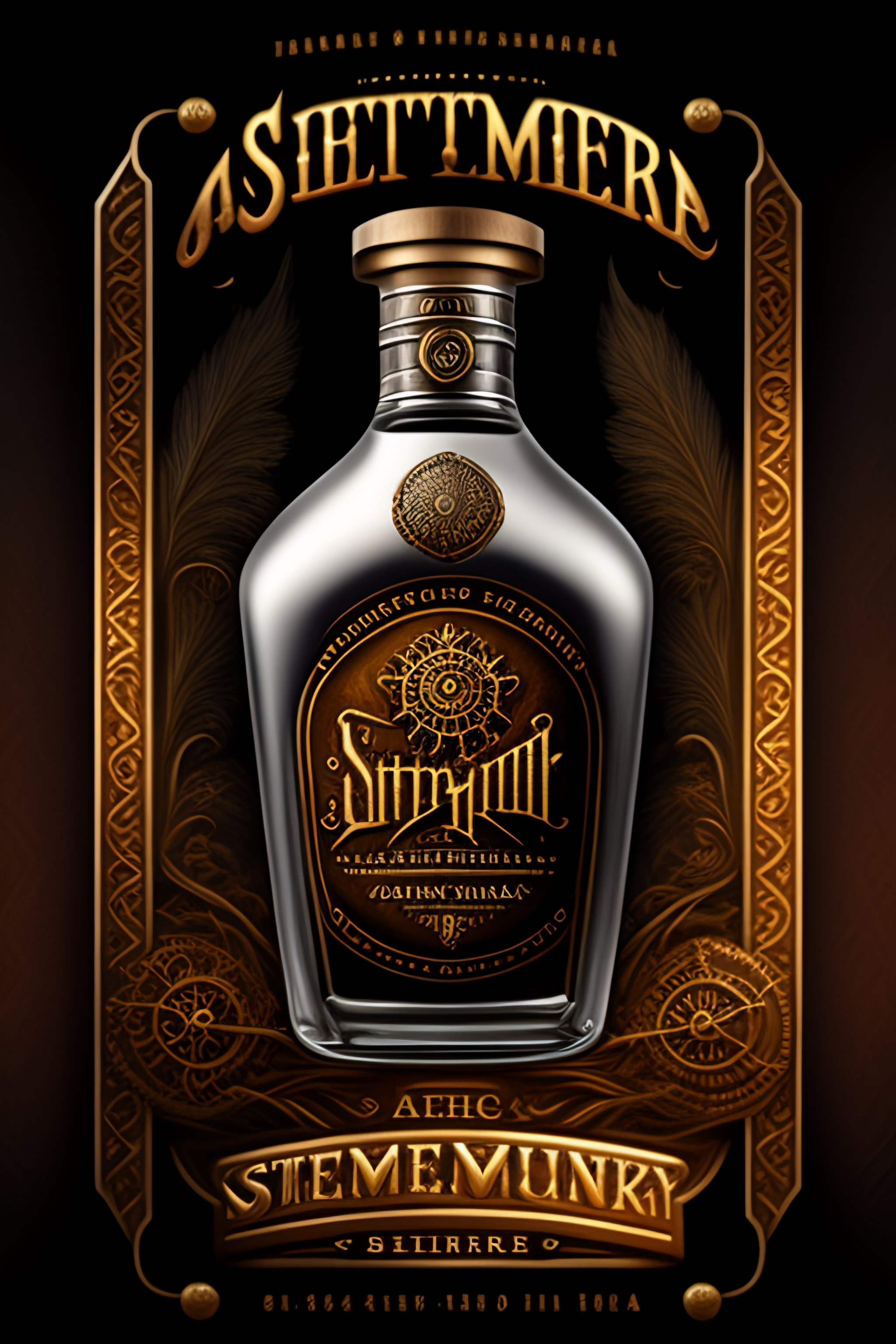 Steampunk-style silver gears bourbon whiskey label design