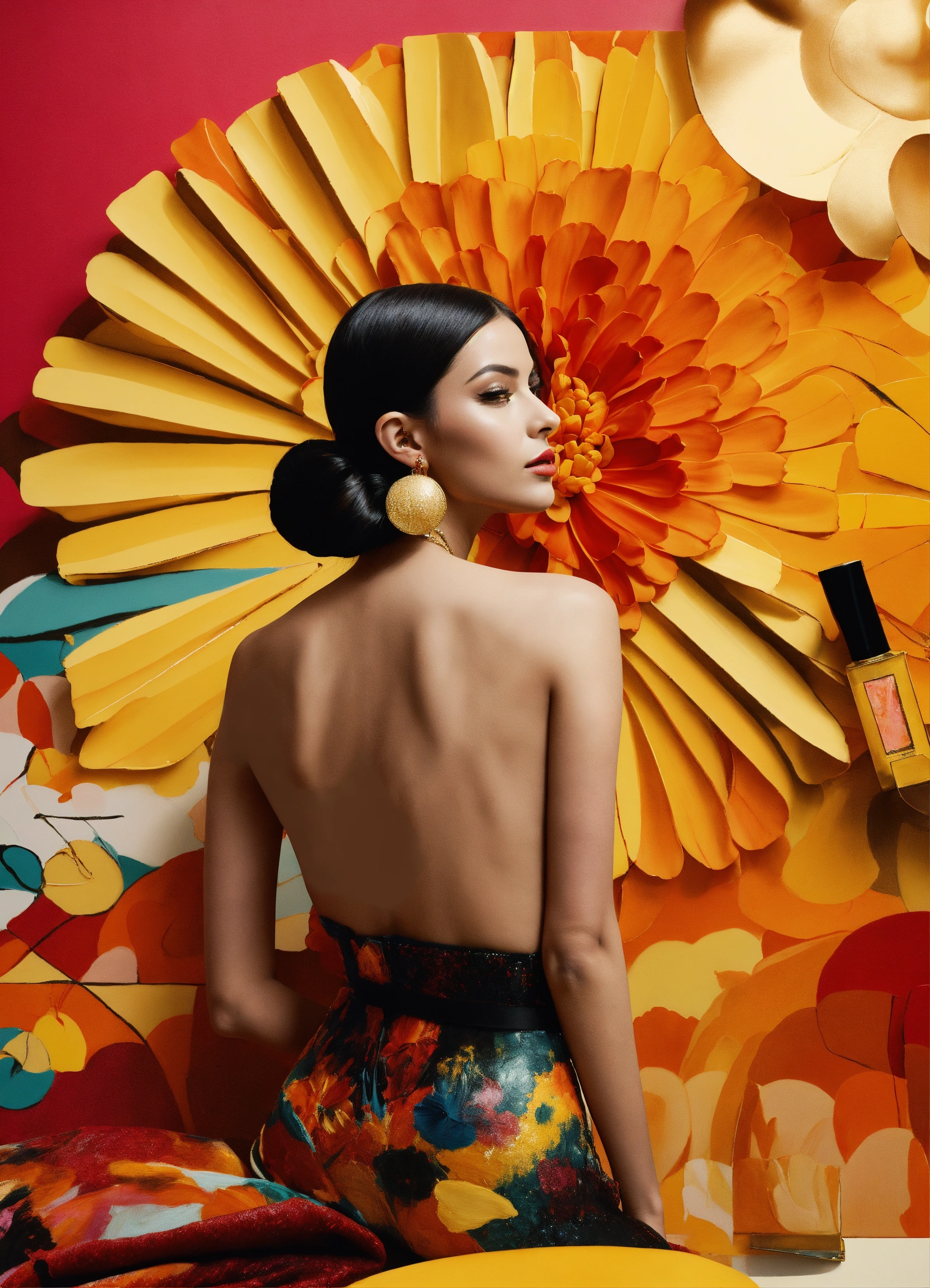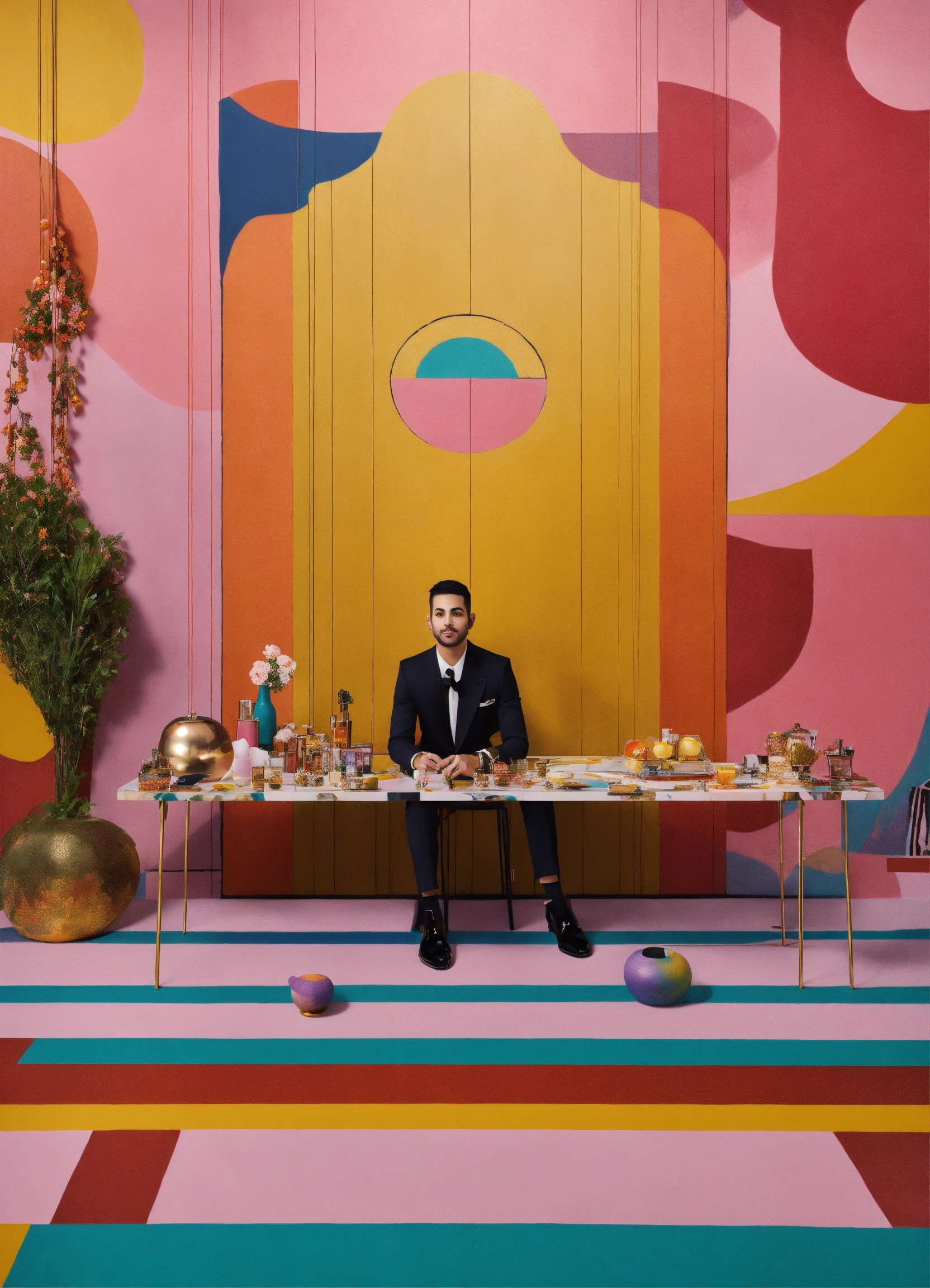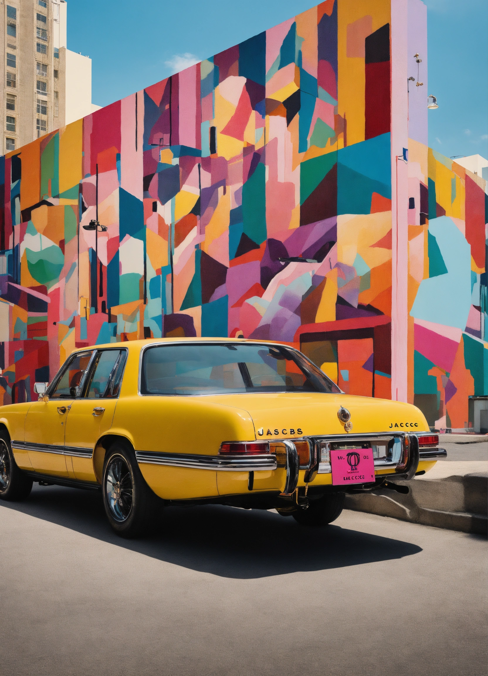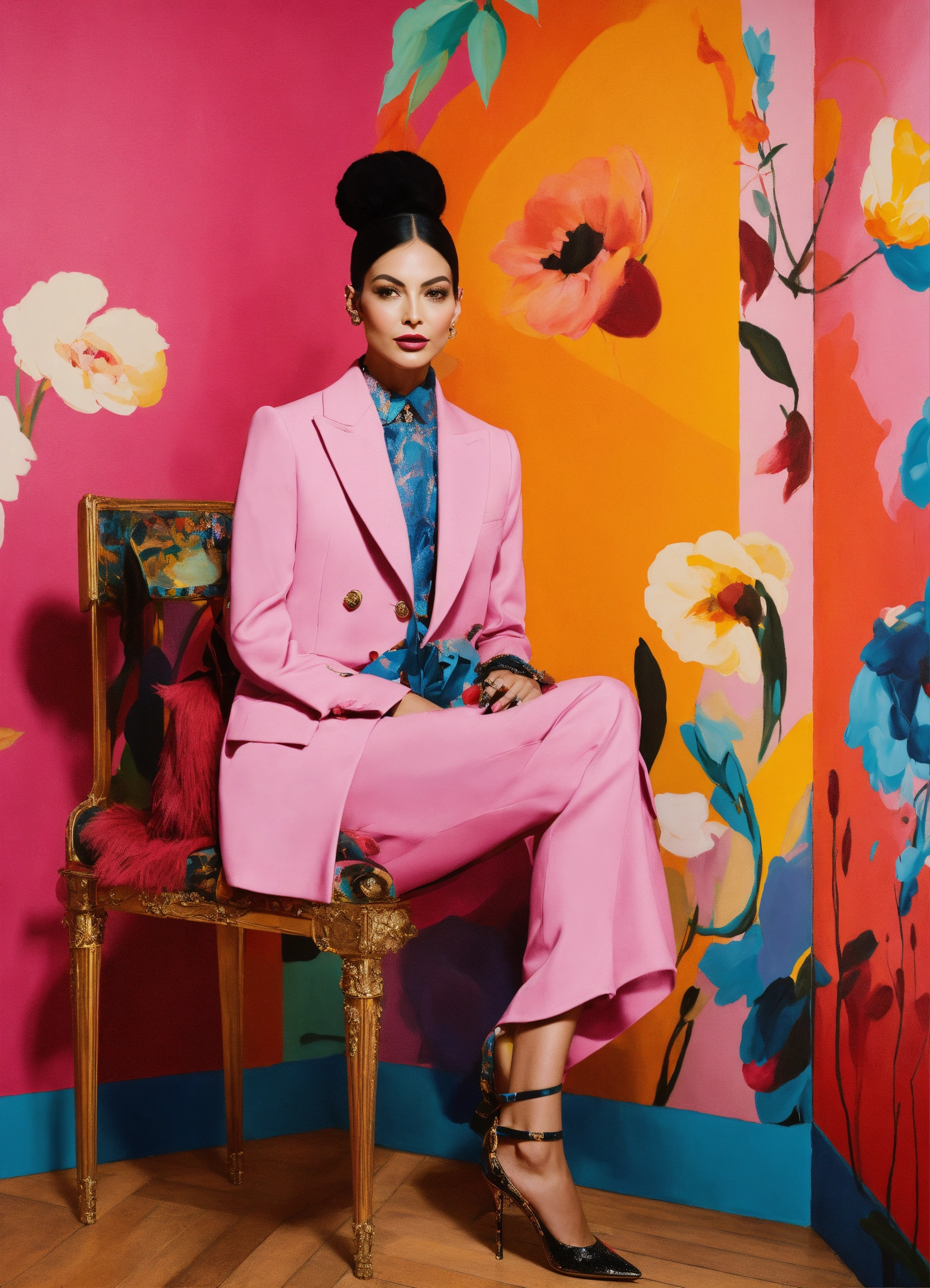 Generate a visually captivating and luxurious mural painting inspired by marc jacobs' 'perfect.' the background should exude elegance, with a modern twist and celebrate individuality and self-expression. incorporate vibrant, eye-catching colors and elements that evoke a sense of confidence and style. the background should be a visual representation of a sophisticated essence and modernity.