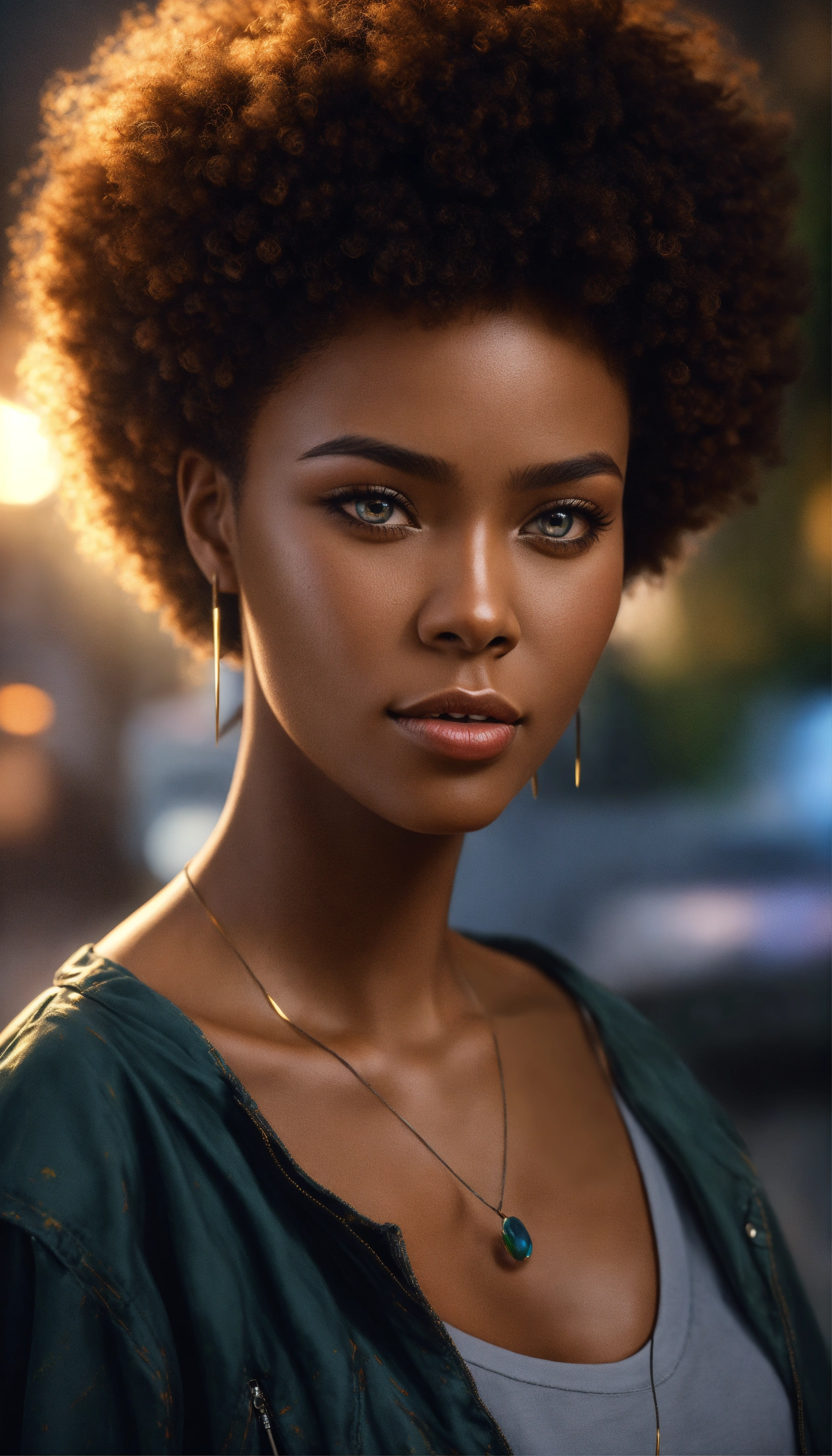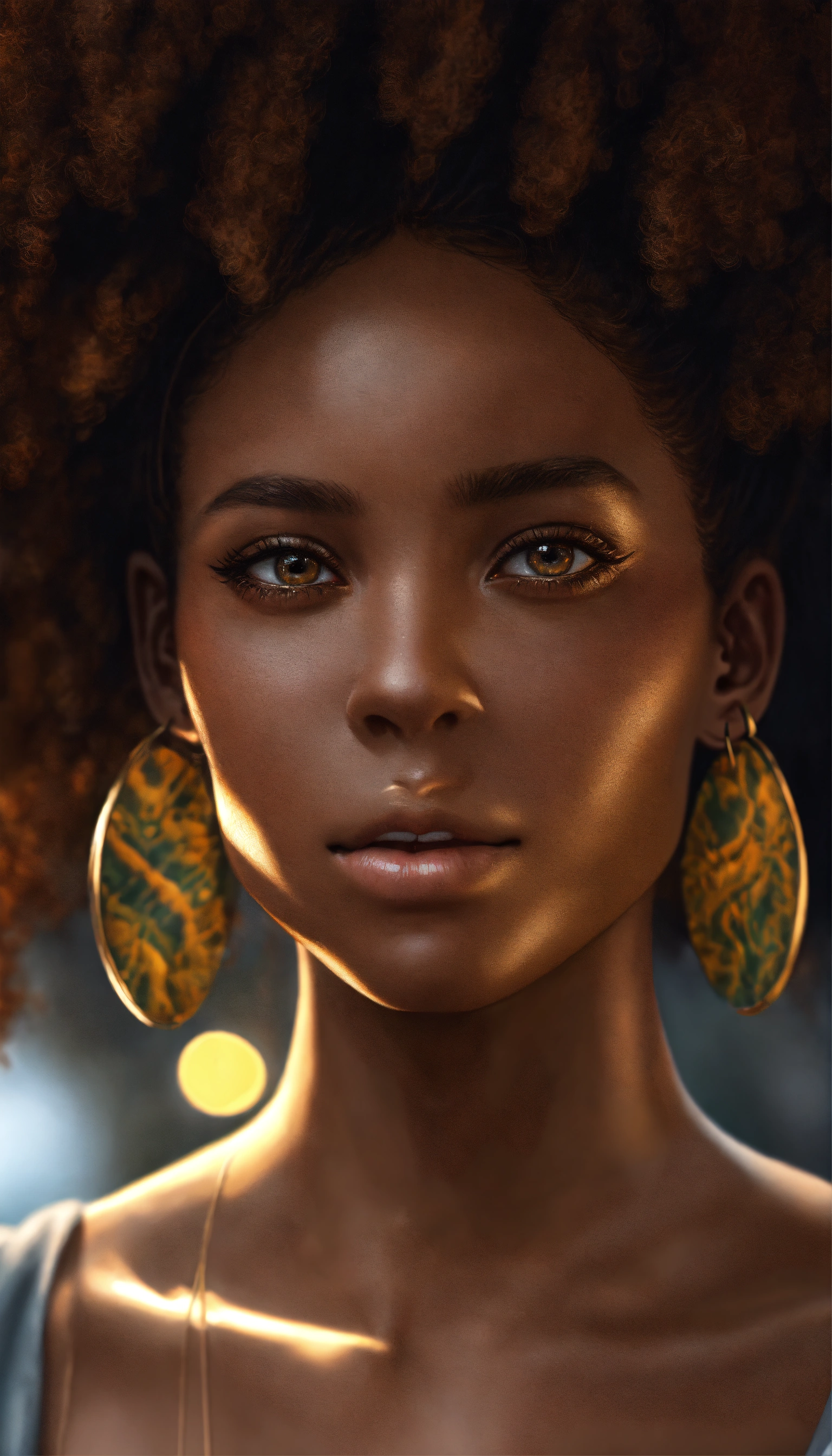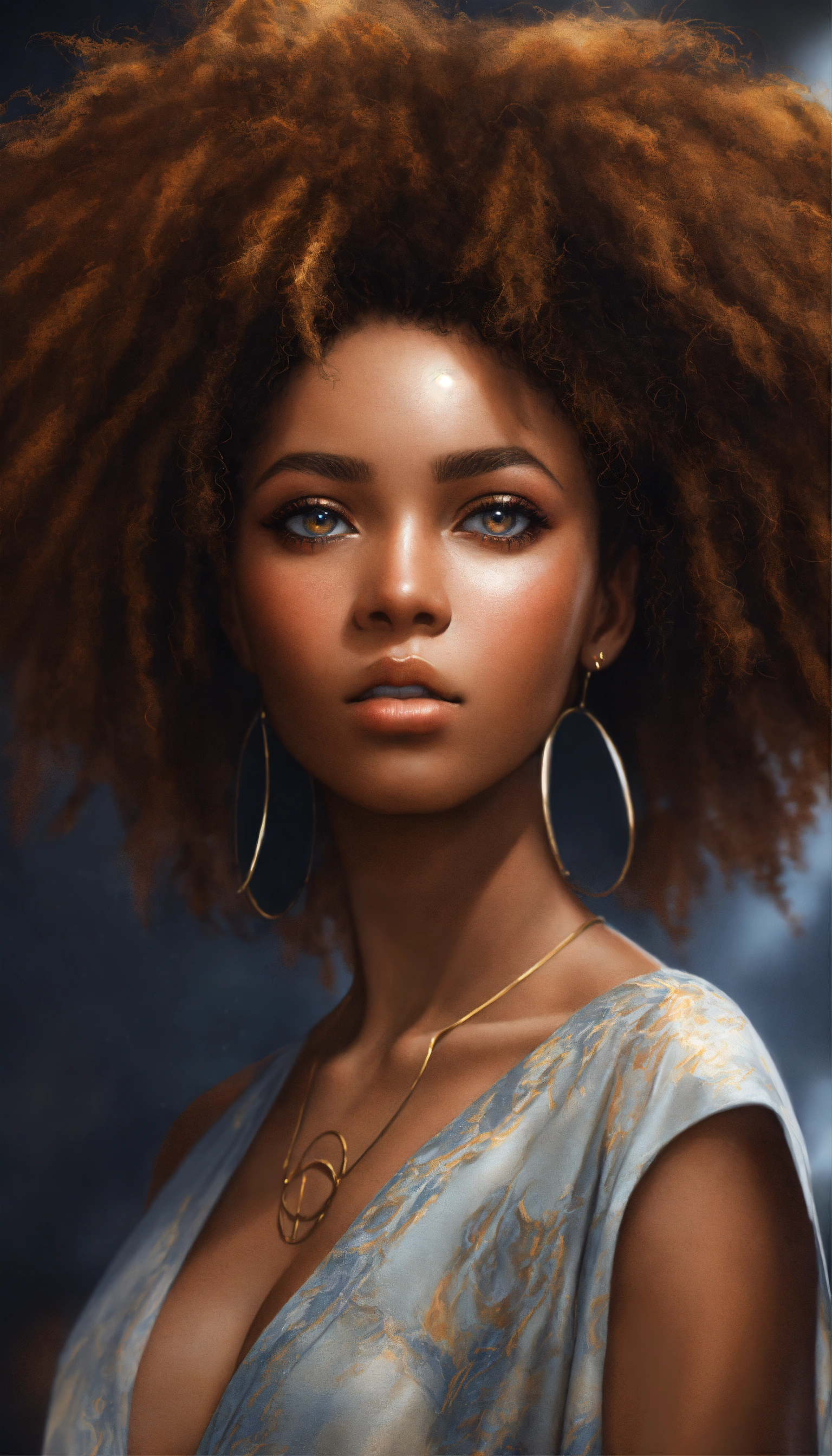 Beautiful women, black skin, afro hairs, detailed face, realistic eyes, detailed, realistic paint, hyper-detailed, natural lightning, 8k, high details, hyperrealism