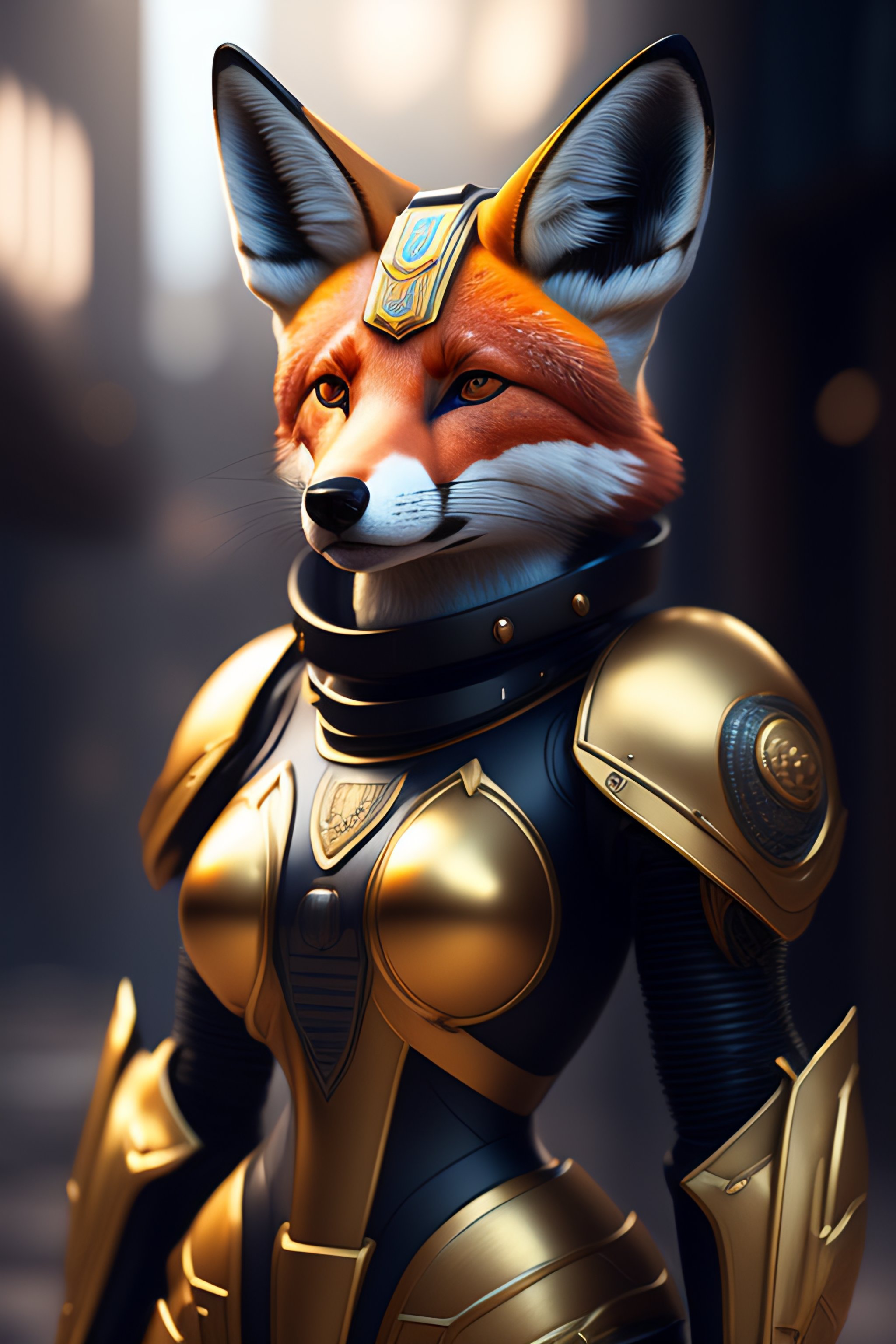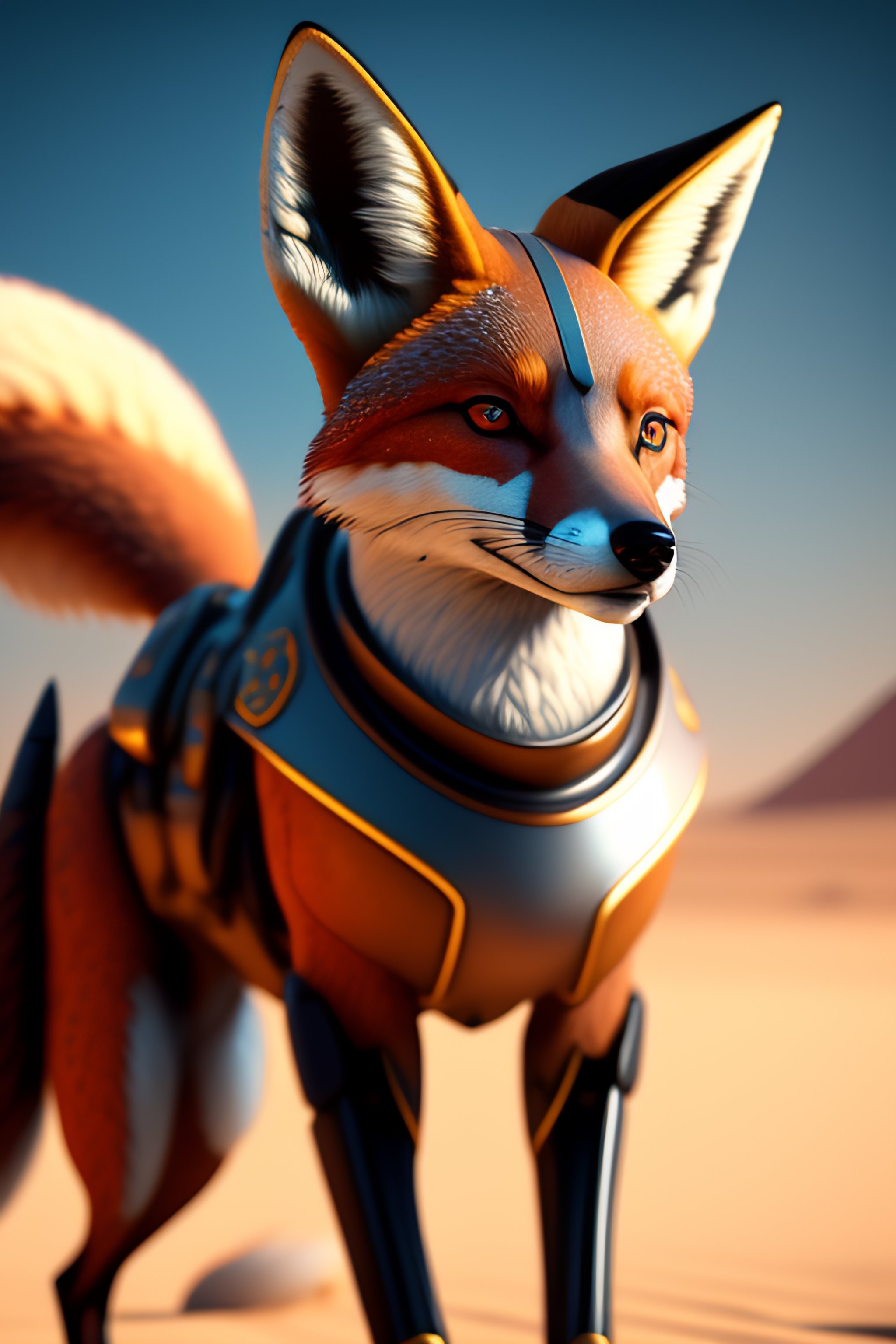 280 / 5 000 portrait painting of a robot fox with power armor in an egyptian world, ultra realistic in, concept art, intricate detail, eerie, highly detailed, photorealistic, octane render, 8k, unreal engine.