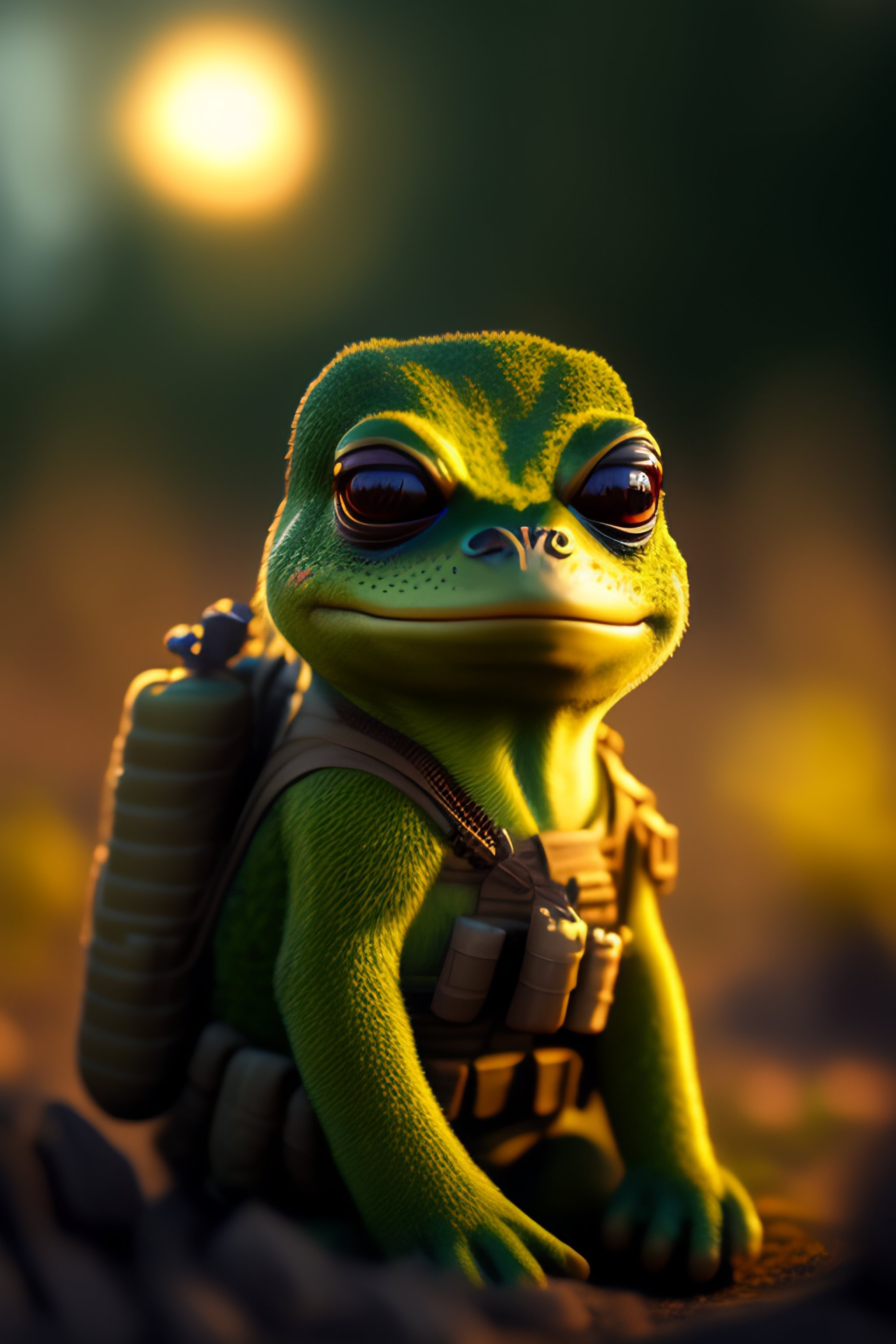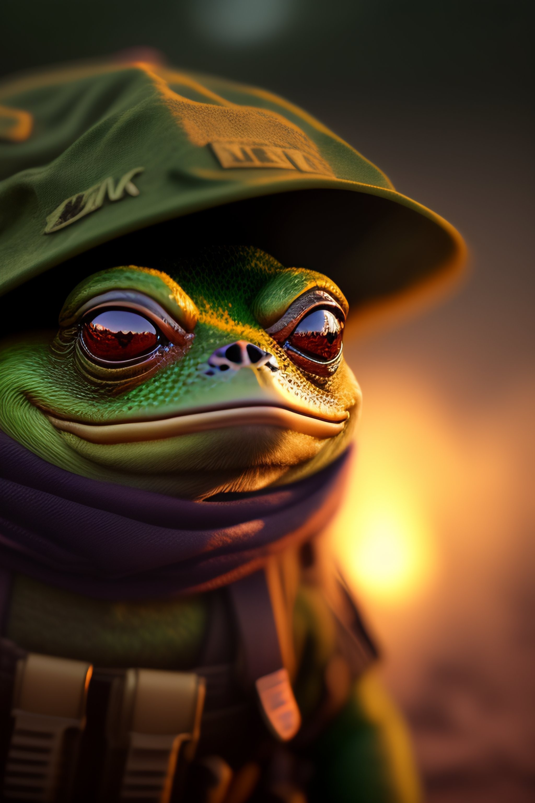 An exhausted pepe the frog at the frontlines in the army at night with his platoon fighting, key lighting, soft lights, foggy, by steve hanks, by lisa yuskavage, by serov valentin, by tarkovsky, 8 k render, detailed, cute cartoon style, very cute adorable face