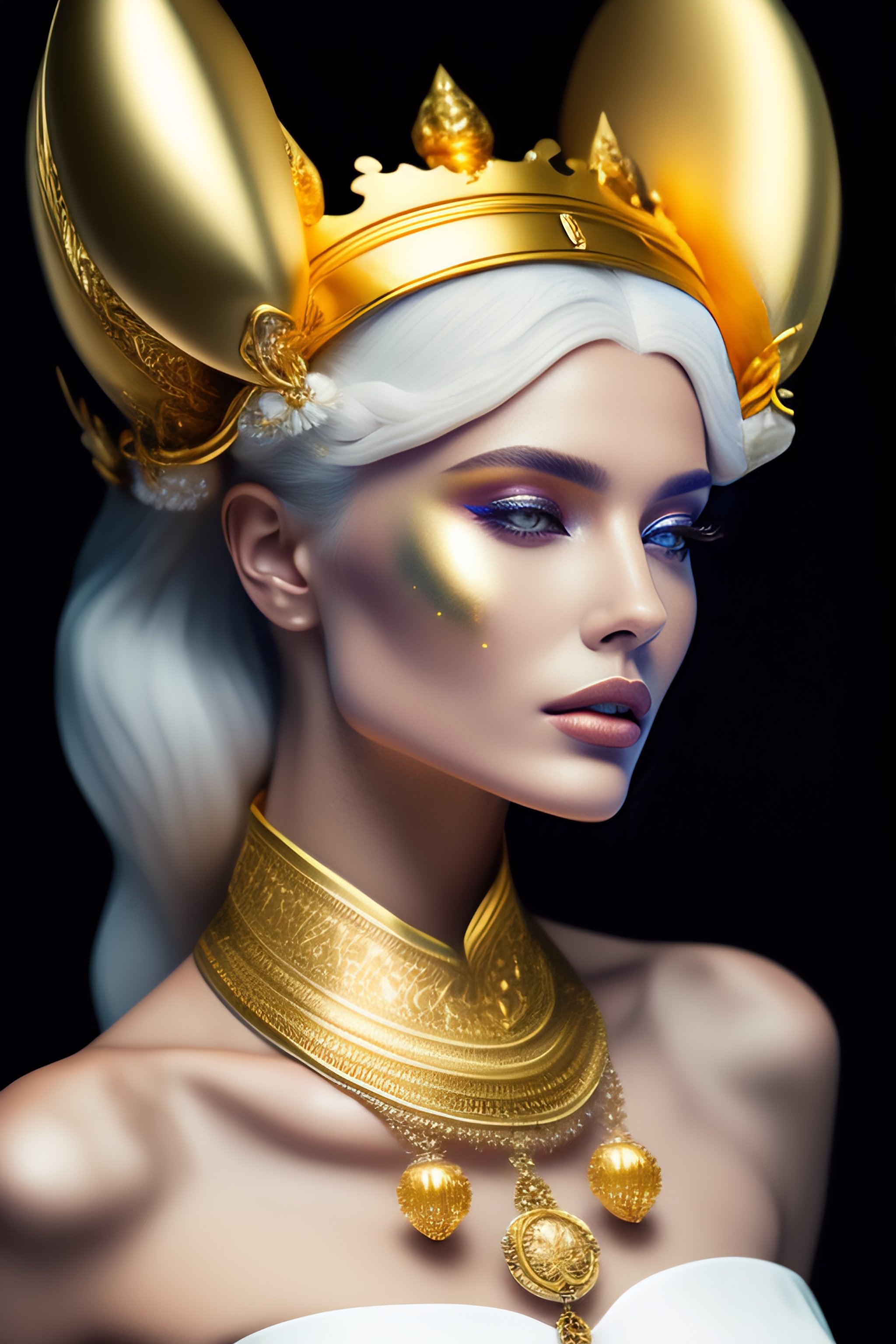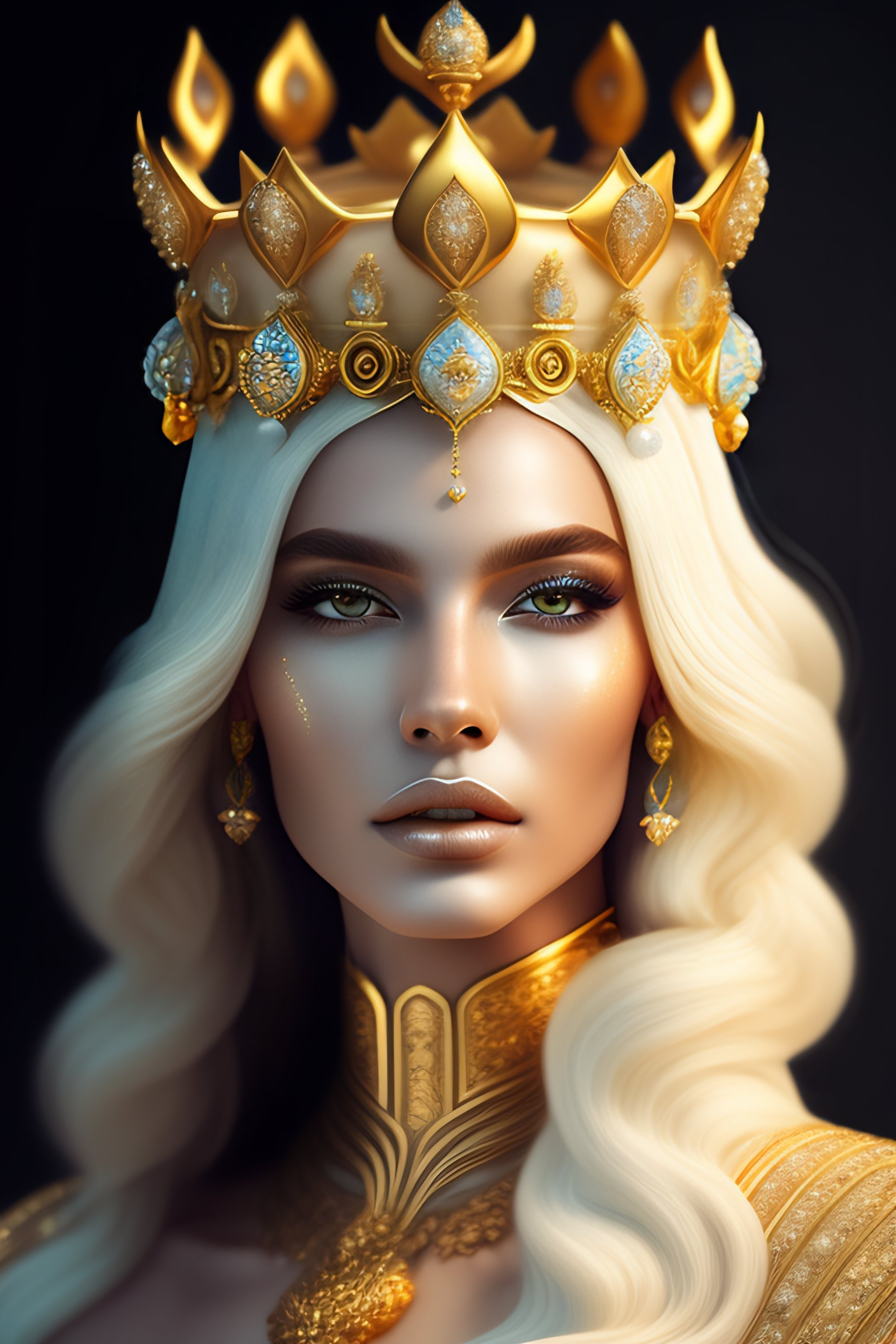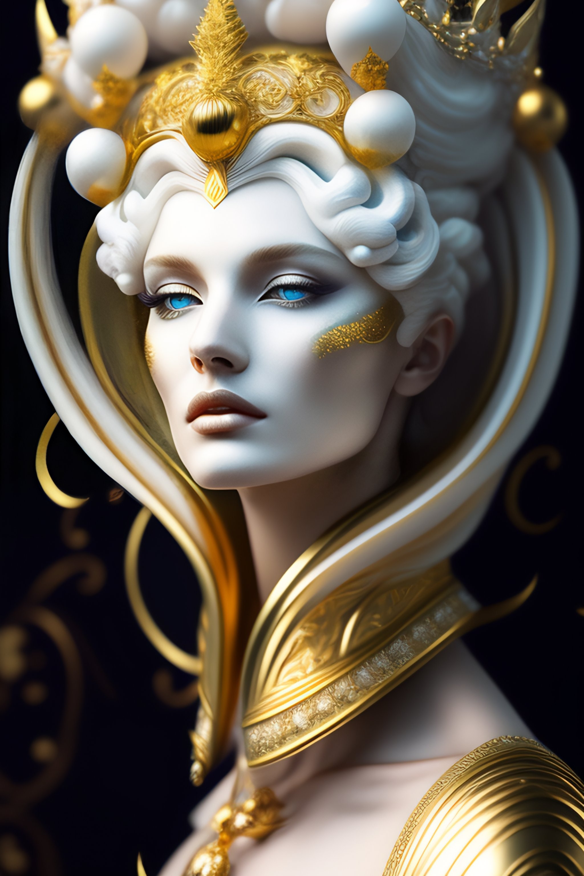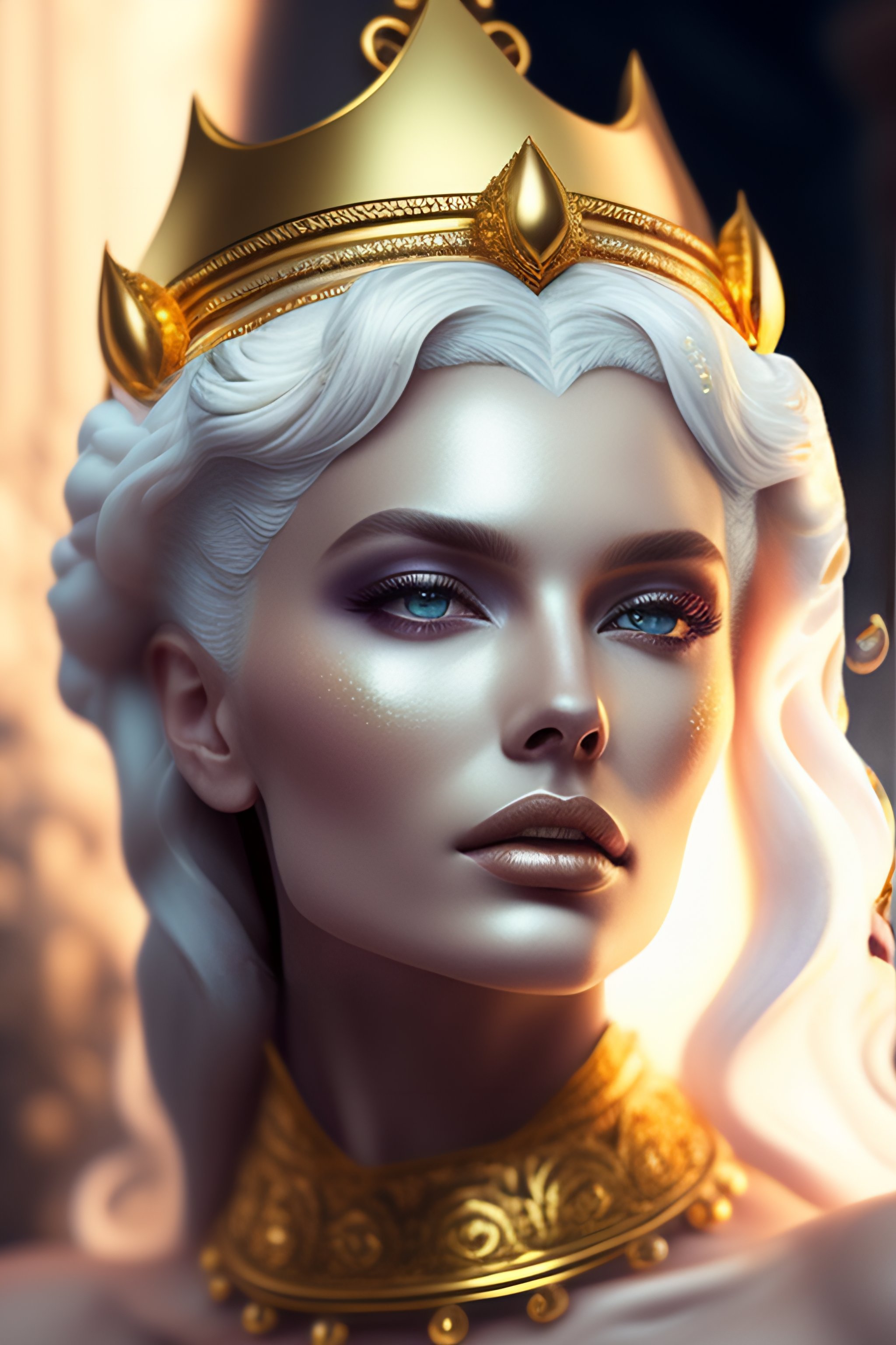 Marble white alien queen, marble veins, crown, intricate, marble creature, gold veins, gold, majestic crown