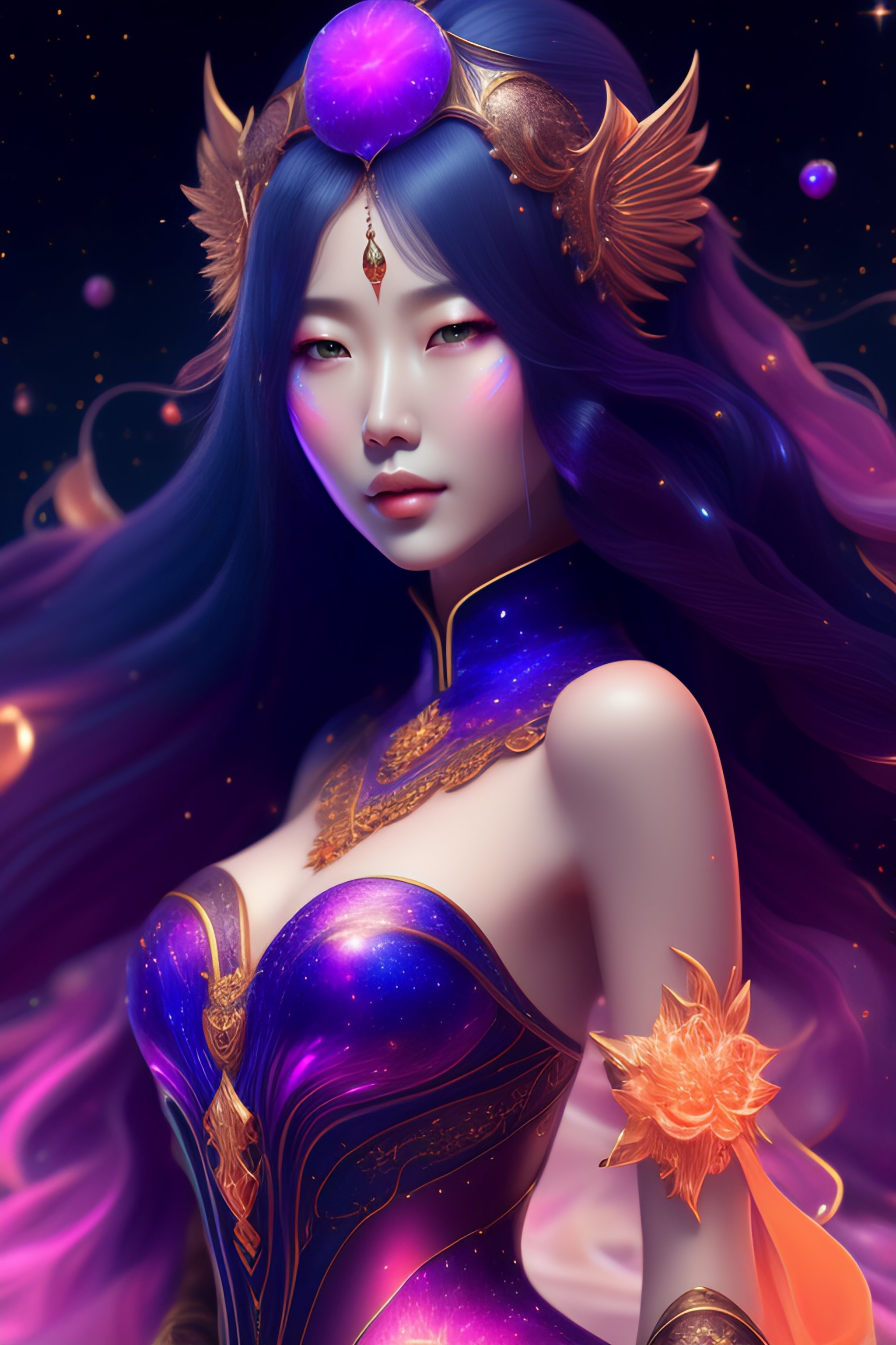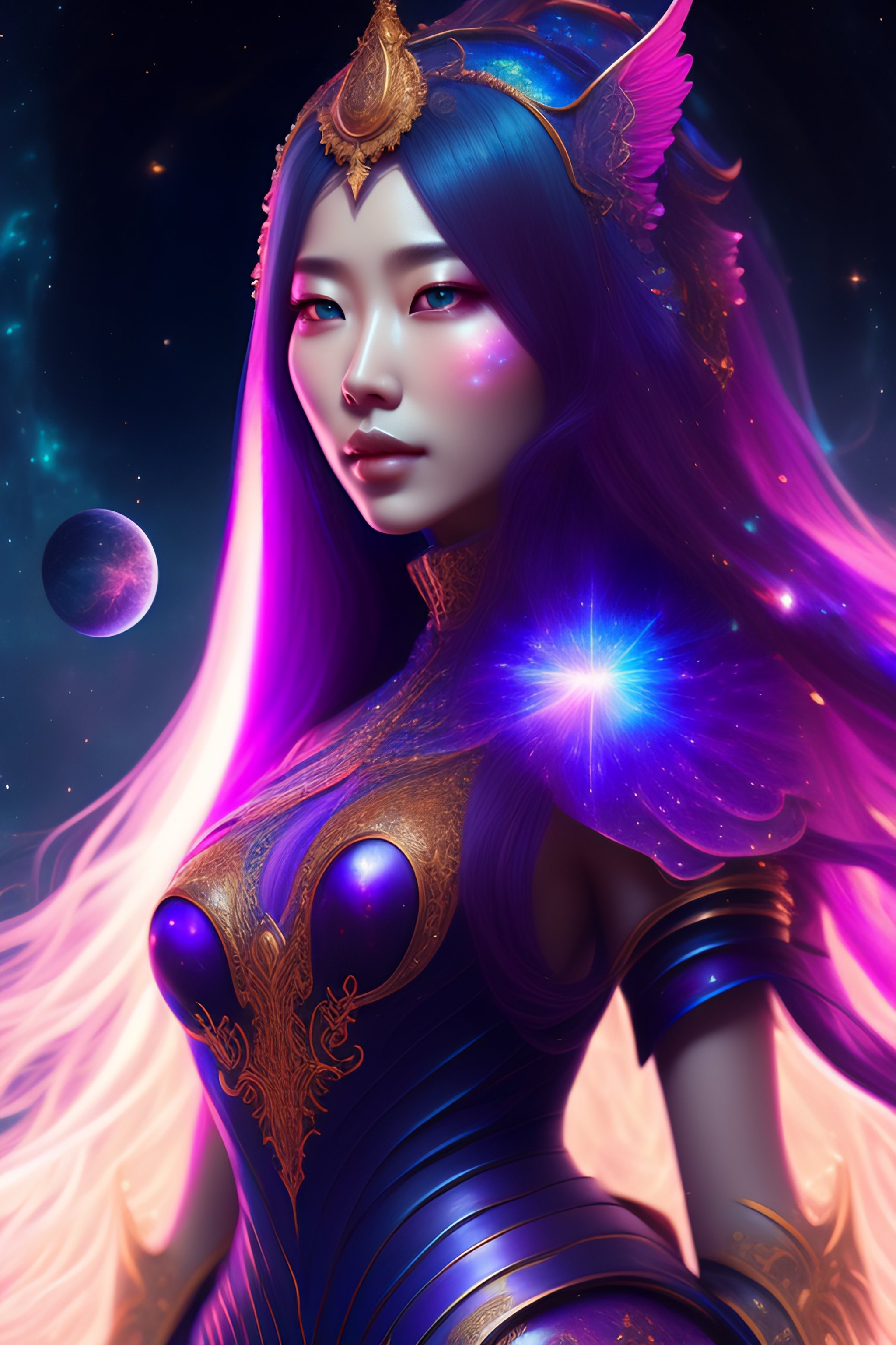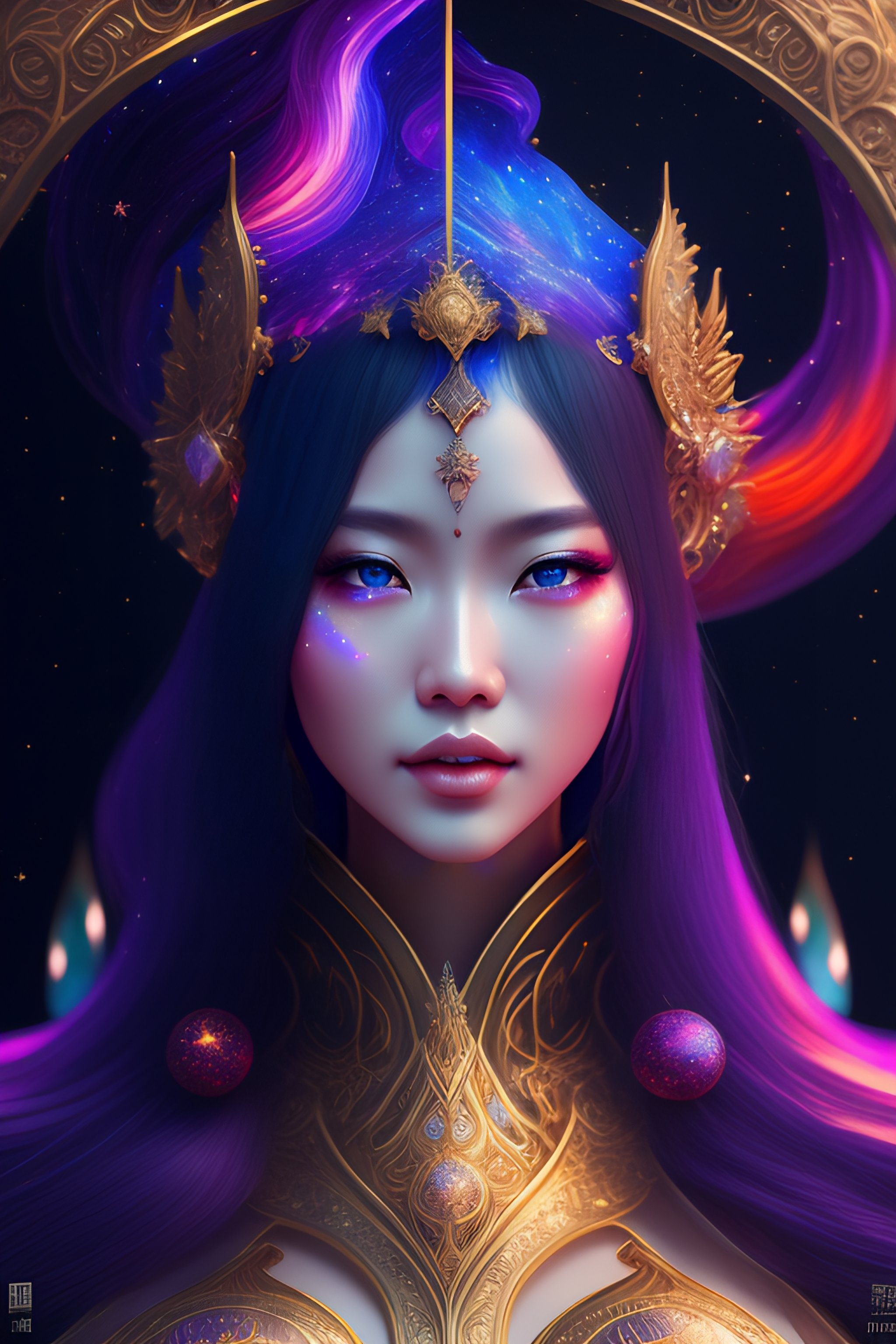 Cosmic sorceress, nebulas, galactic, concept art portrait by pelé, miho hirano, hyperdetailed intricately detailed gothic art trending on artstation triadic colors unreal engine 5 detailed matte painting, deep color, fantastical, intricate detail, splash screen, complementary colors, fantasy concept art, 8k resolution, gothic deviantart masterpiece