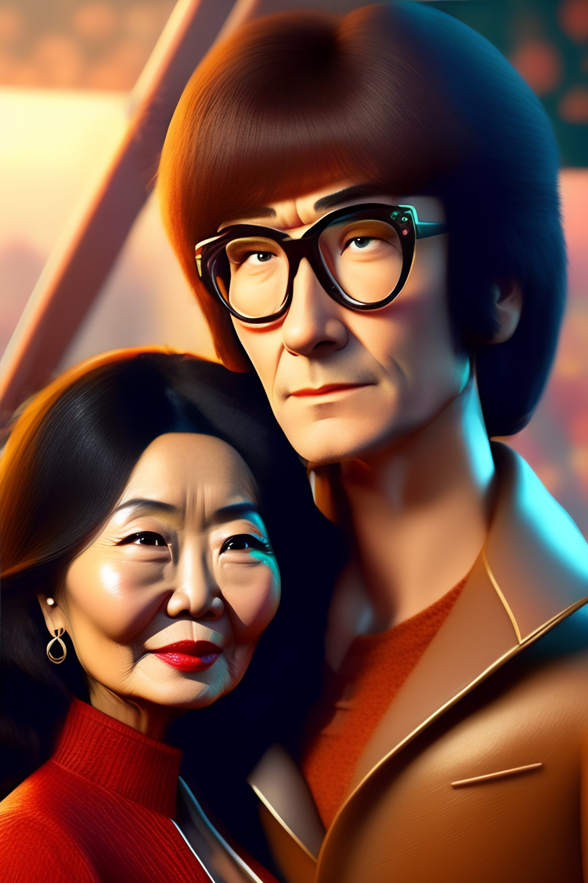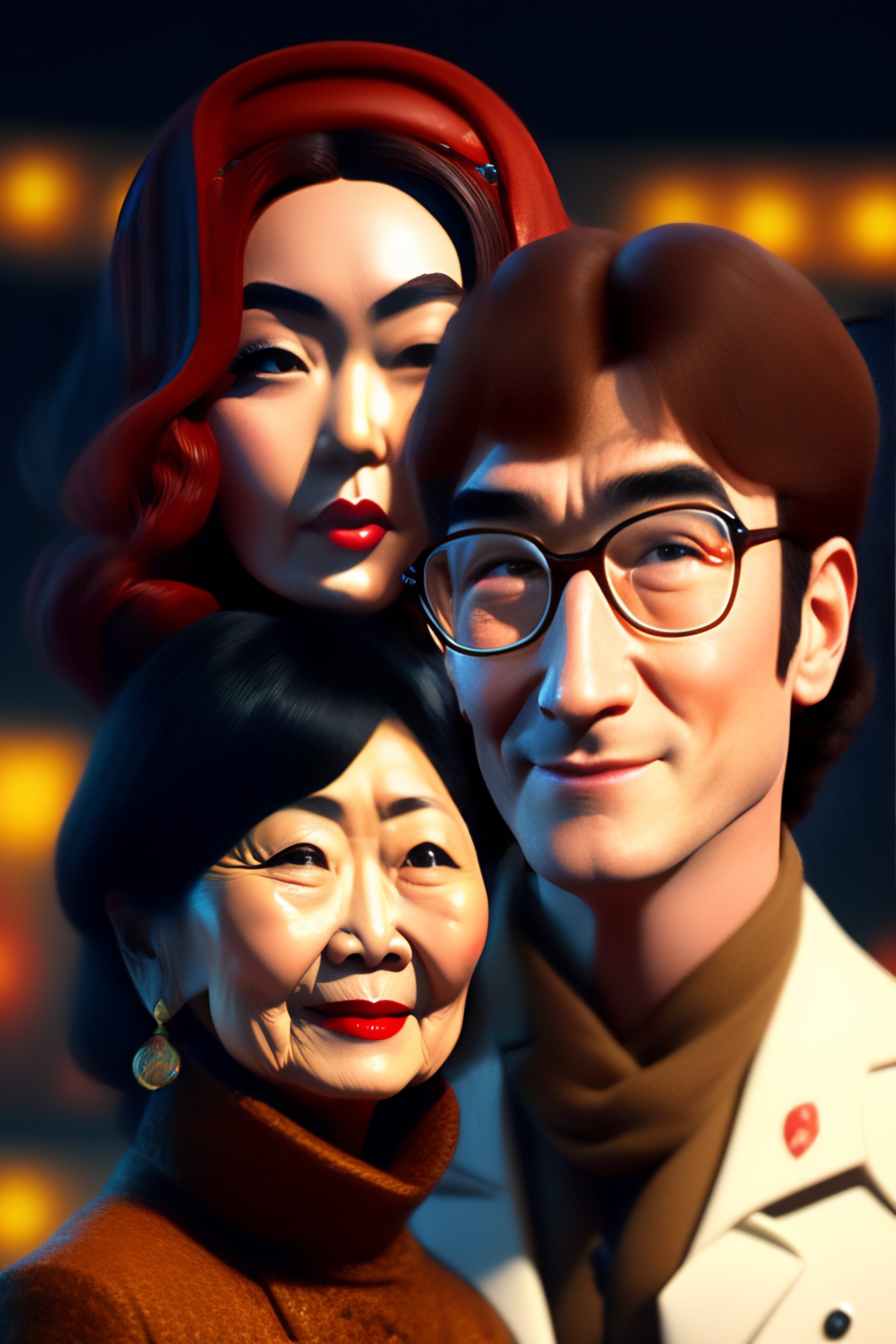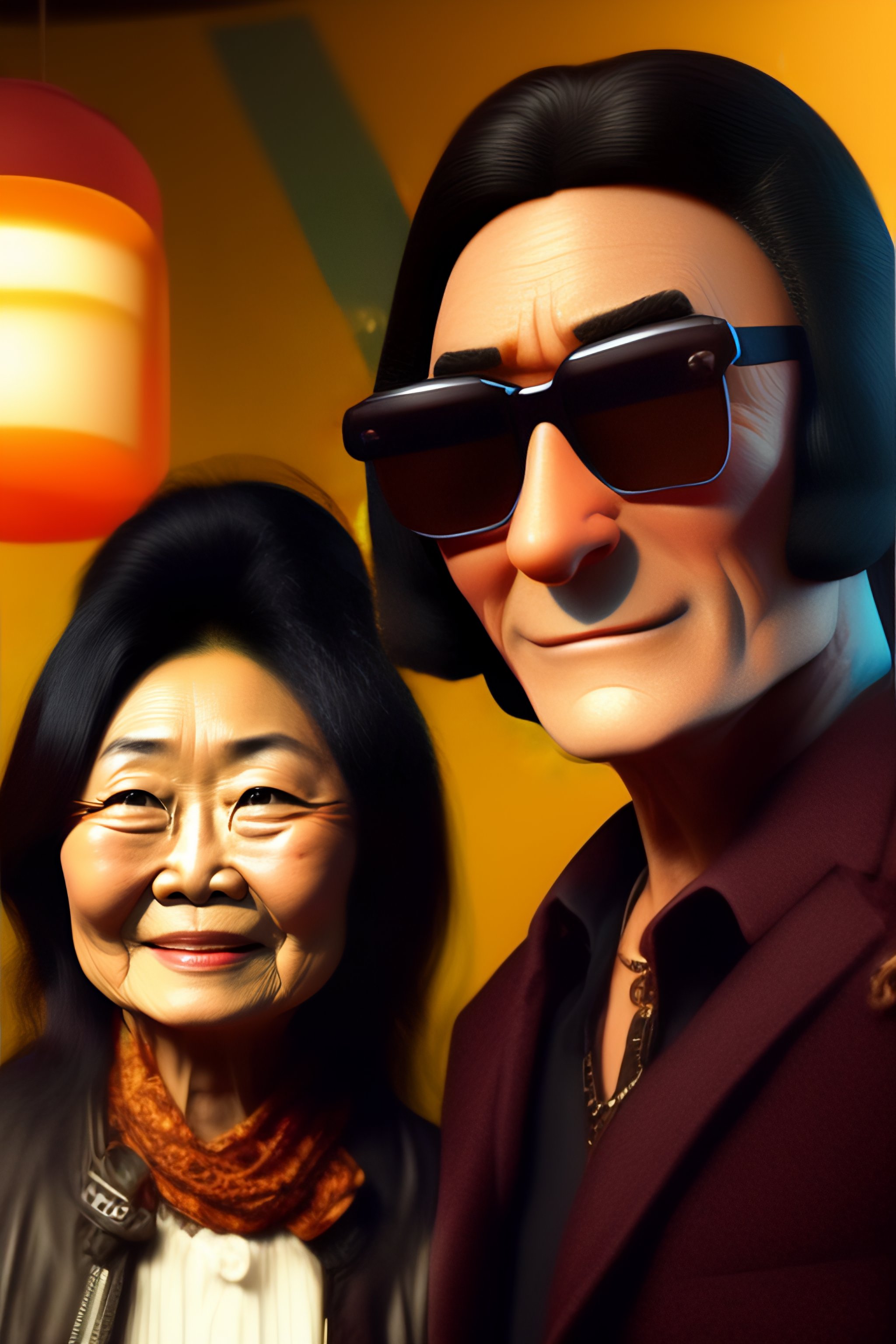 A picture of john lennon as a main character of a pixar disney movie, with yoko ono as the antagonist in the style of toy story