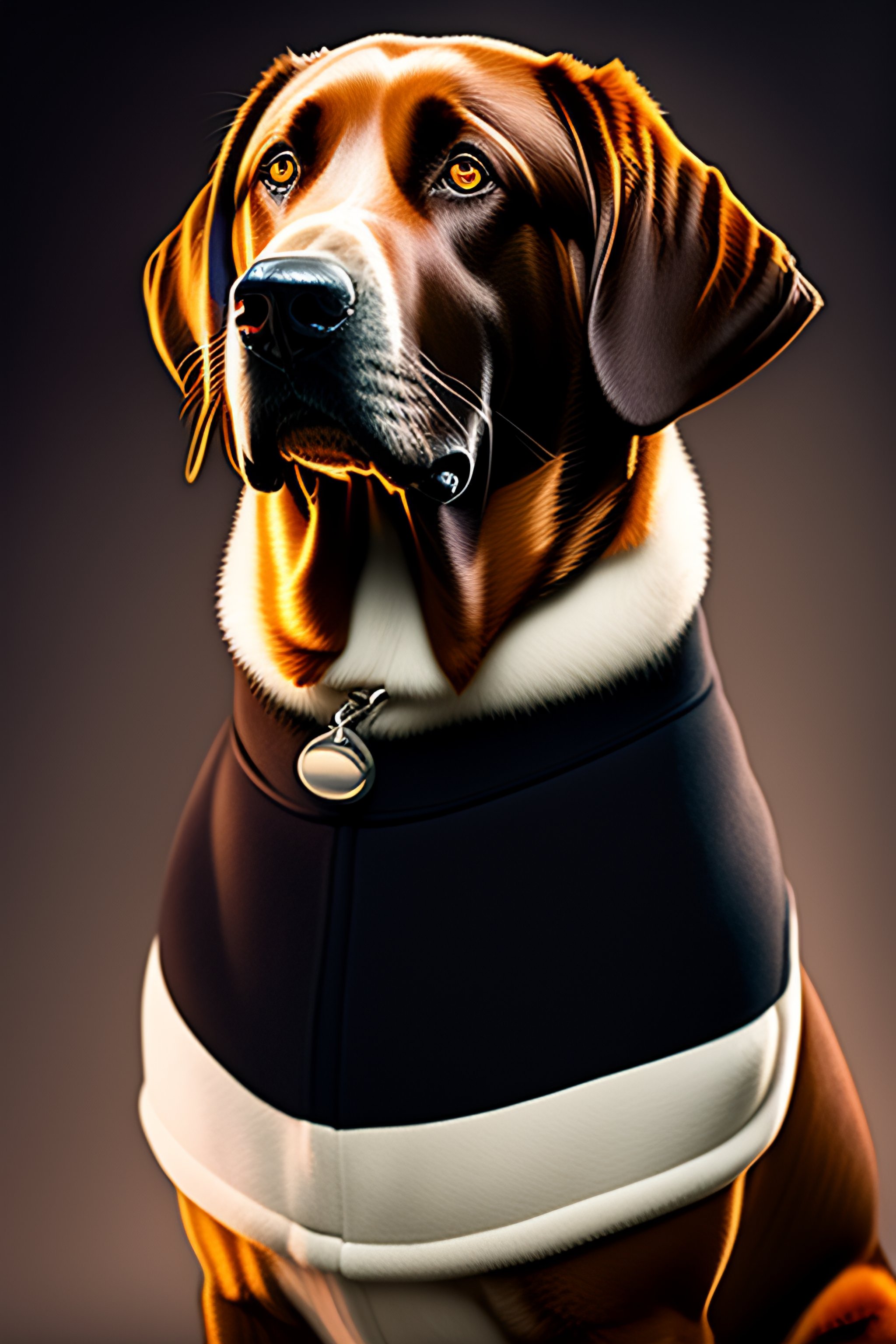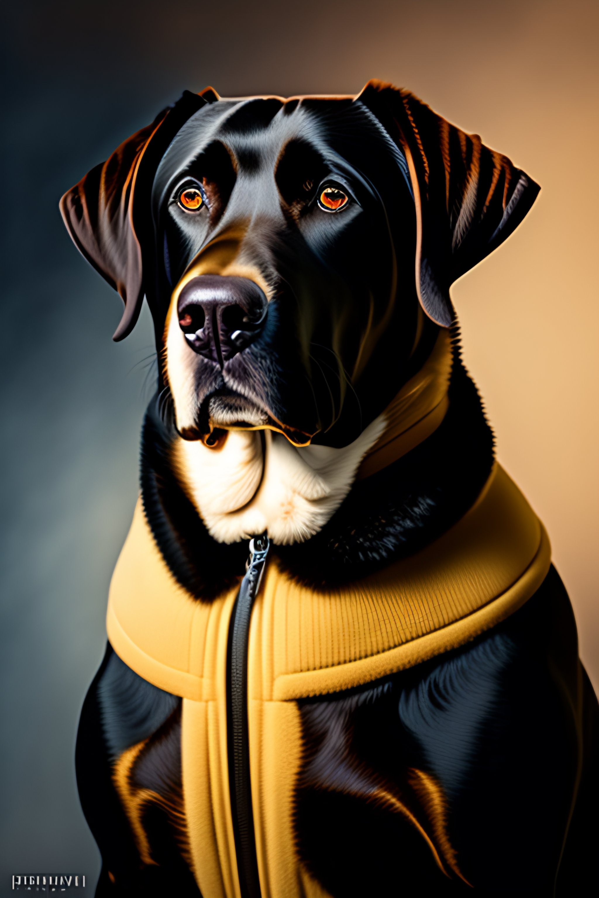 Furry art of a male black labrador retriever dogman in a jumper suit, full body, titian, sam spratt, small white patch of fur on chest maxfield parrish, gustav klimt, tom bagshaw, mark ryden, alphonse mucha, rembrandt, 4 k, 8 k, high details, sharp, dramatic lighting, disney, pixar, dreamworks
