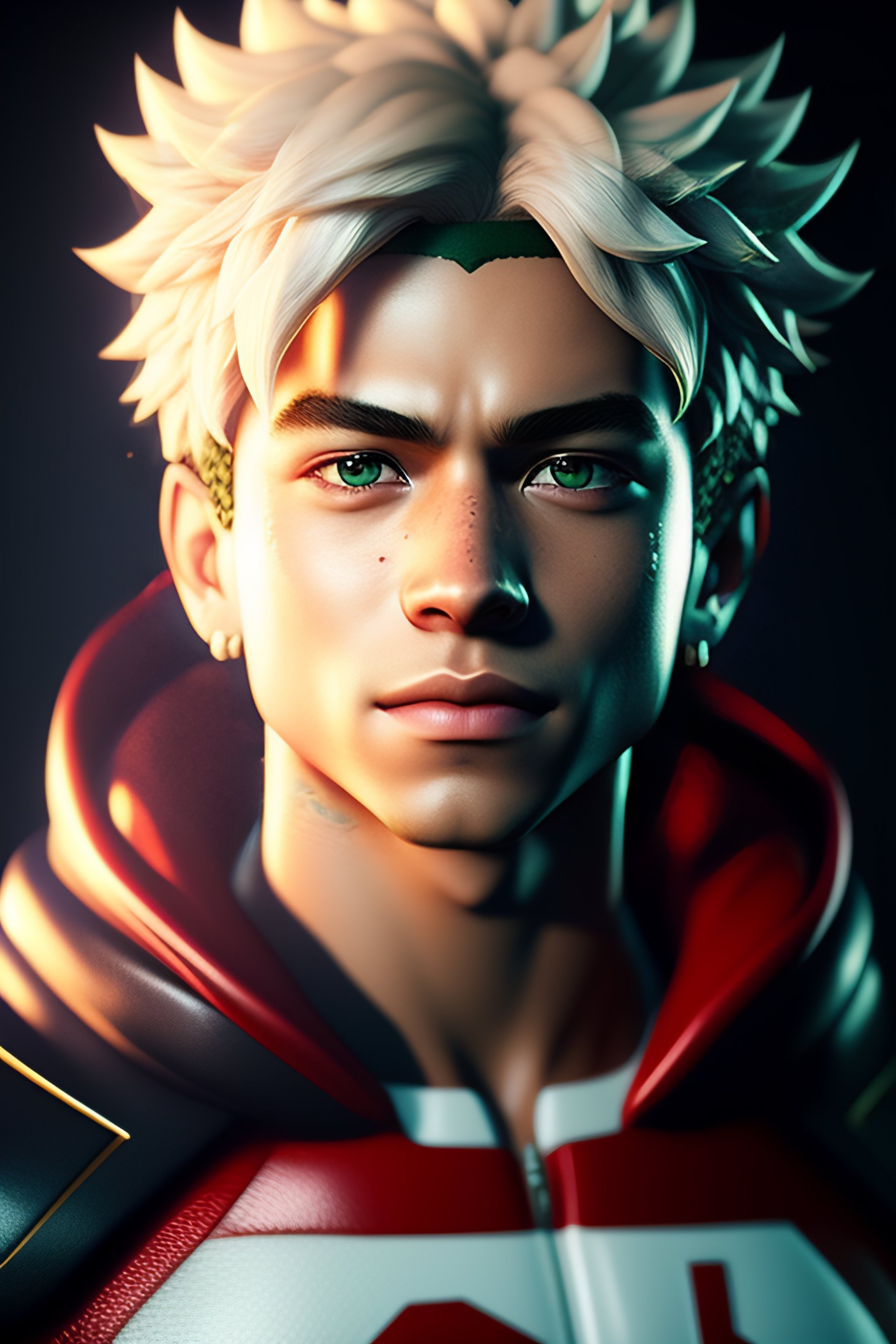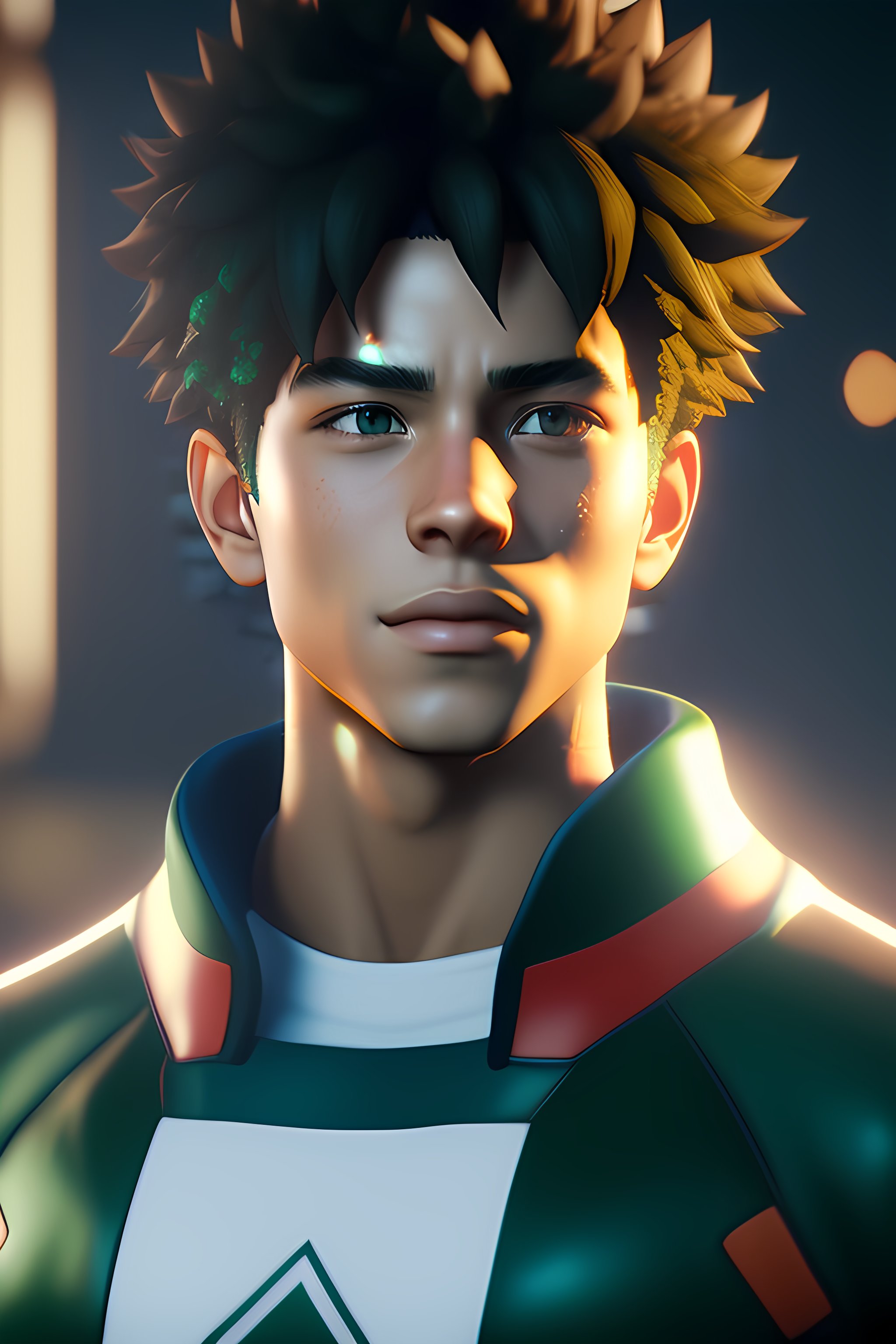 White izuku midoriya from my hero academia, hyper realistic, octane rendering, unreal engine 5, illumination, 4k rendered, highly detailed