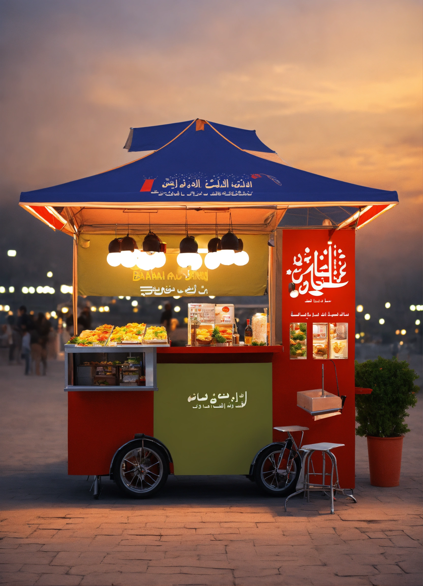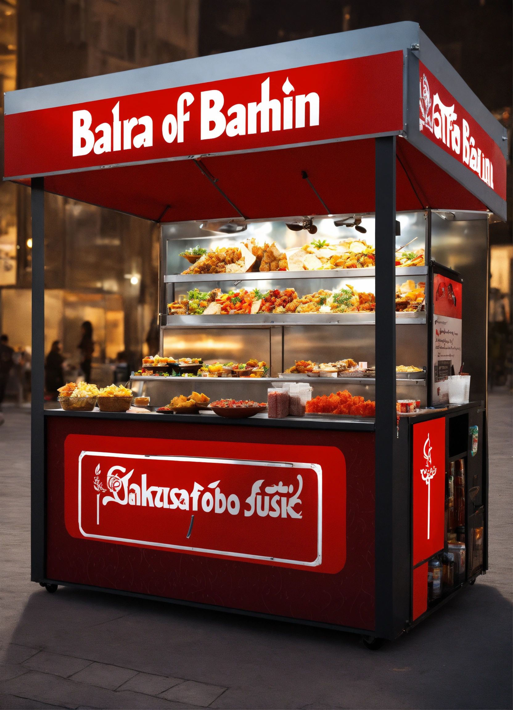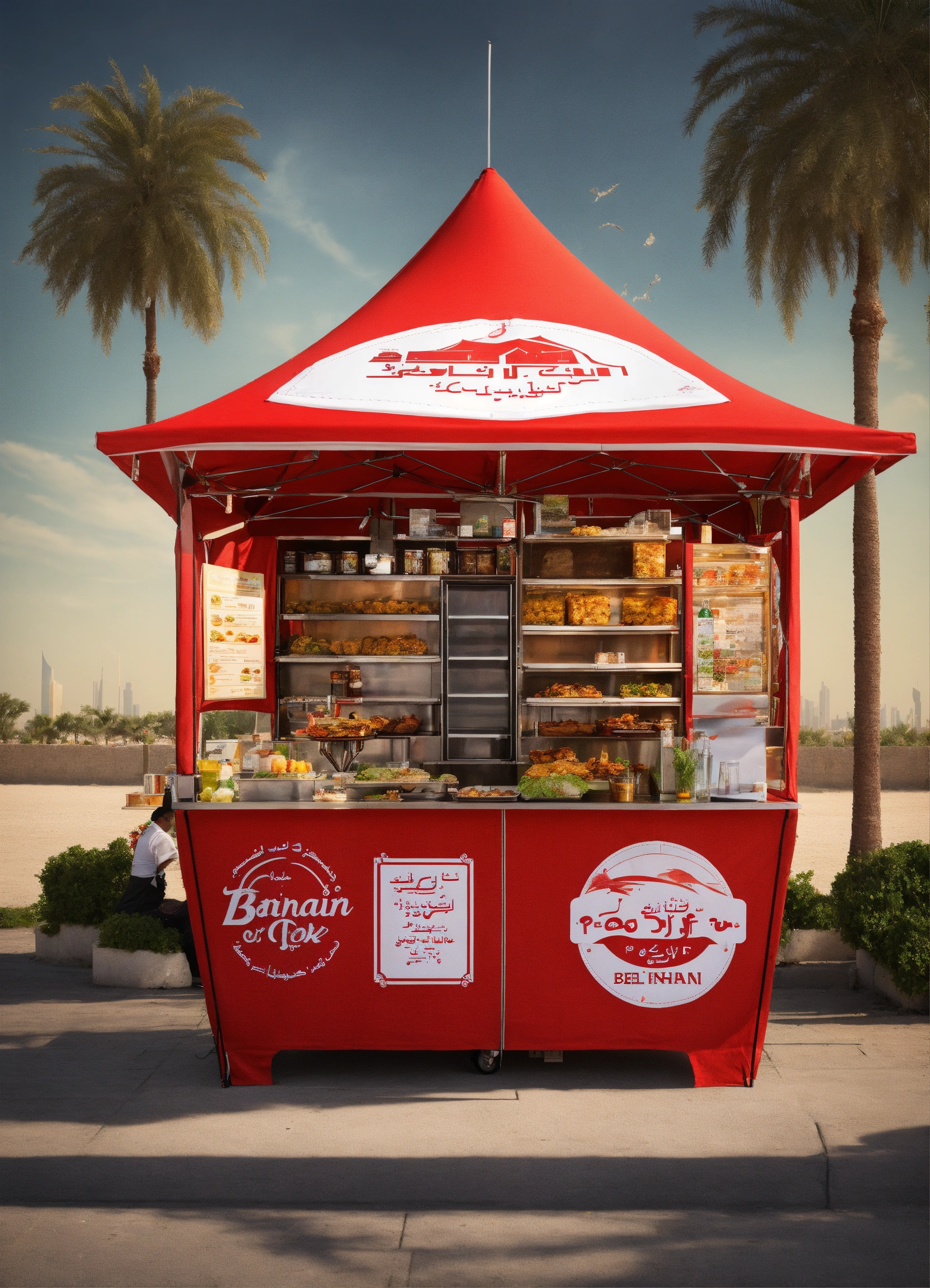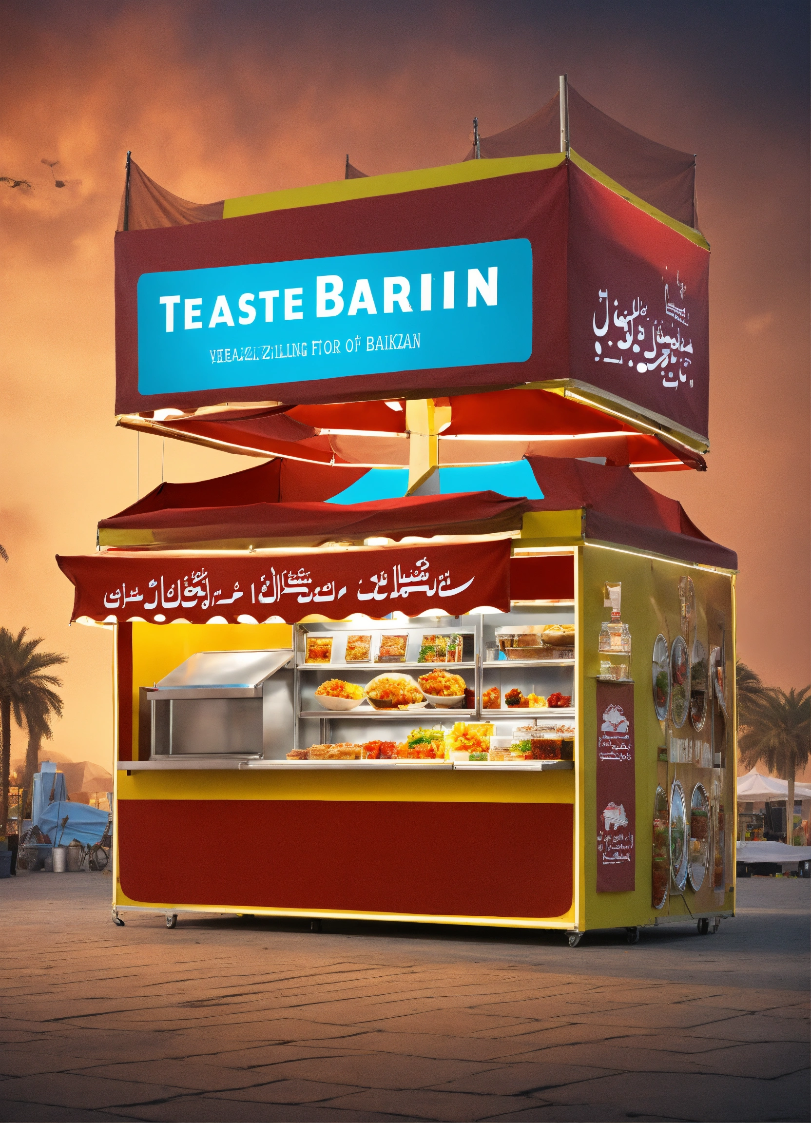 "visualize the 'taste of bahrain' small food kiosk tent style