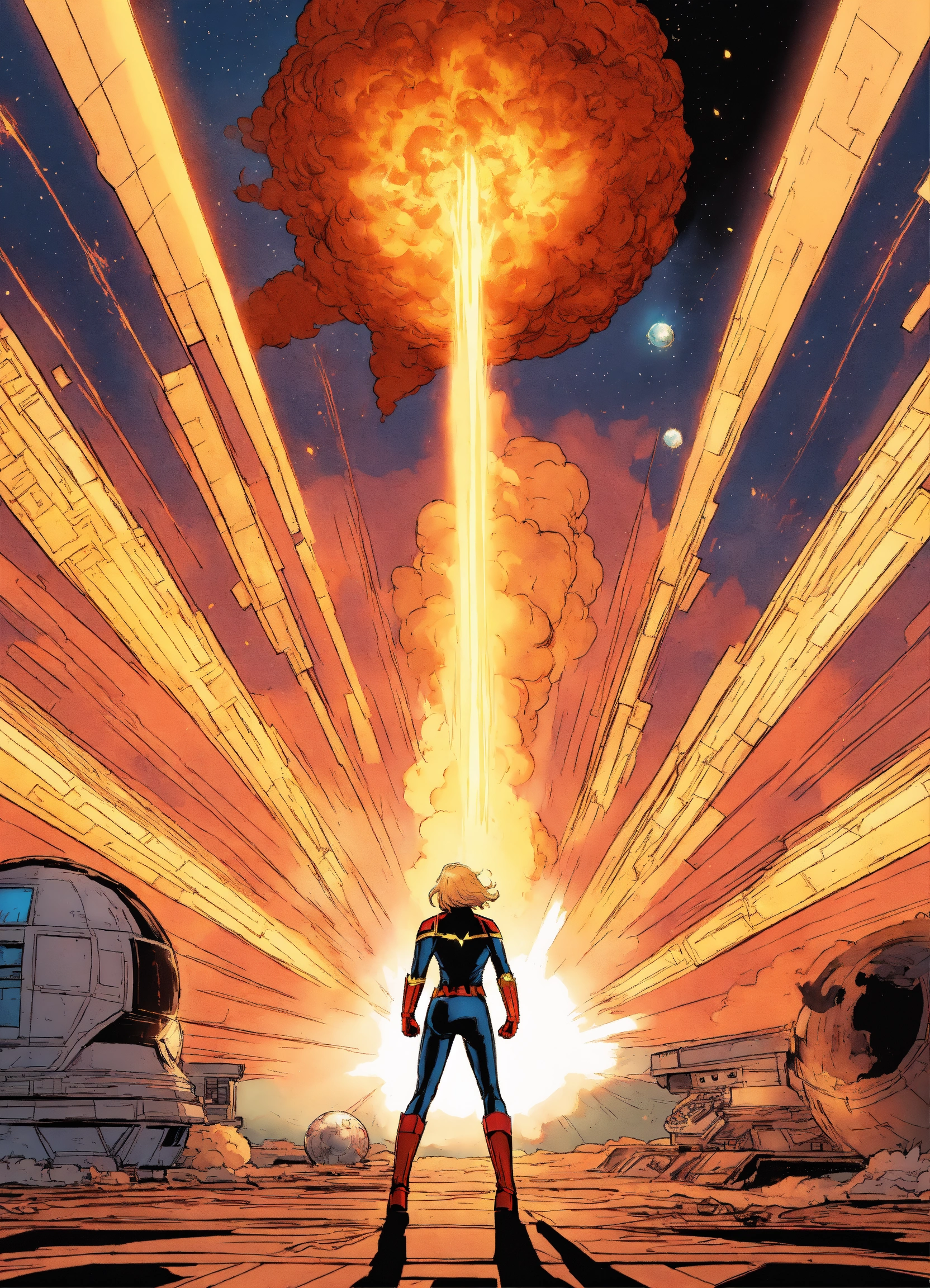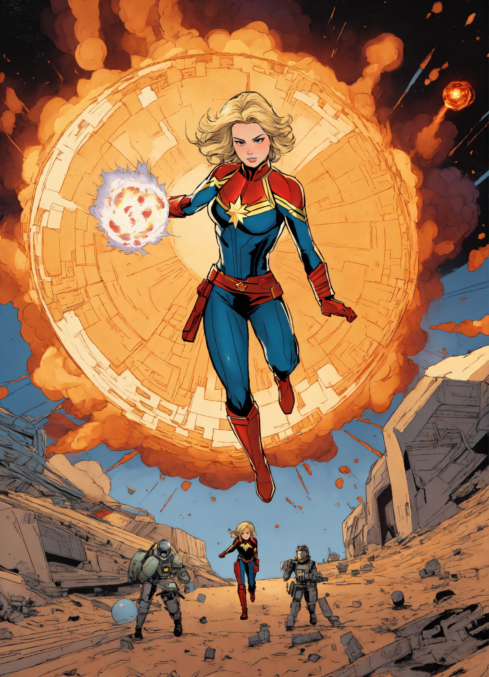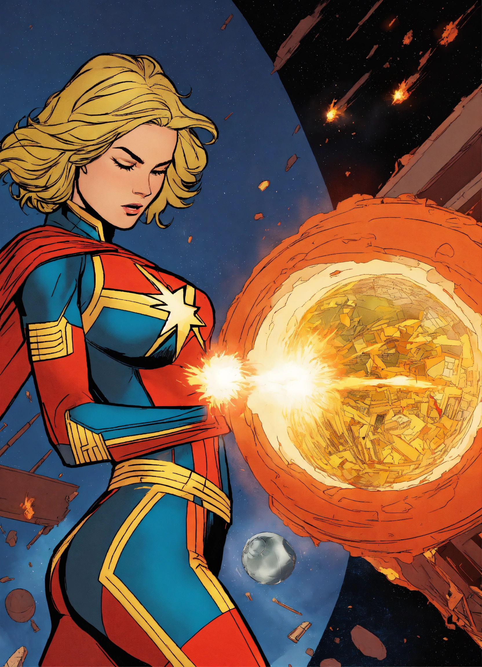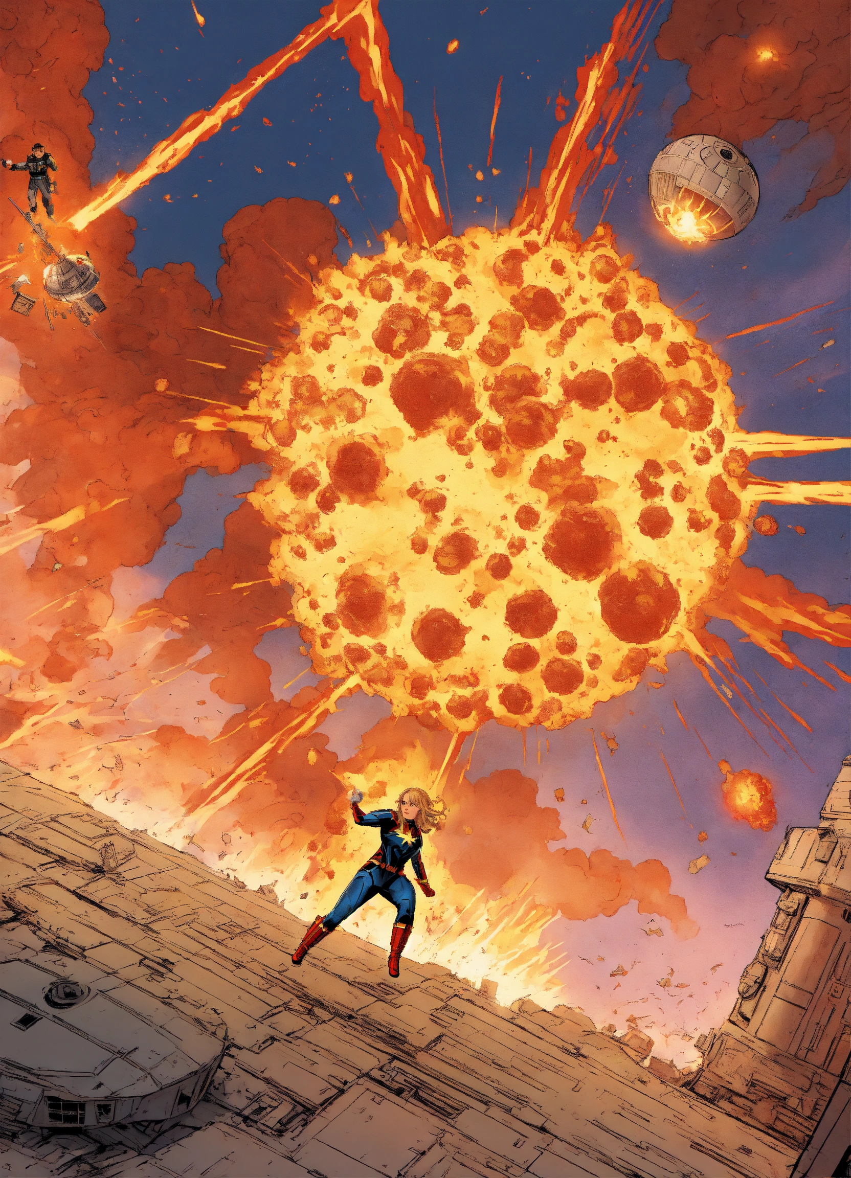 Captain marvel blowing up the deathstar by flying throught the middle of it and making the deathstar explode, then becoming binary the comic character