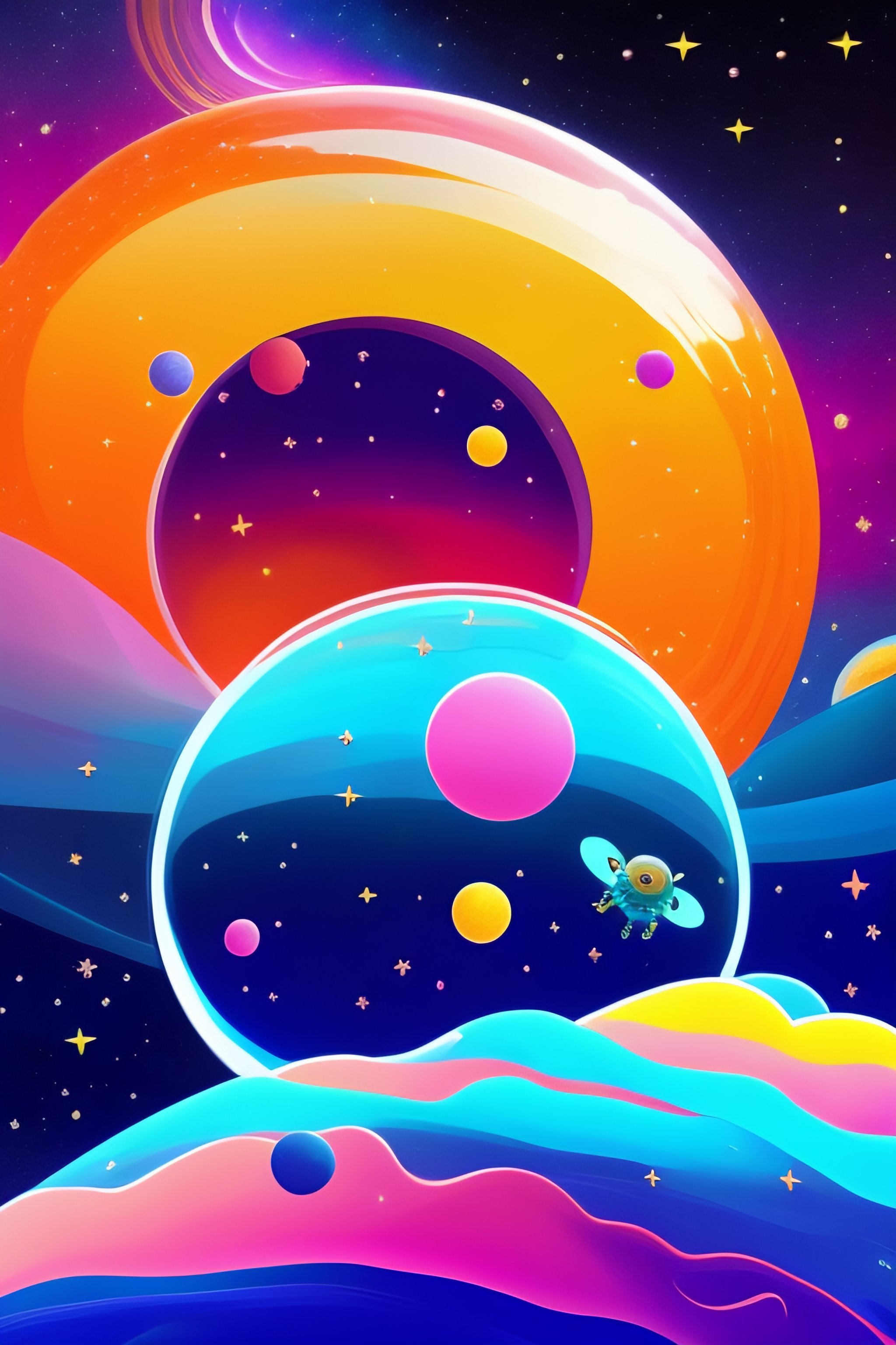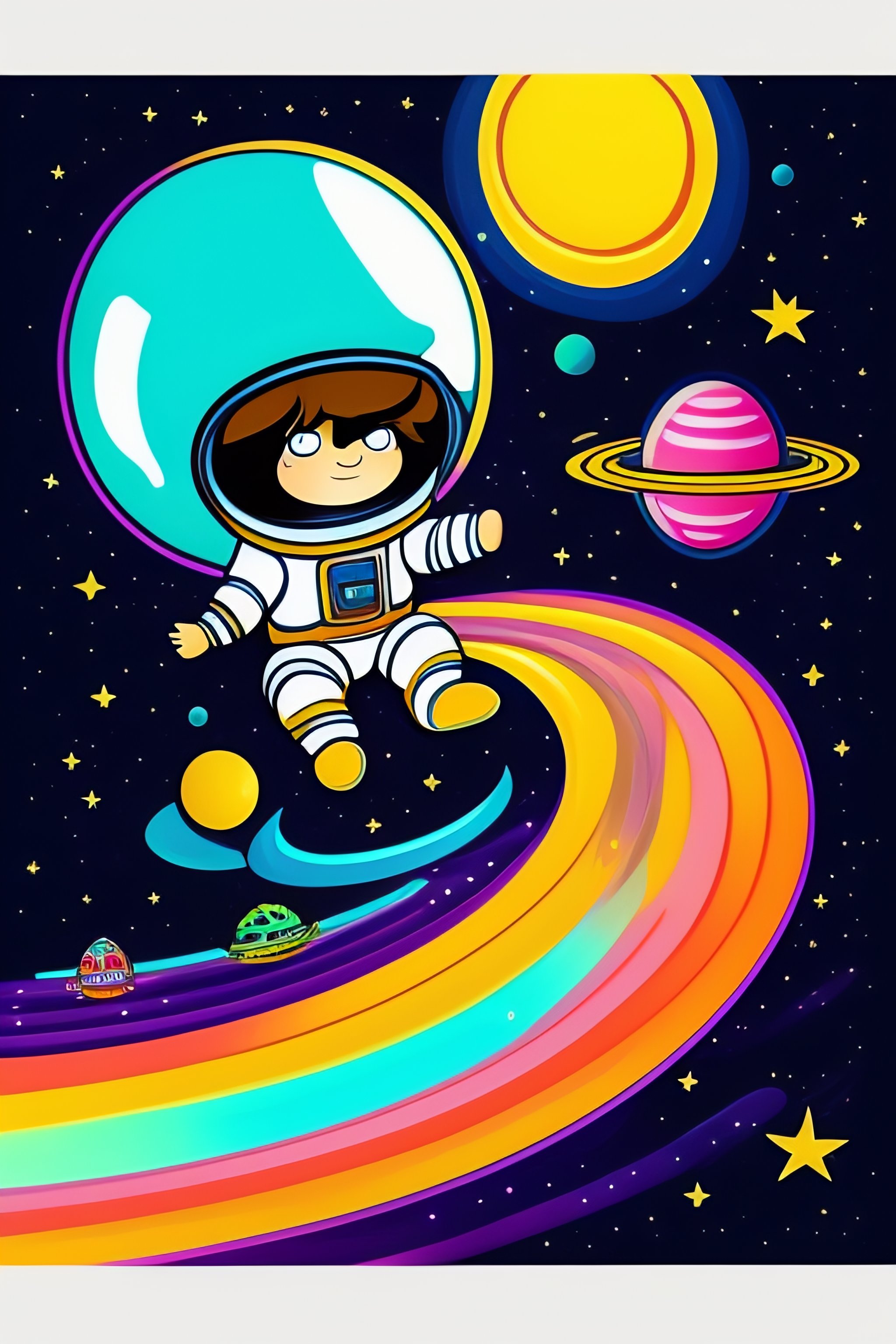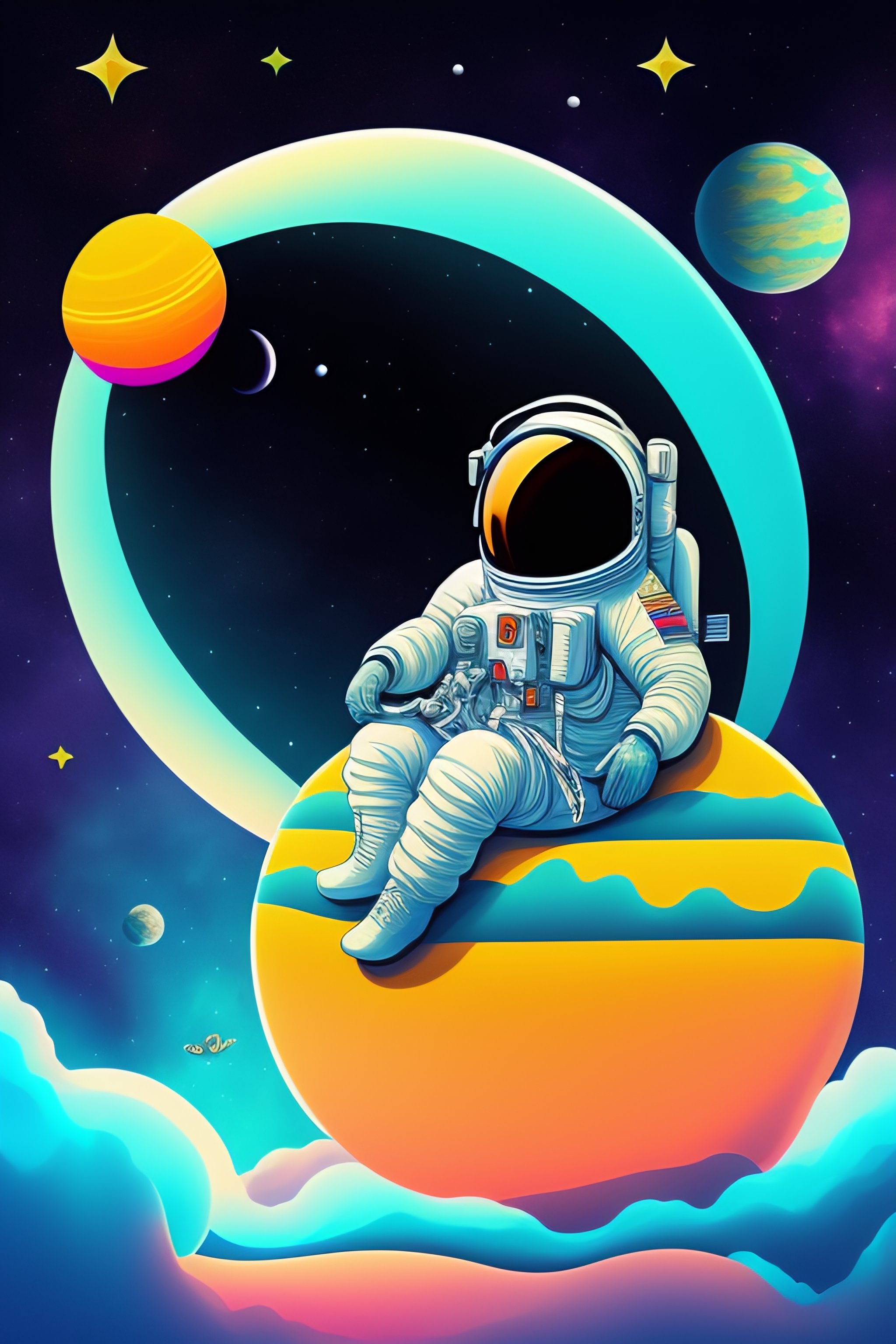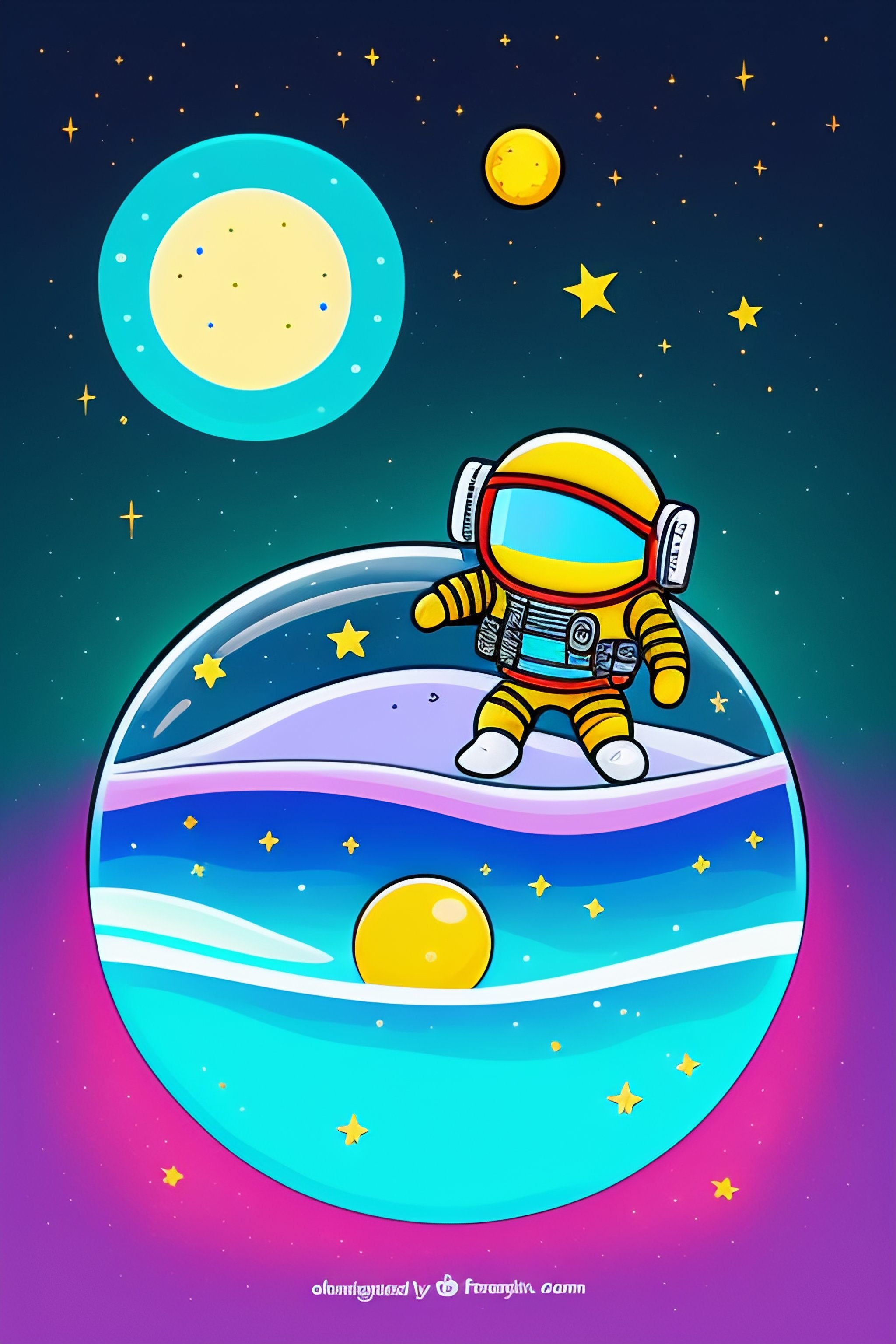 Astronaut floating in space with space slime creature cartoon style with planets in the backround