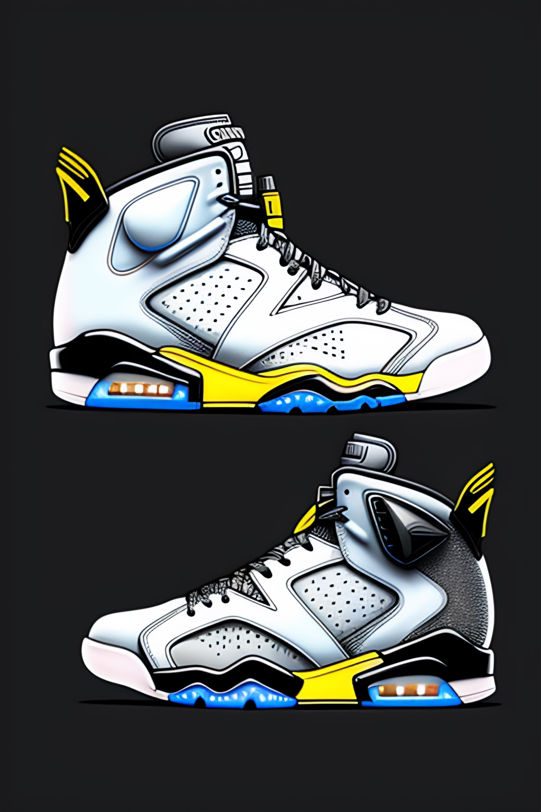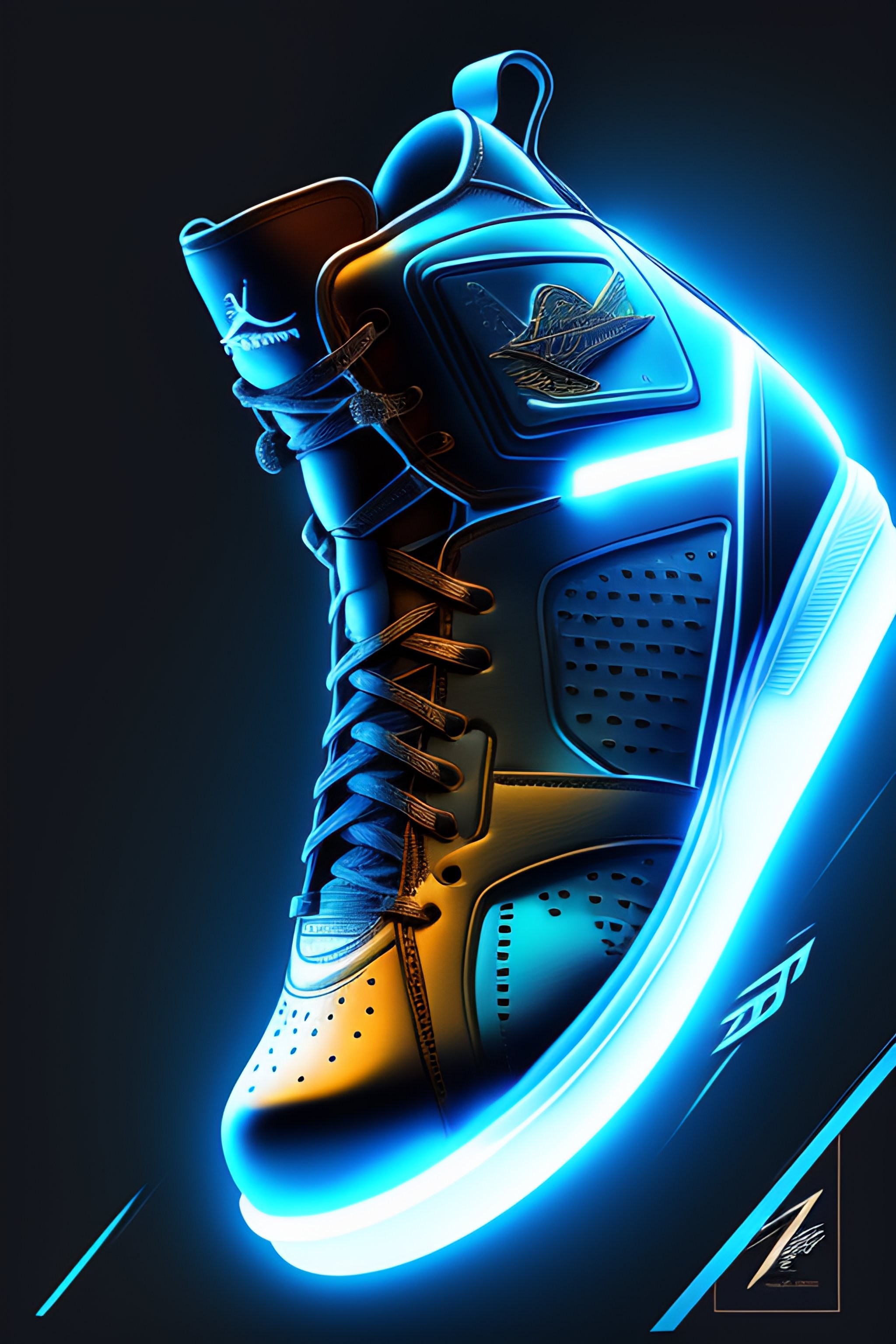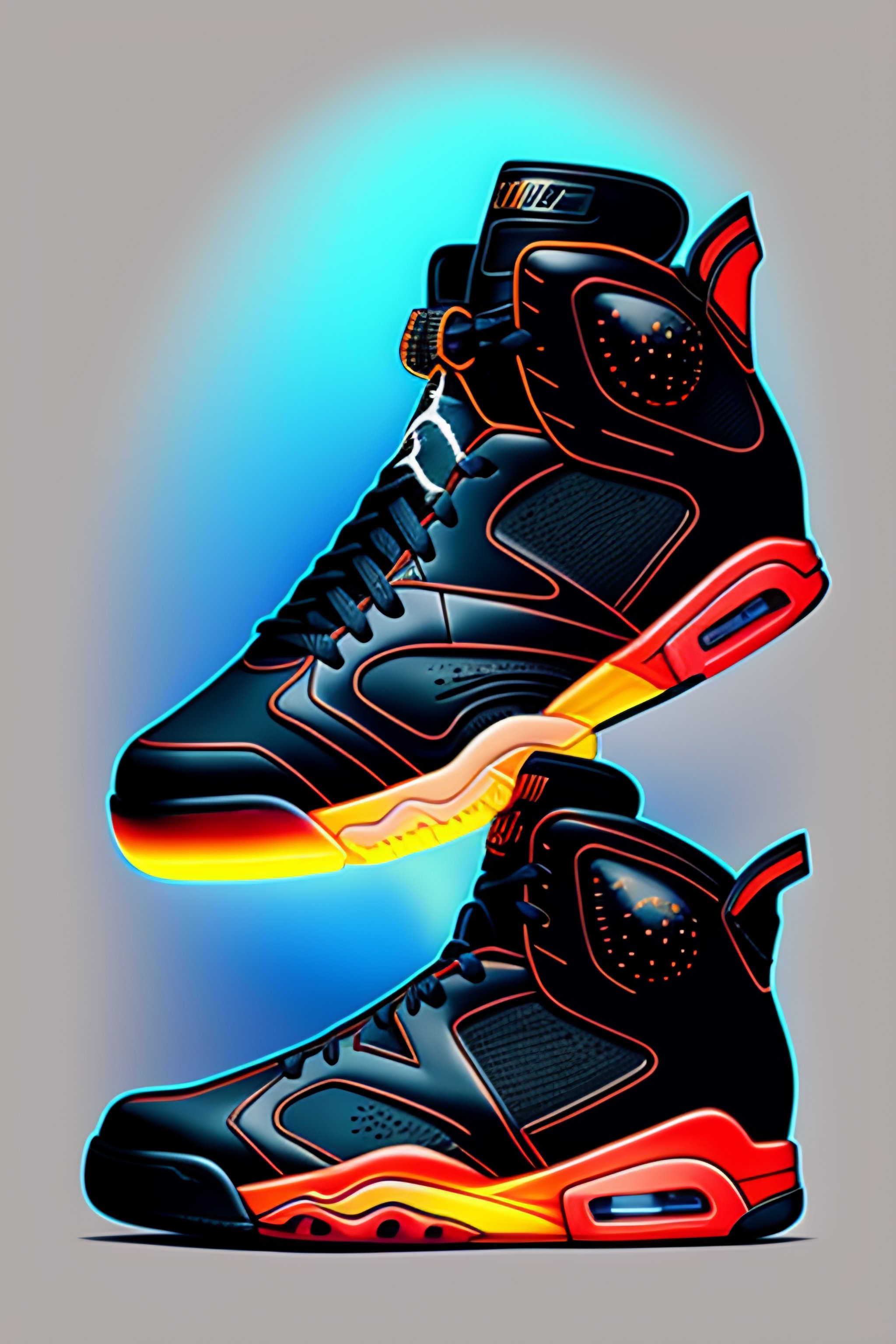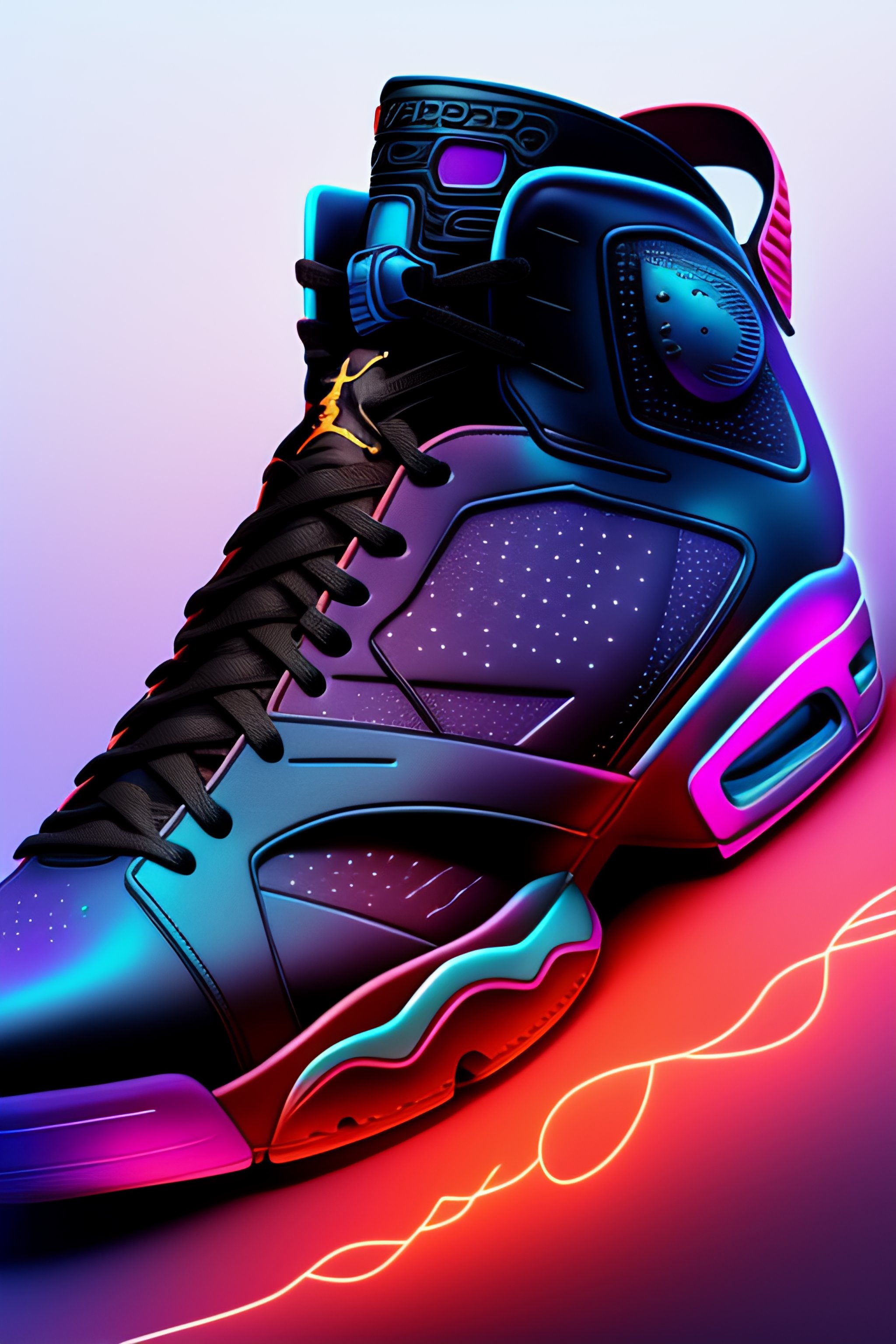 Analog style of a jordan 6 travis scott' sneaker, tron legacy style, full body, futuristic suit, detailed illustration, line art