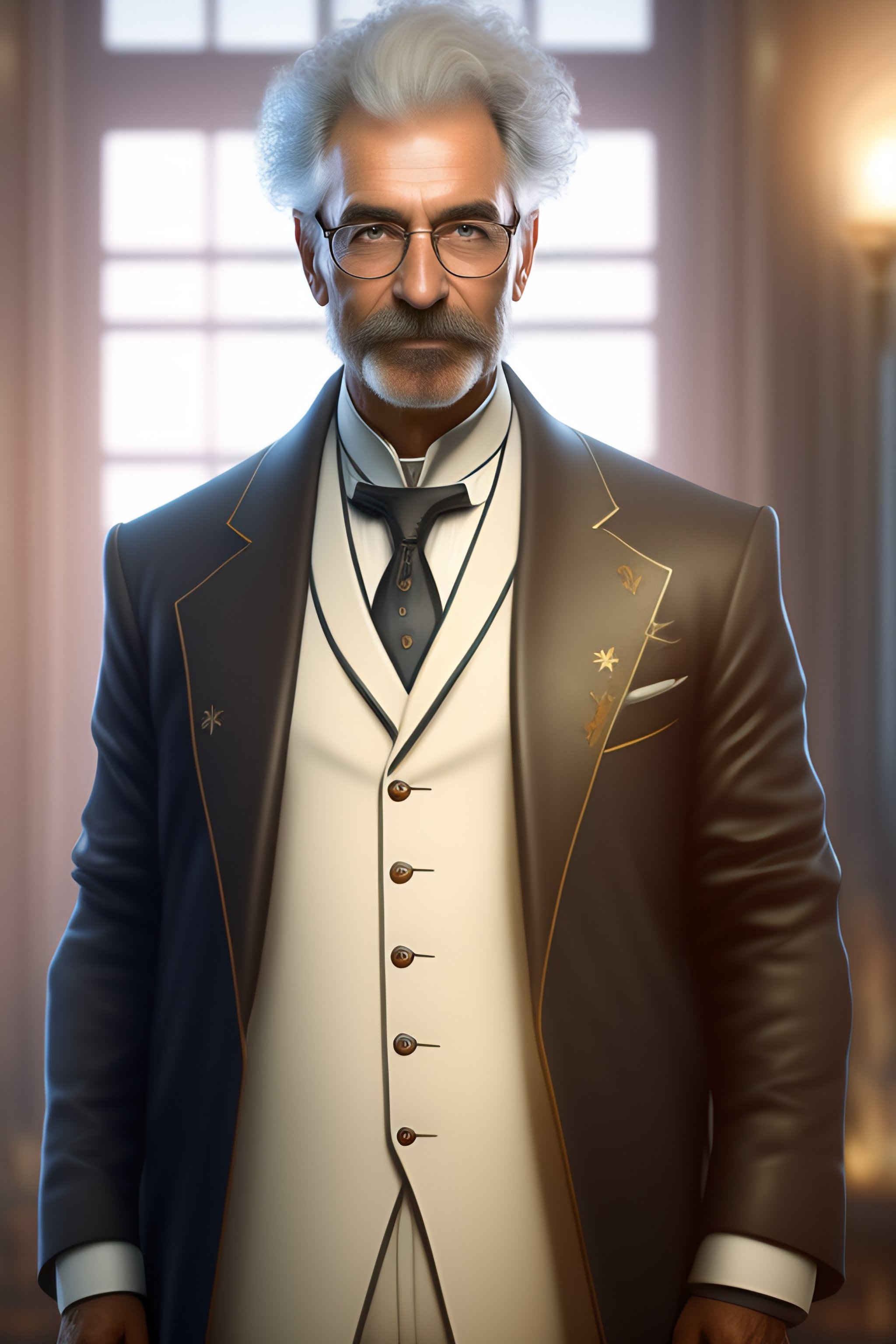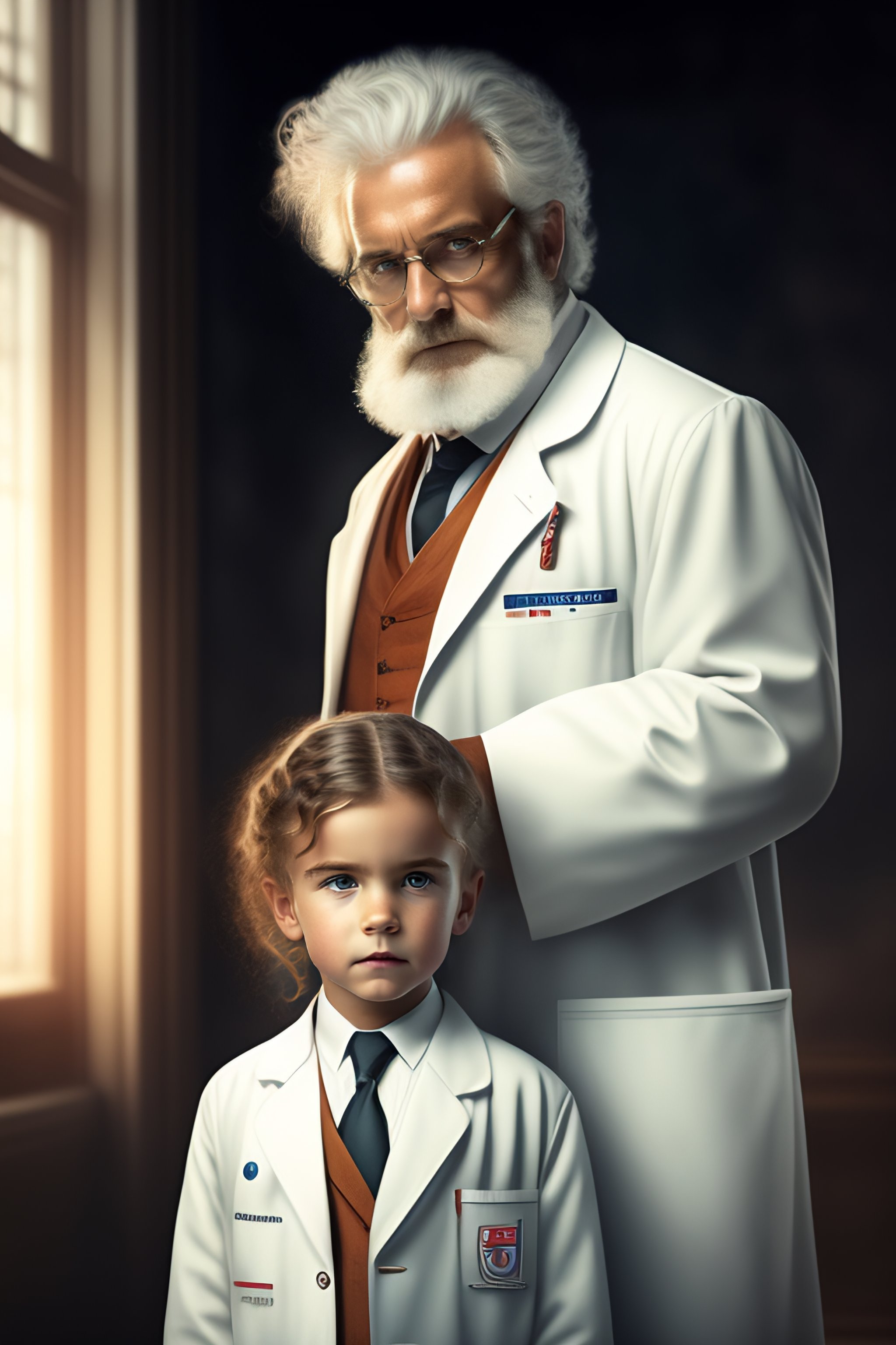 An old mad scientist in a white coat and tie