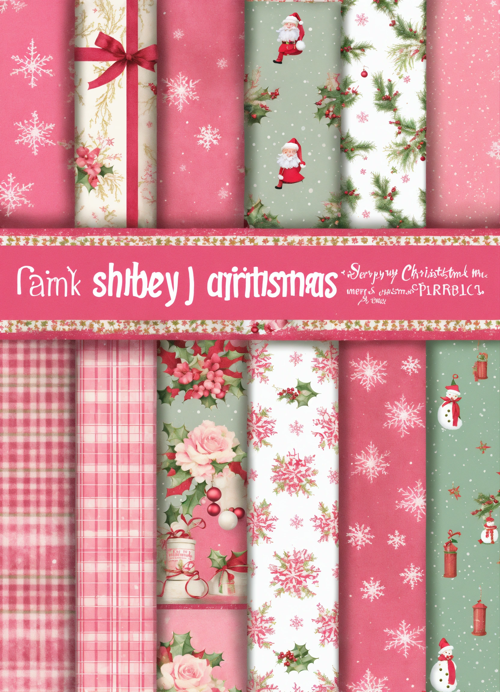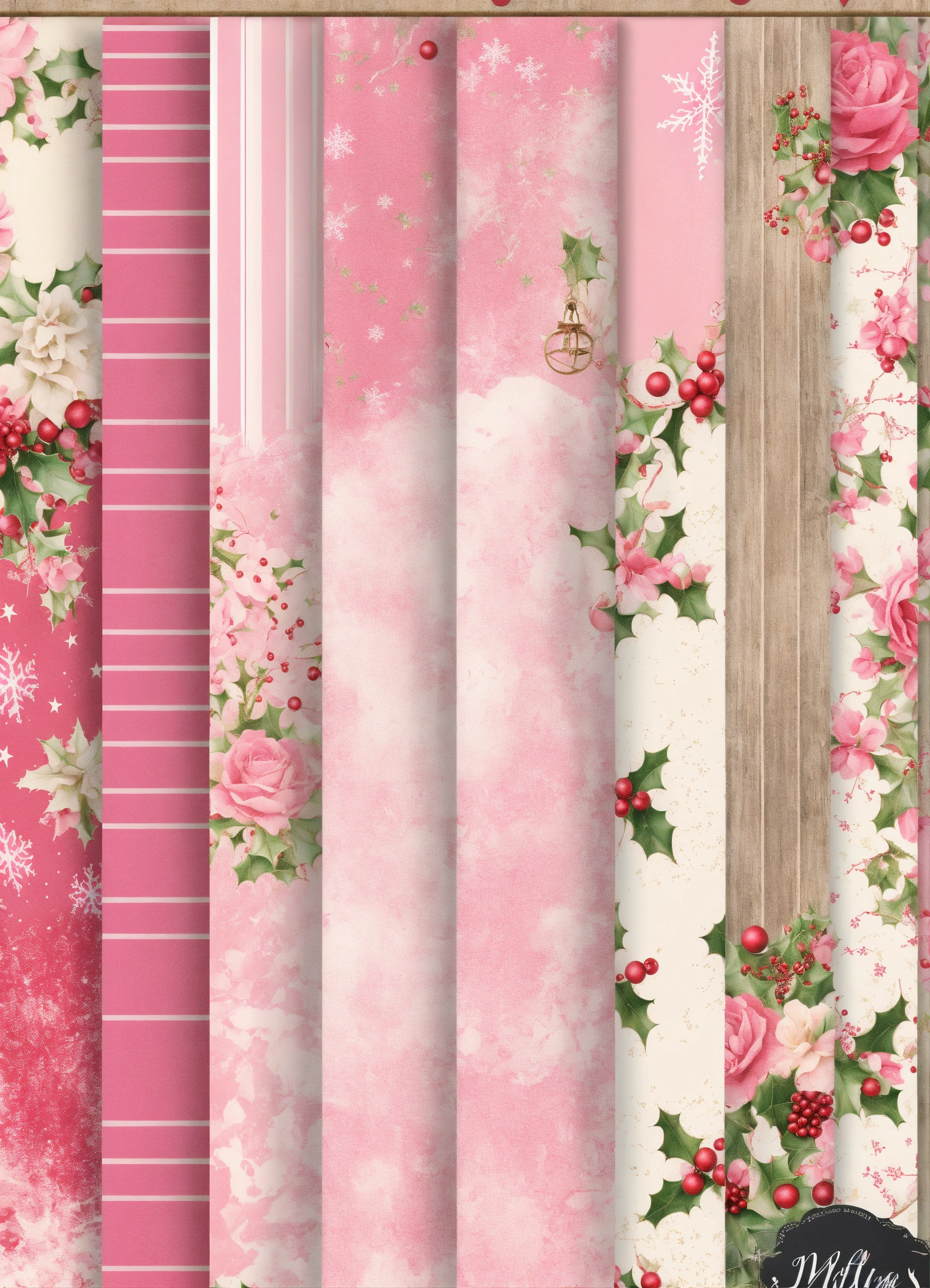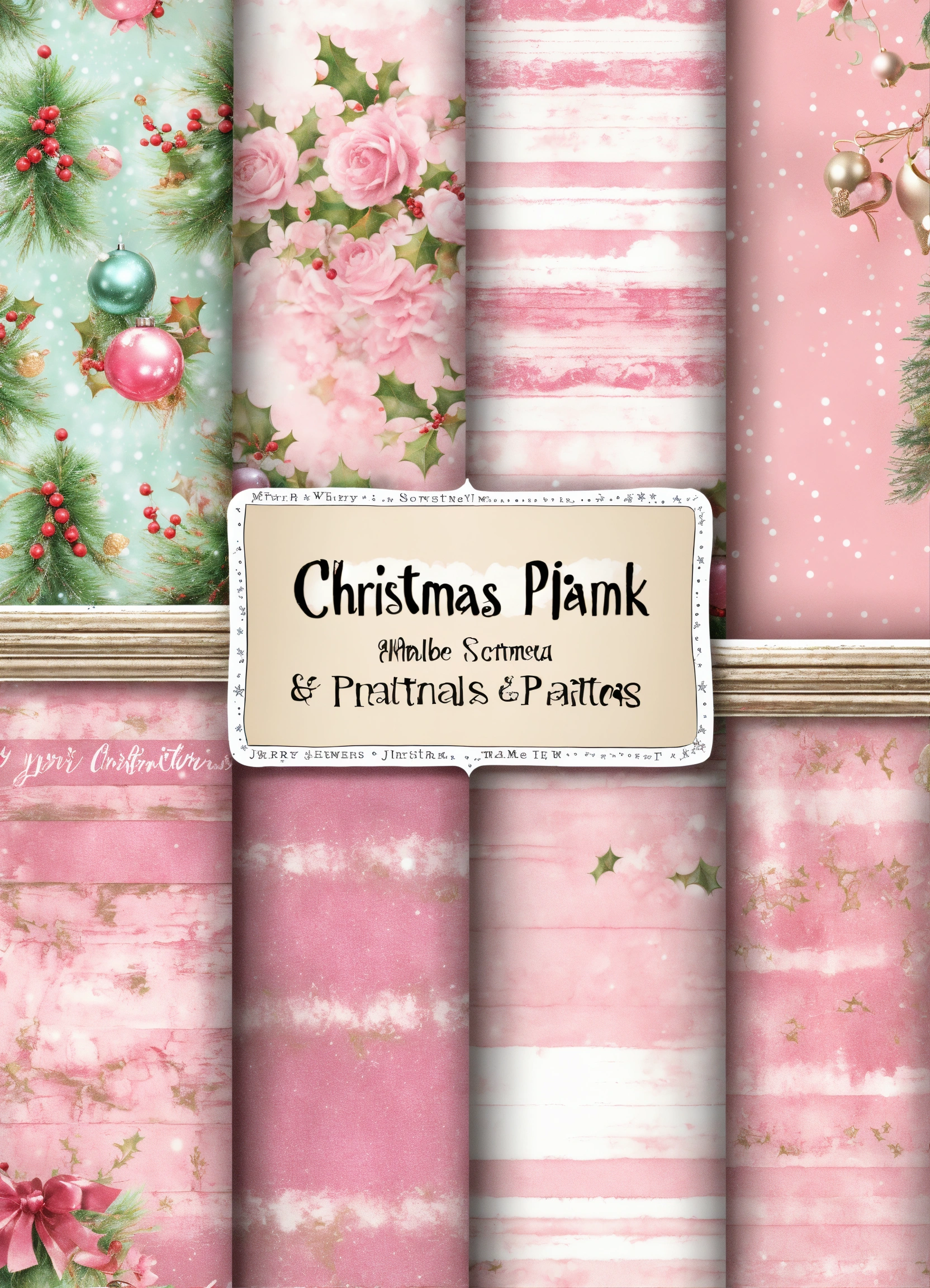 Seamless shabby pink christmas patterns, digital paper pack, junk journal page, printable ephemera, scrapbooking supplies