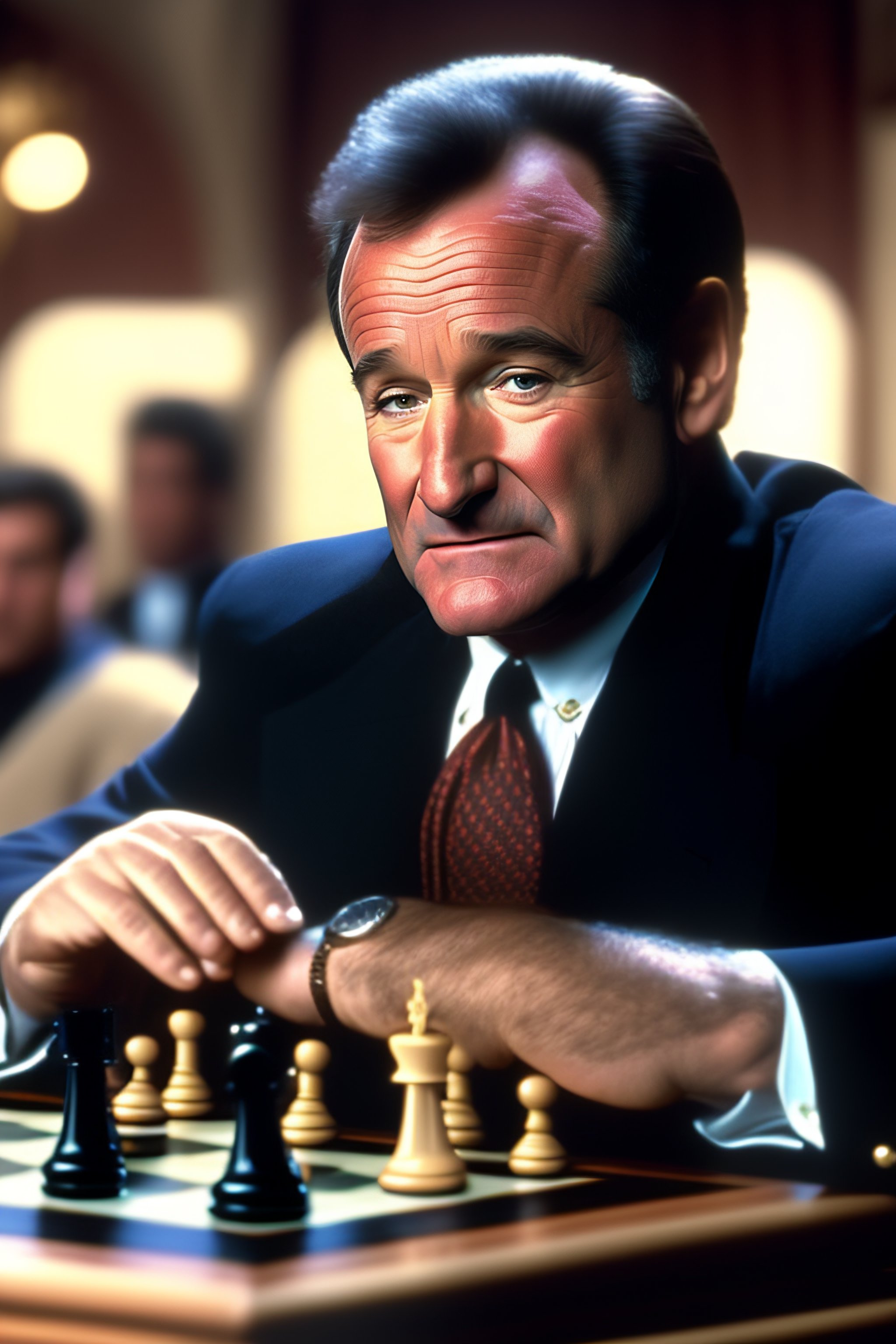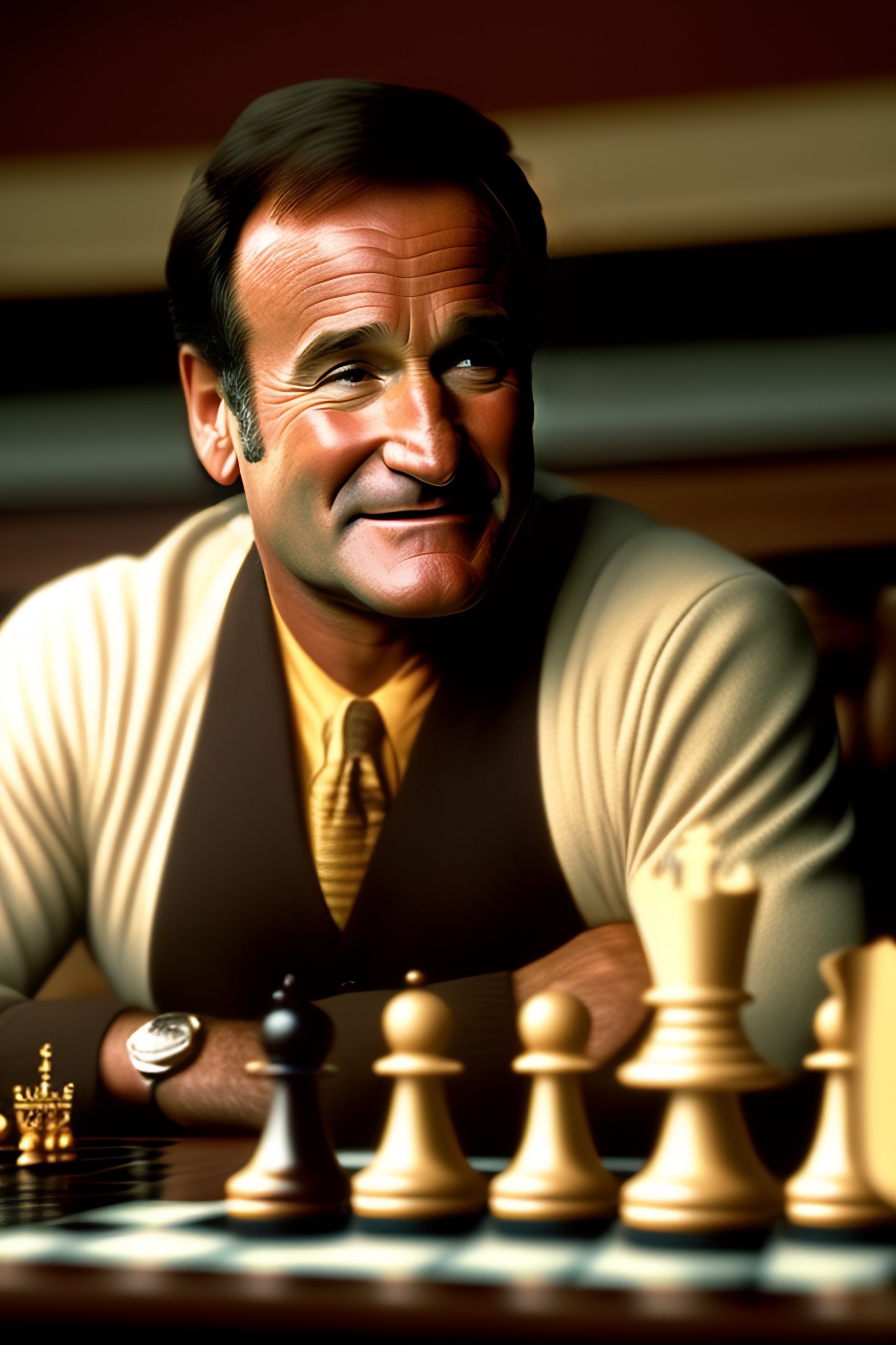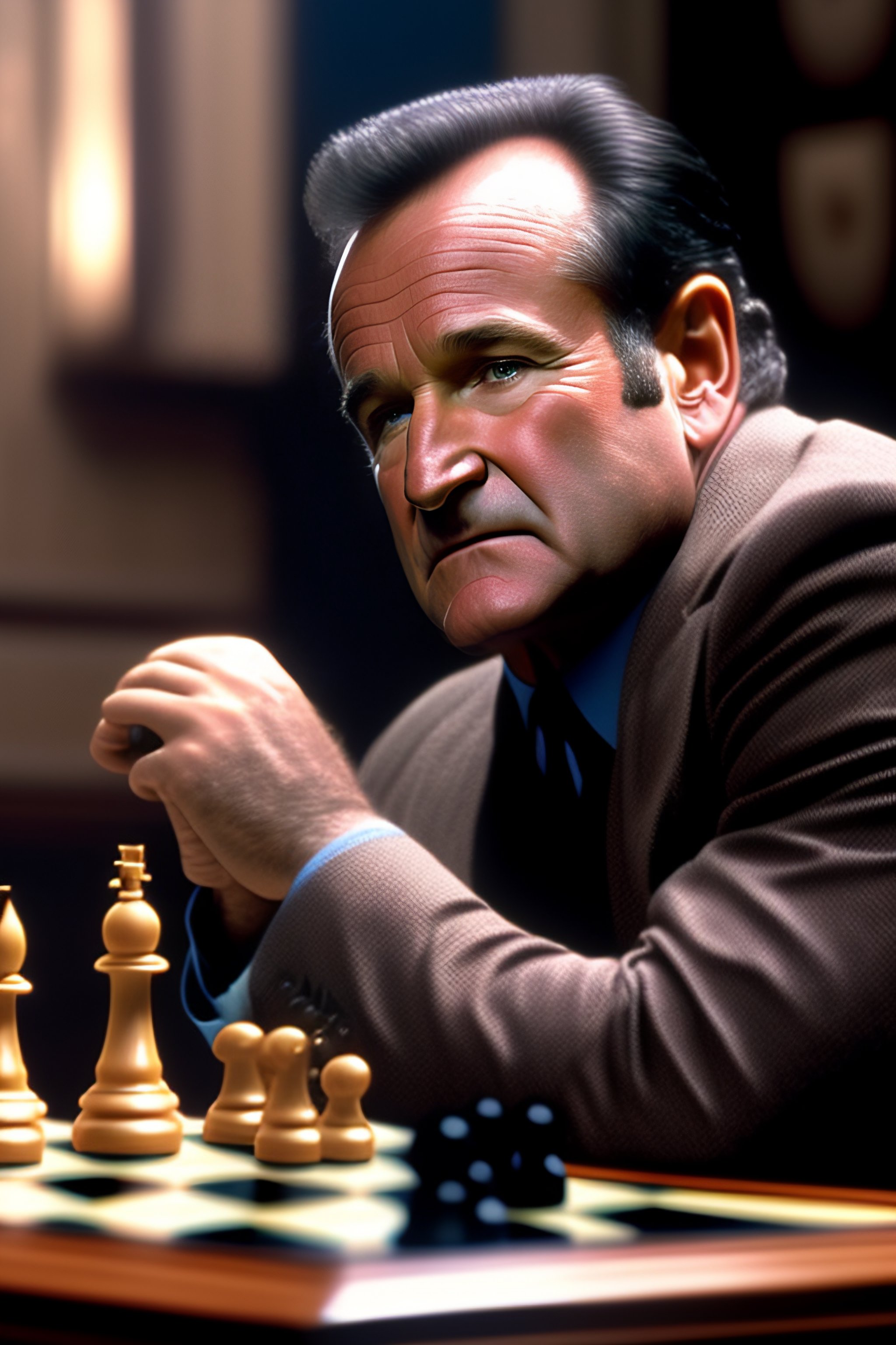 Robin williams playing chess in a movie scene