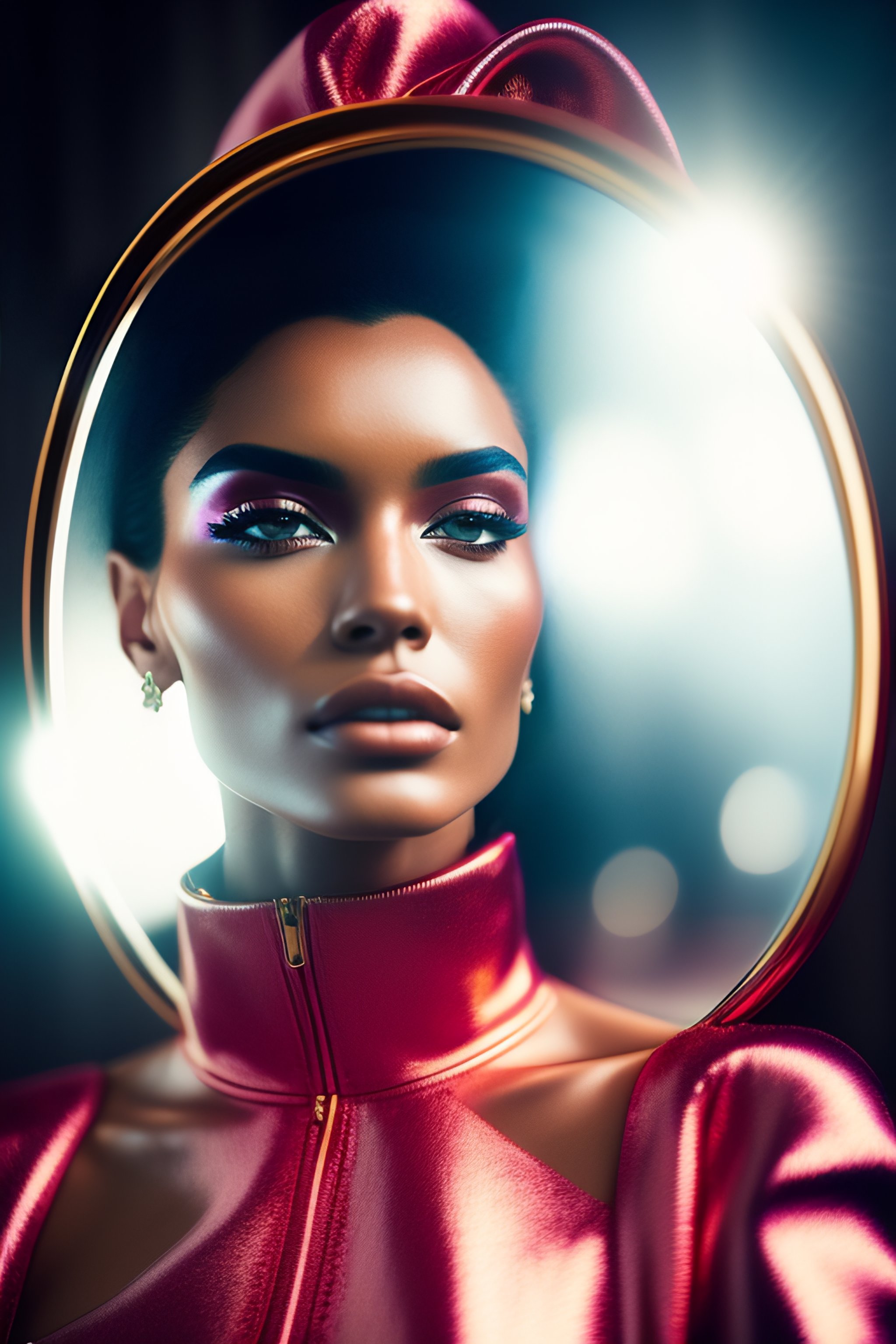 Ultra high definition! realistic! fashion magazine marc jacobs photo shoot, futuristic fashion, most beautiful faces in the world, female poses, mirror outfit, surreal landscape, 90s fashion style photo, medium format, fuji superia 400, iso 400, cinematic, surreal, 8k