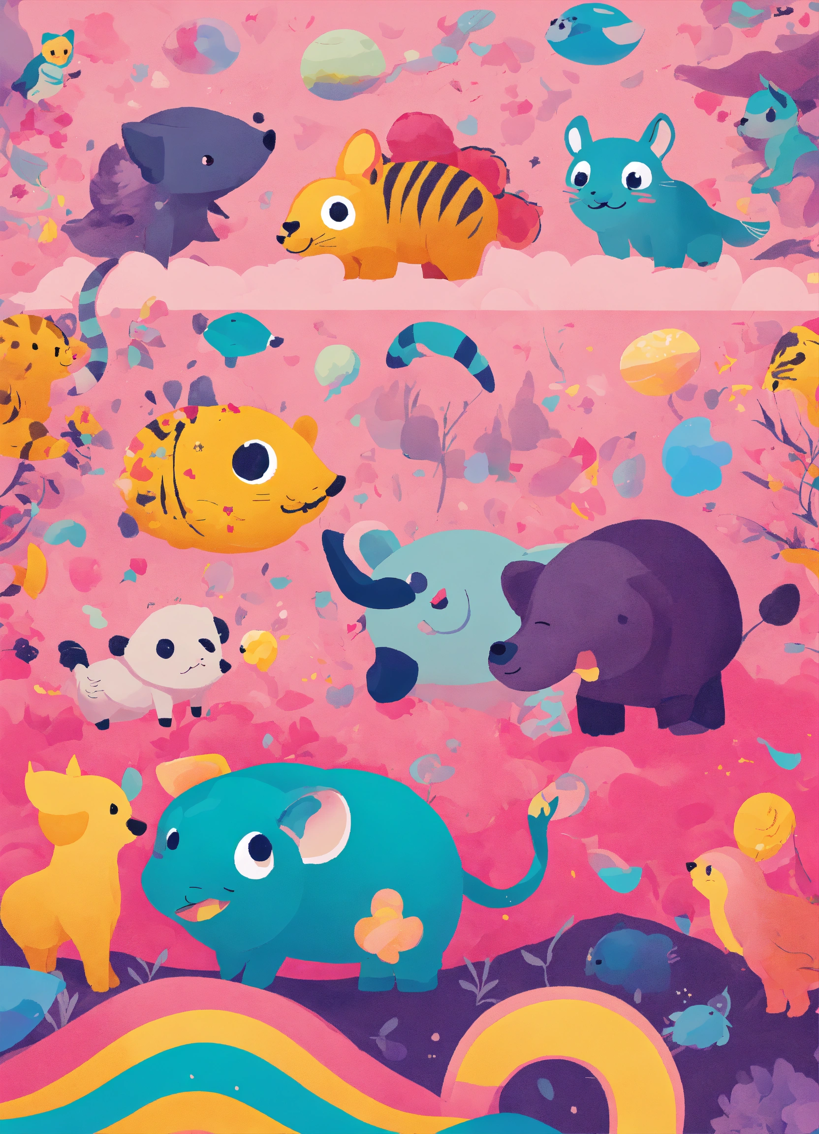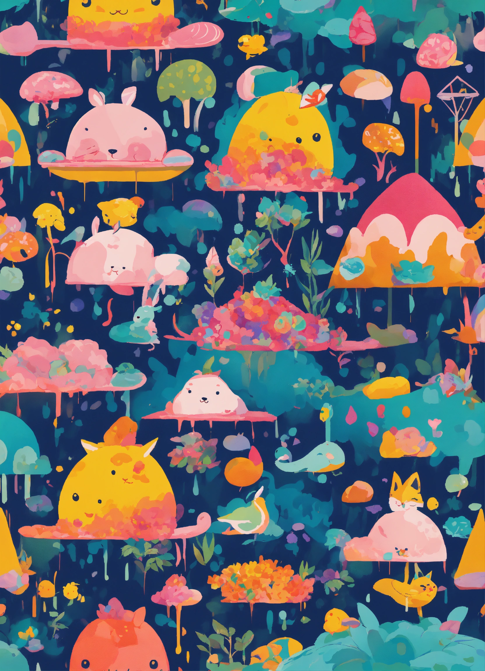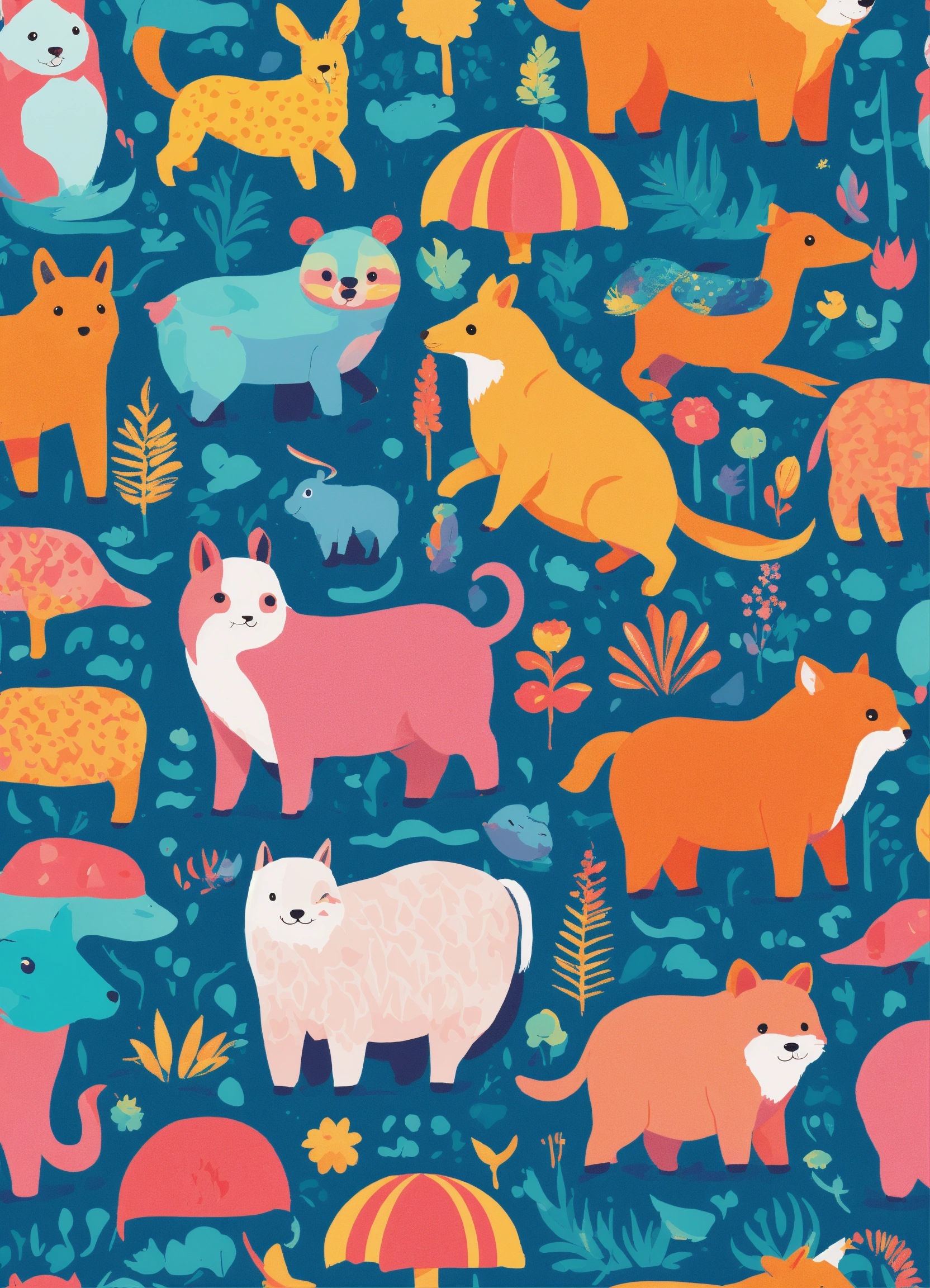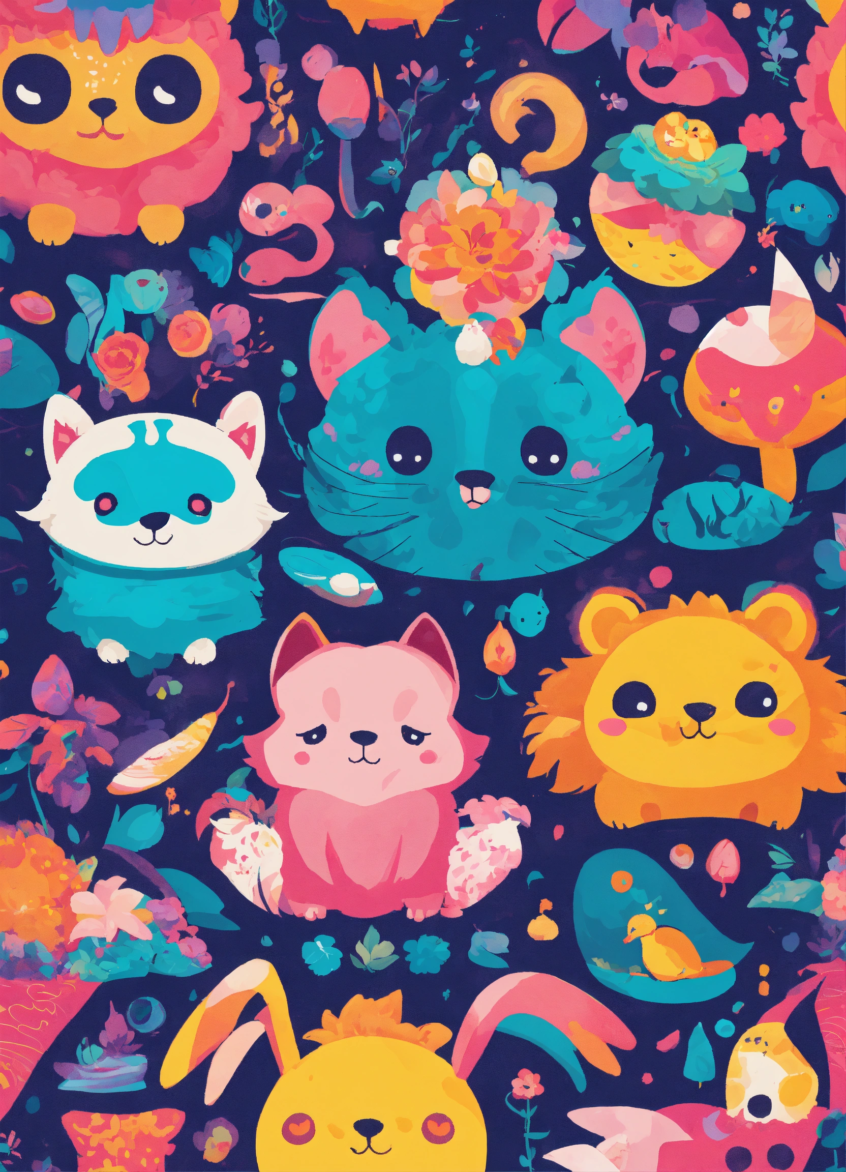 Let your imagination run wild with this unique and interesting prompt, featuring a splash of vibrant colors and a modern twist on a kawaii cartoon pattern of animals, rendered in a detailed and stylistic vector style.