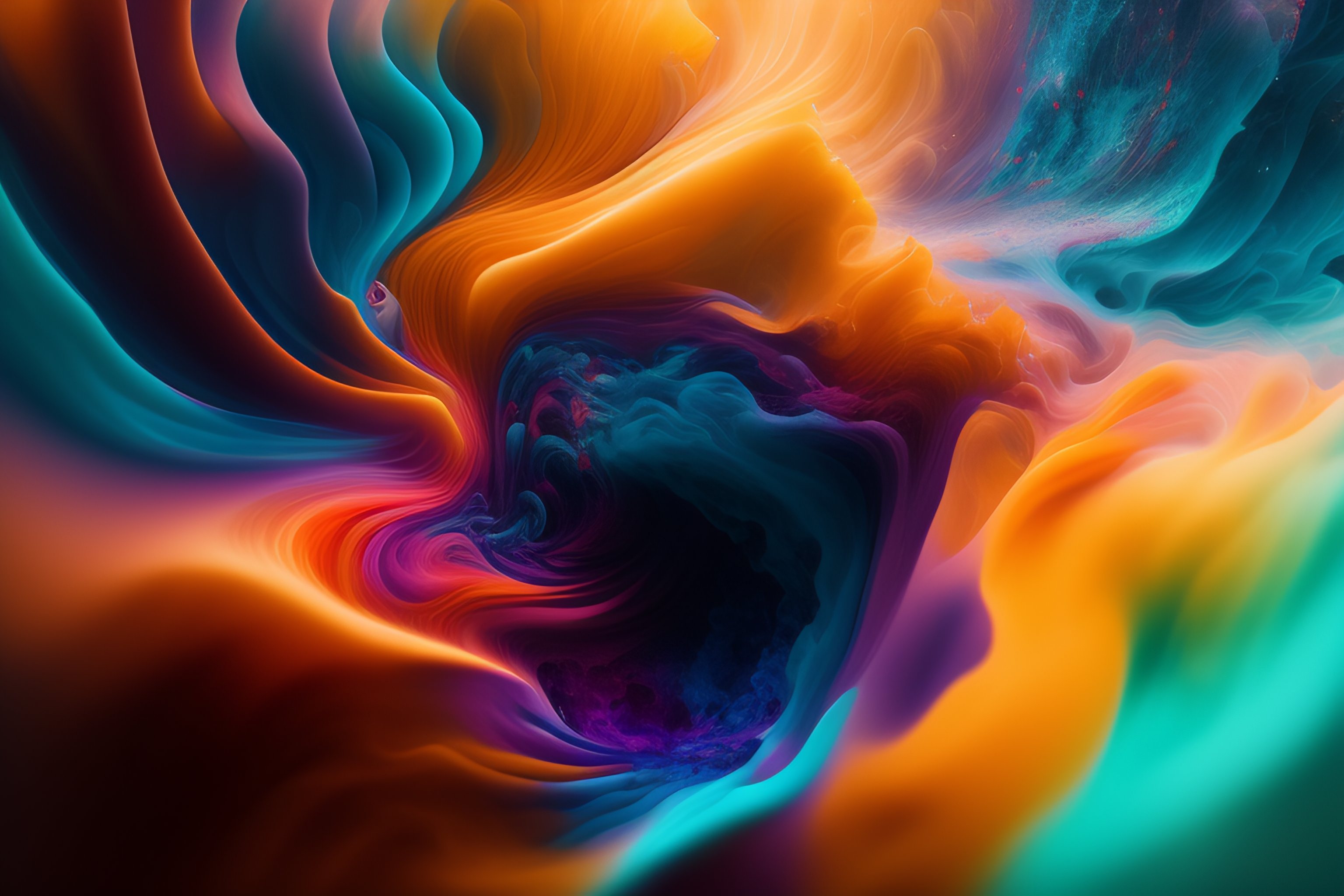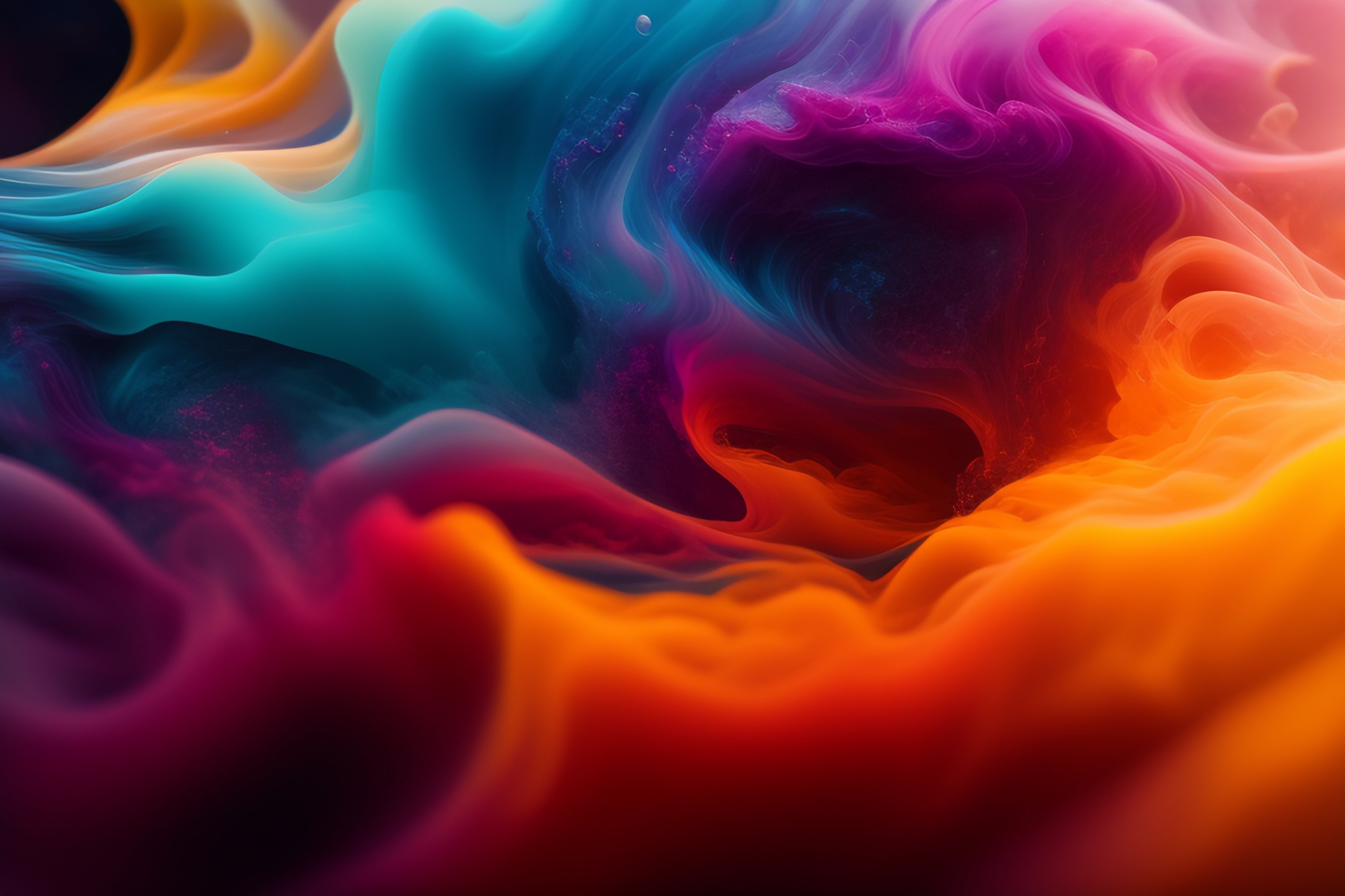 Photograph of ink dropped into water, dancing, made of ink, vortices of vivid color, transparent layers, complex fluid interaction, swirling clouds of ink, underwater, nebula, anemone, smokey whisps, sharp focus, intricate details, gestural, deep black background