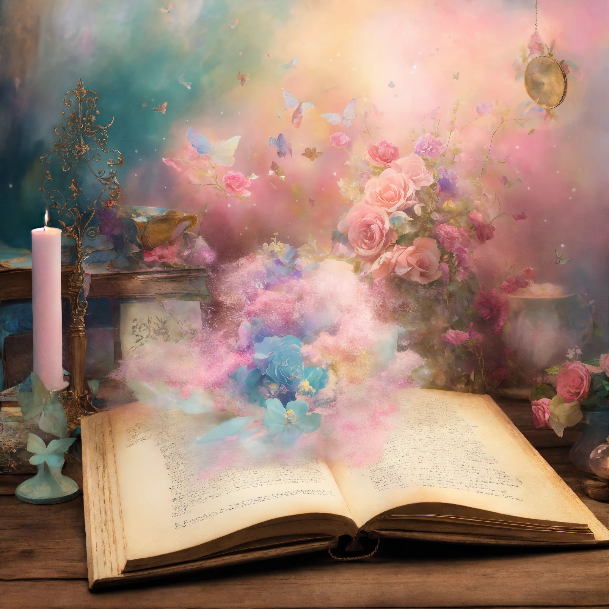 Shabby chic dreamy mist pastel junk journals the universal thoughts to the new world behind the veil swirling magical fairytale abstract art style
