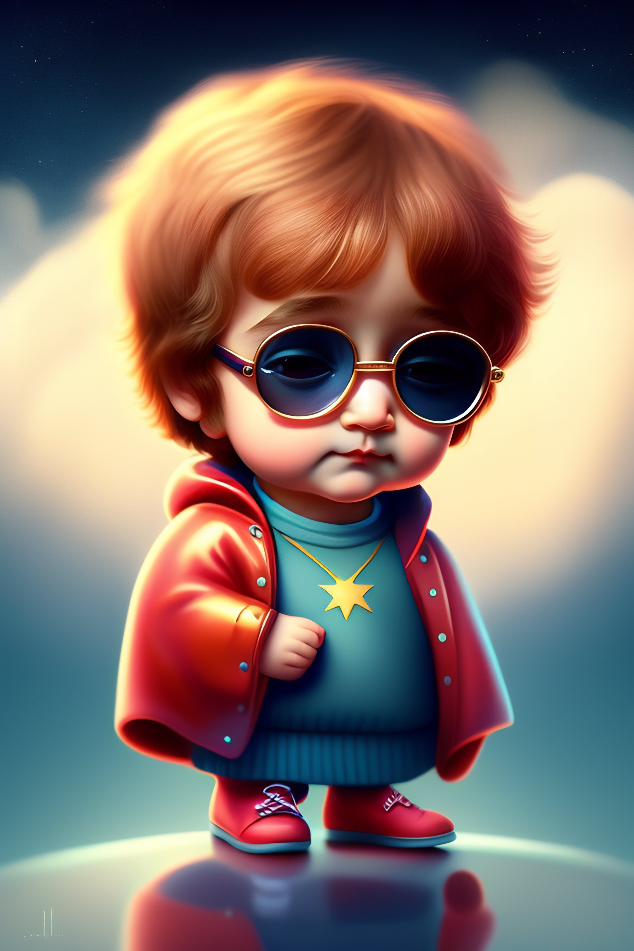 Cute and adorable cartoon john lennon baby, fantasy, dreamlike, surrealism, super cute, trending on artstation, centered