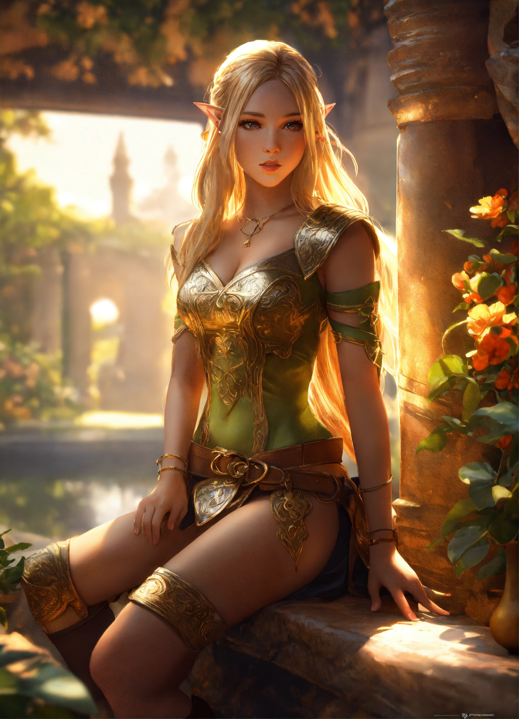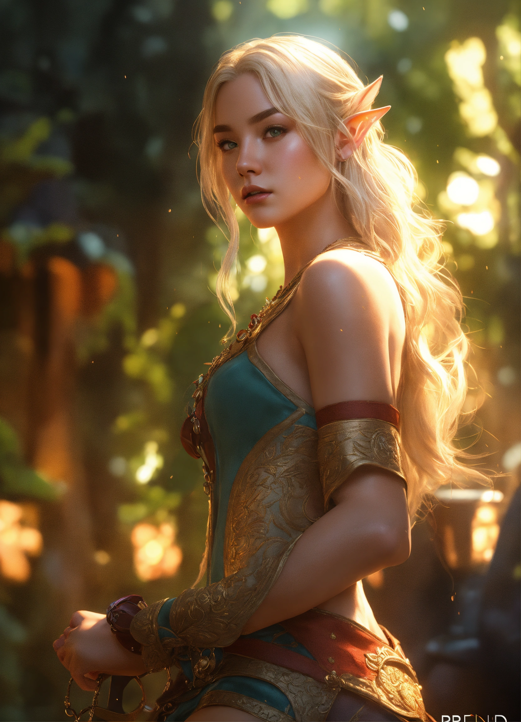 Beautiful fantasy elf girl girl, blonde hair, backside, full body, shapely, stocking, highly detailed, digital painting, artstation, concept art, smooth, sharp focus, illustration, art by predondo, full body, cinematic composition, detailed face, detailed, detailed skin, ultra-detailed, highest detail quality, ultra-realistic, photography lighting, reflection mapping, movie quality rendering, octane rendering, sharp focus, depth of field, real shadow, vfx post-production, rtx ray tracing lighting