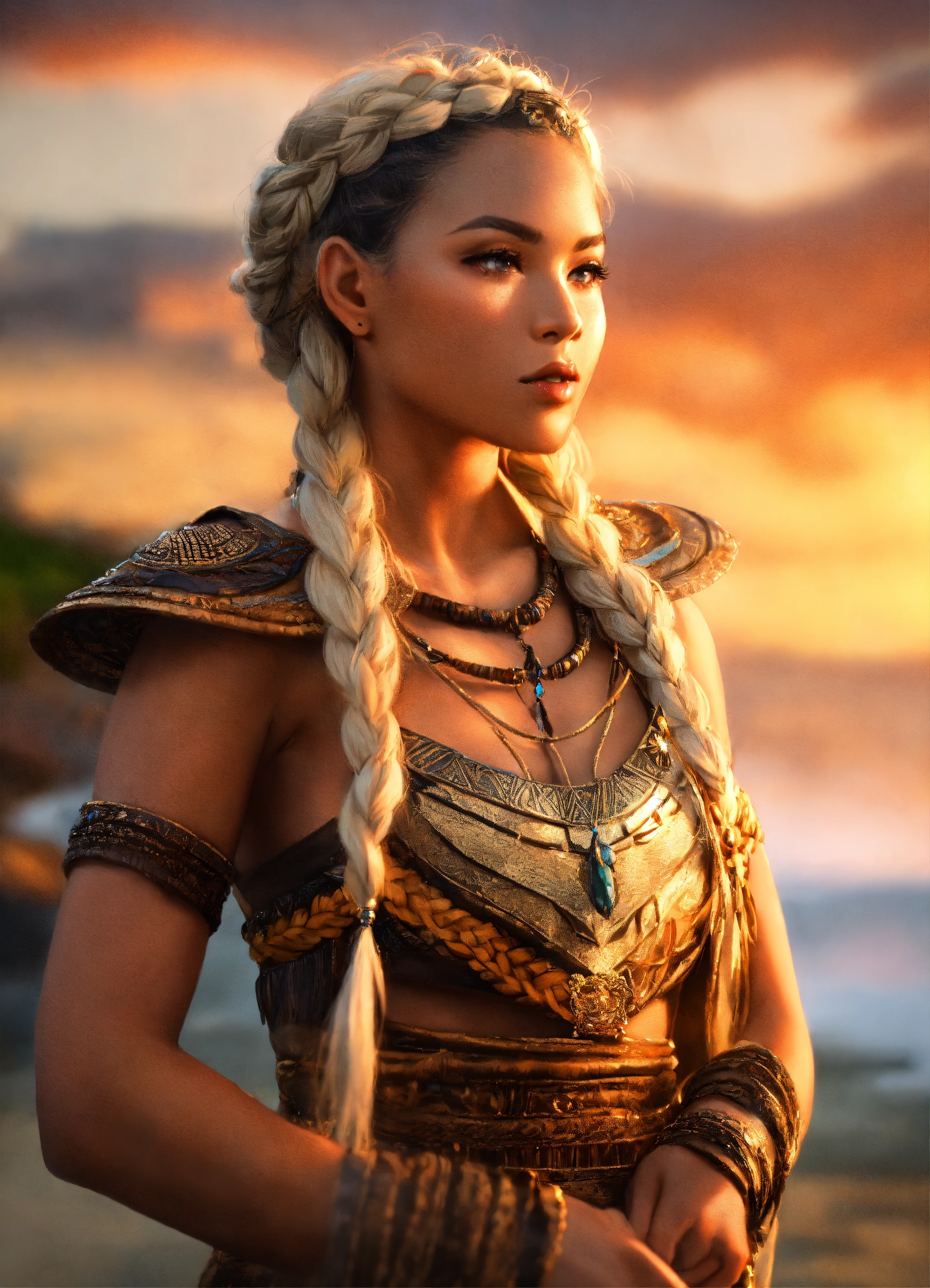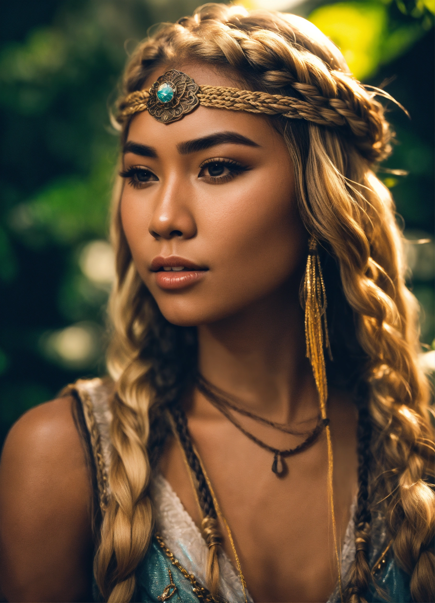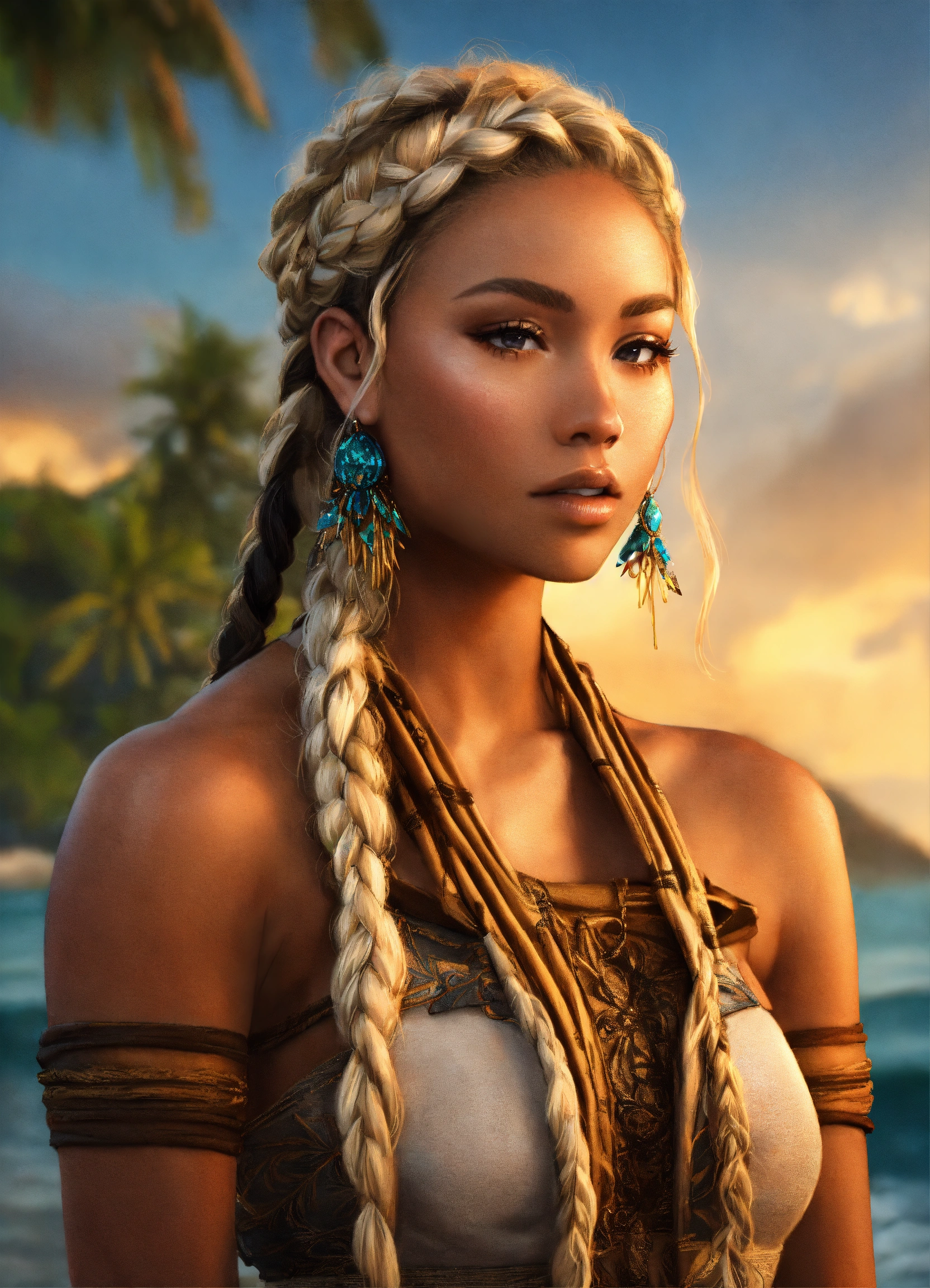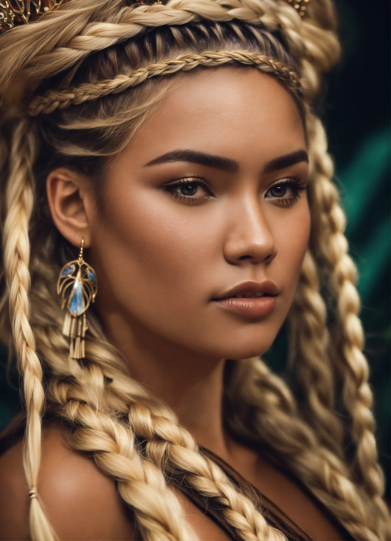 Pacific islander woman blonde braided hair 4k fantasy queen