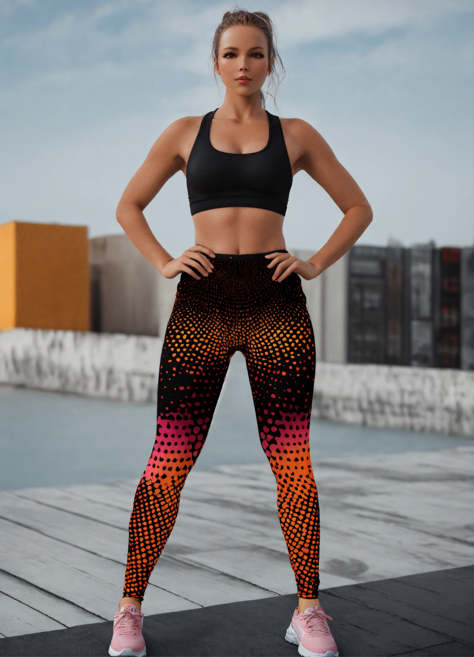 Yoga legging black orange and pink halftone 3d abstract pattern
